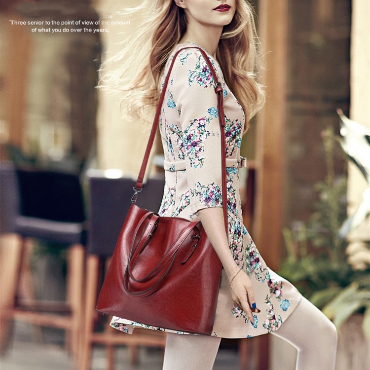 【實用大容量】【油蠟牛皮】歐美大牌氣質深紅色復古質感油蠟皮革質感大容量手提肩背實用托特包