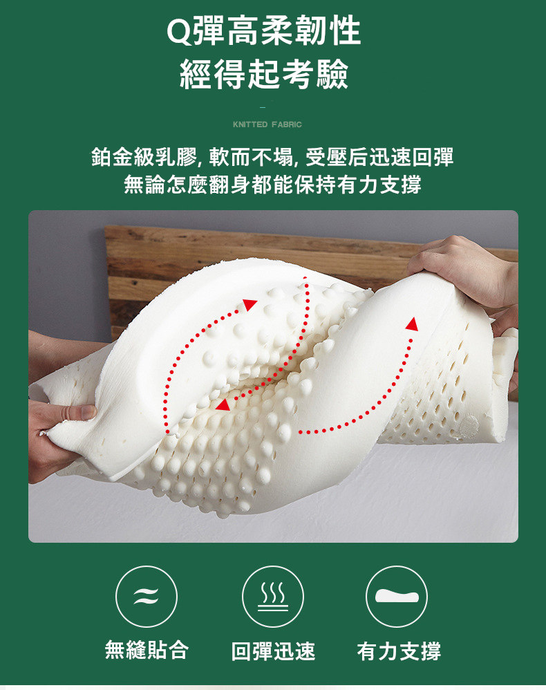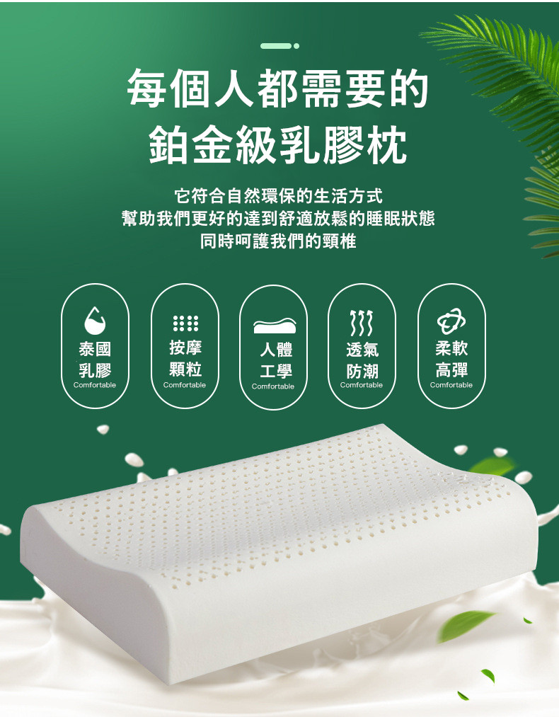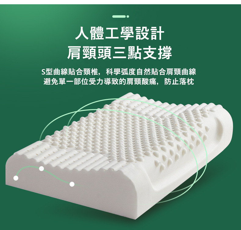 【泰國鉑金級乳膠枕】【人體工學設計】【貼合頸椎曲線】【贈送枕套】泰國原產鉑金級天然乳膠護頸支撐按摩乳膠枕