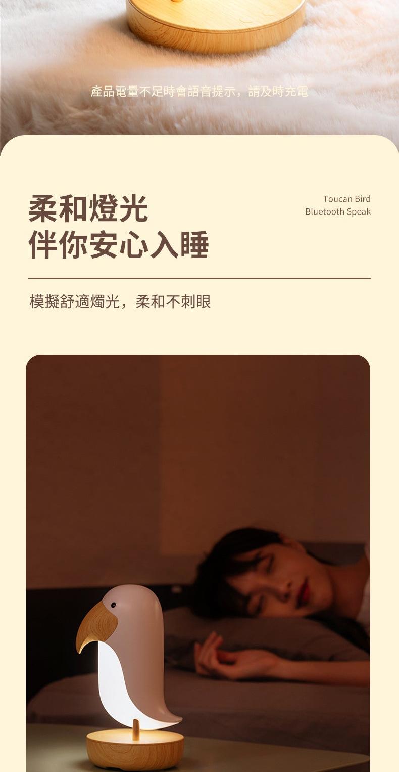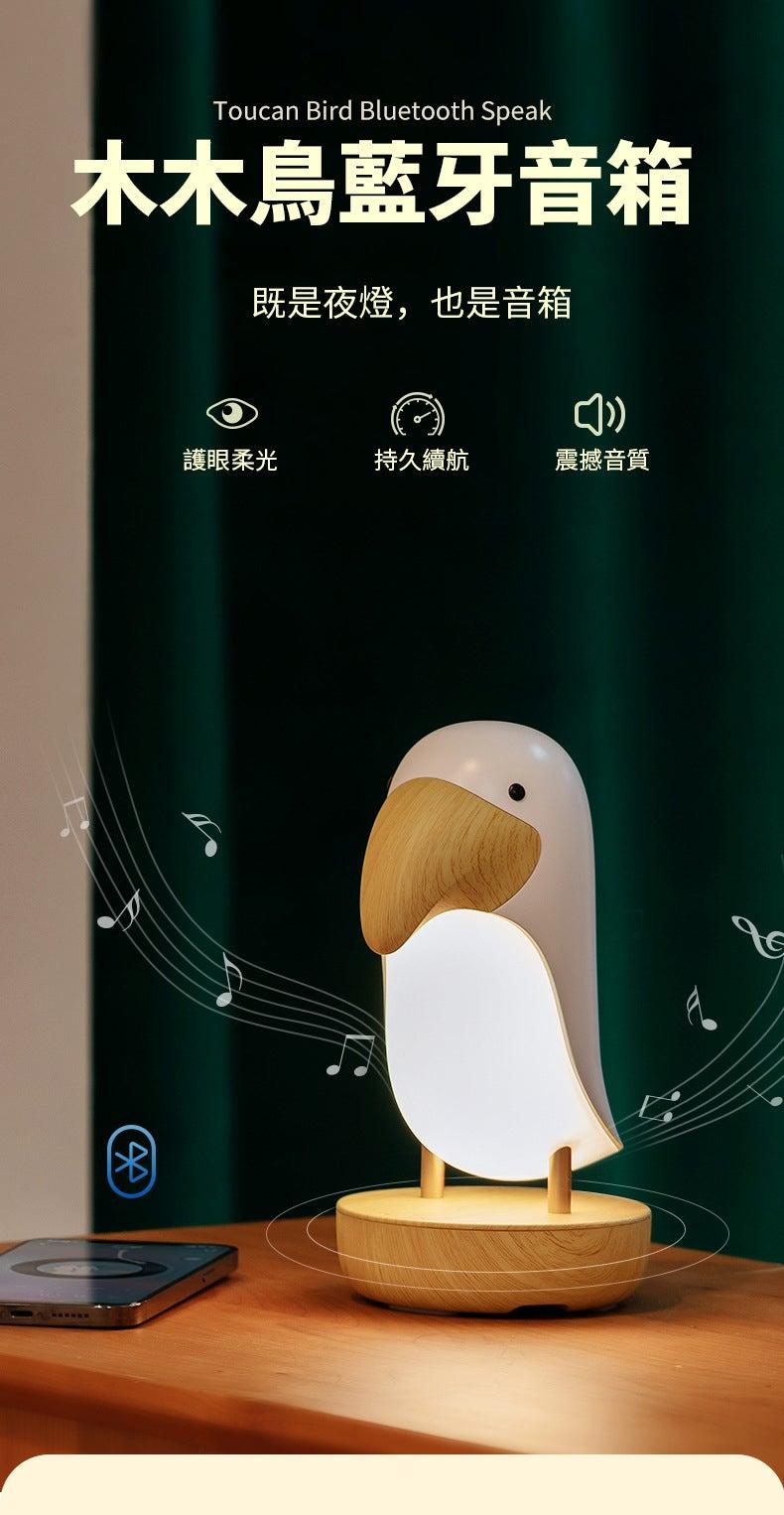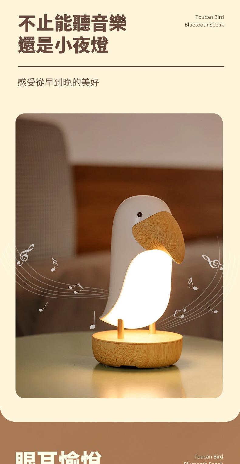 木木鳥無線藍芽喇叭 | 護眼柔光夜燈 | CD級音質 | 無級調光 | 持久續航 | 小眾格調禮物氛圍感犀鳥造型無線藍牙音箱喇叭氛圍伴睡小夜燈