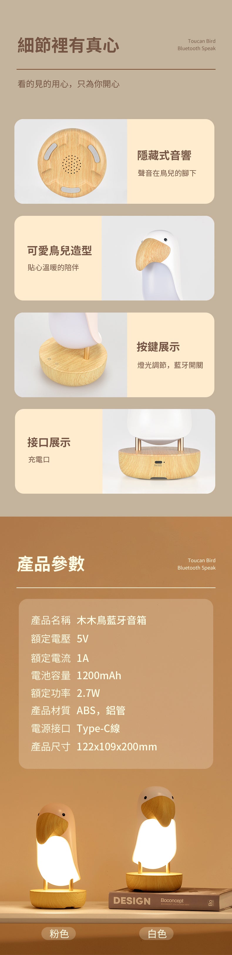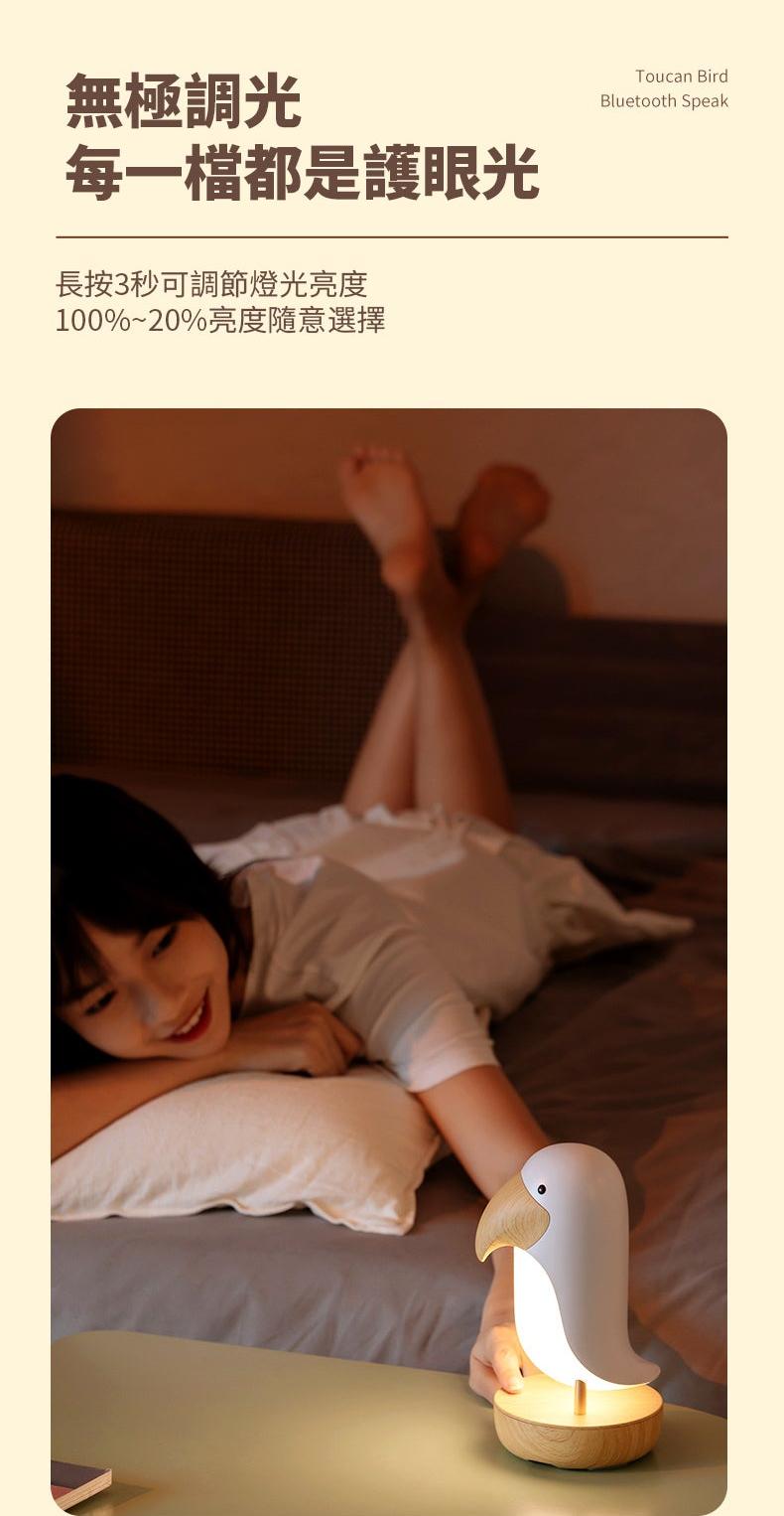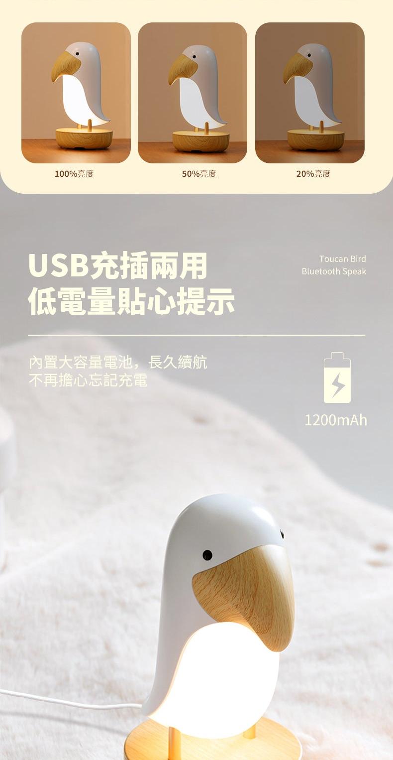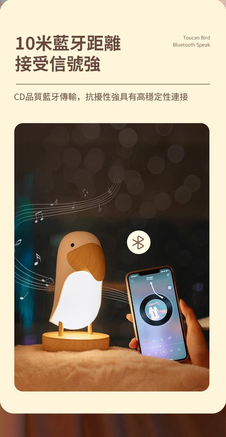 木木鳥無線藍芽喇叭 | 護眼柔光夜燈 | CD級音質 | 無級調光 | 持久續航 | 小眾格調禮物氛圍感犀鳥造型無線藍牙音箱喇叭氛圍伴睡小夜燈