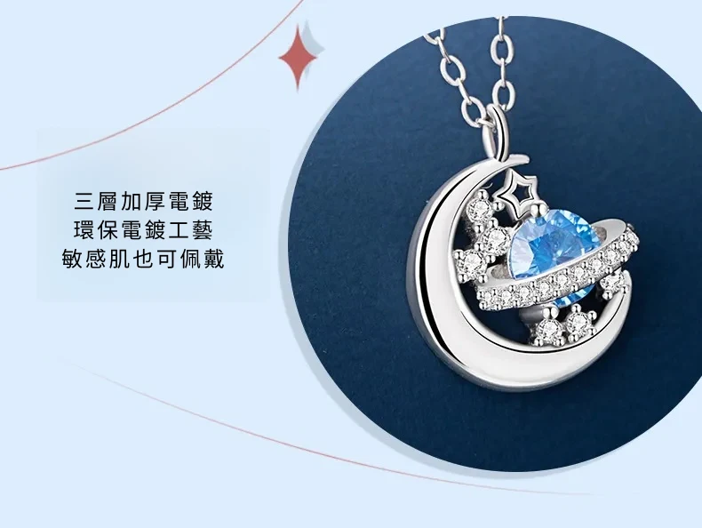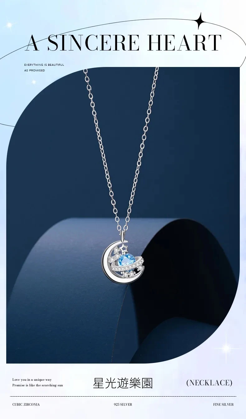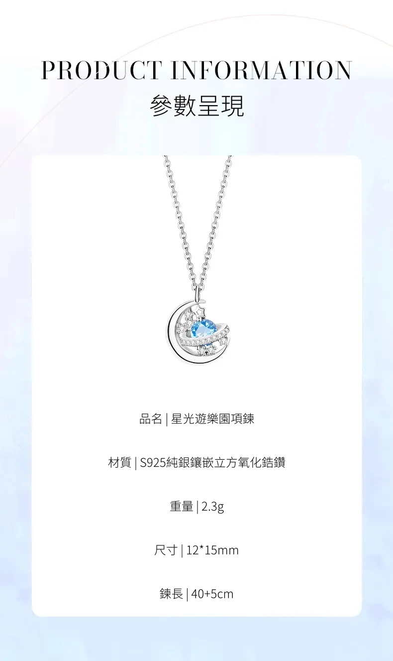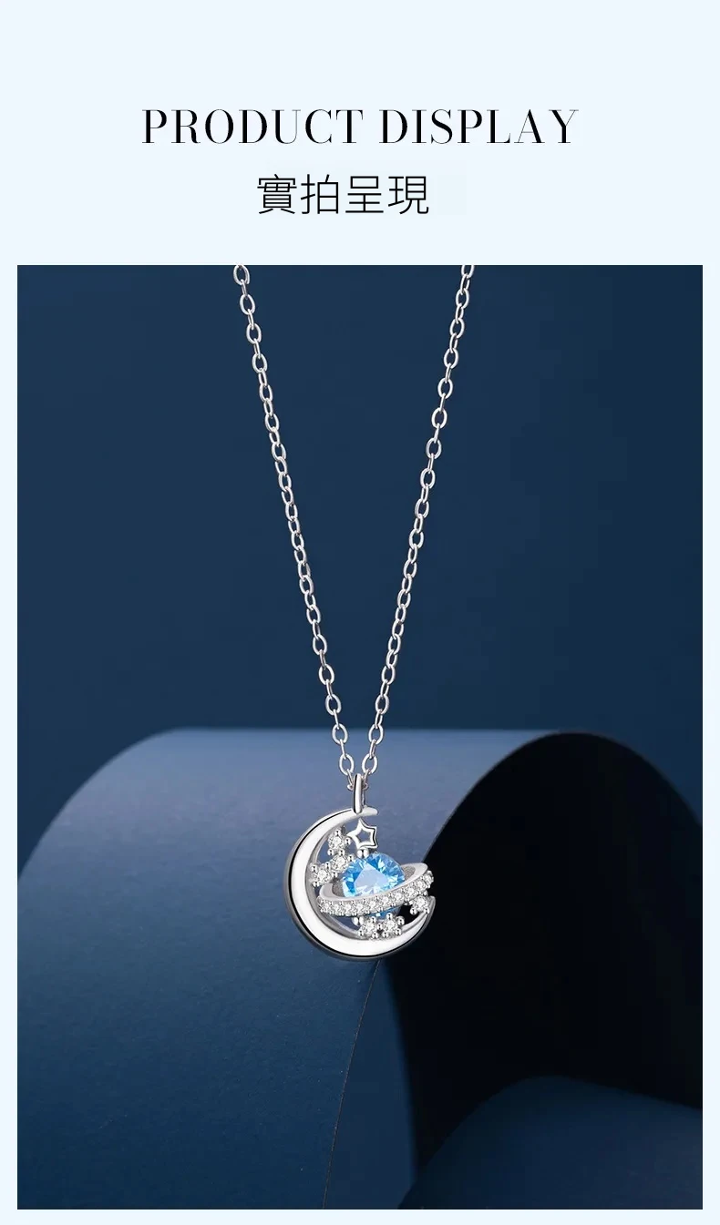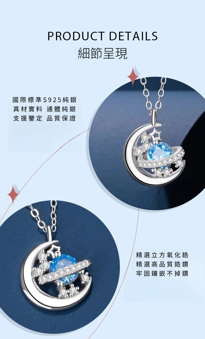 星光遊樂園 | 行星軌跡造型項鍊 | S925純銀鑲鑽 | 純淨海藍鋯鑽 | 鏡面拋光 | 夢幻浪漫送女生禮物星光遊樂園主題鎖骨鍊女生項鍊