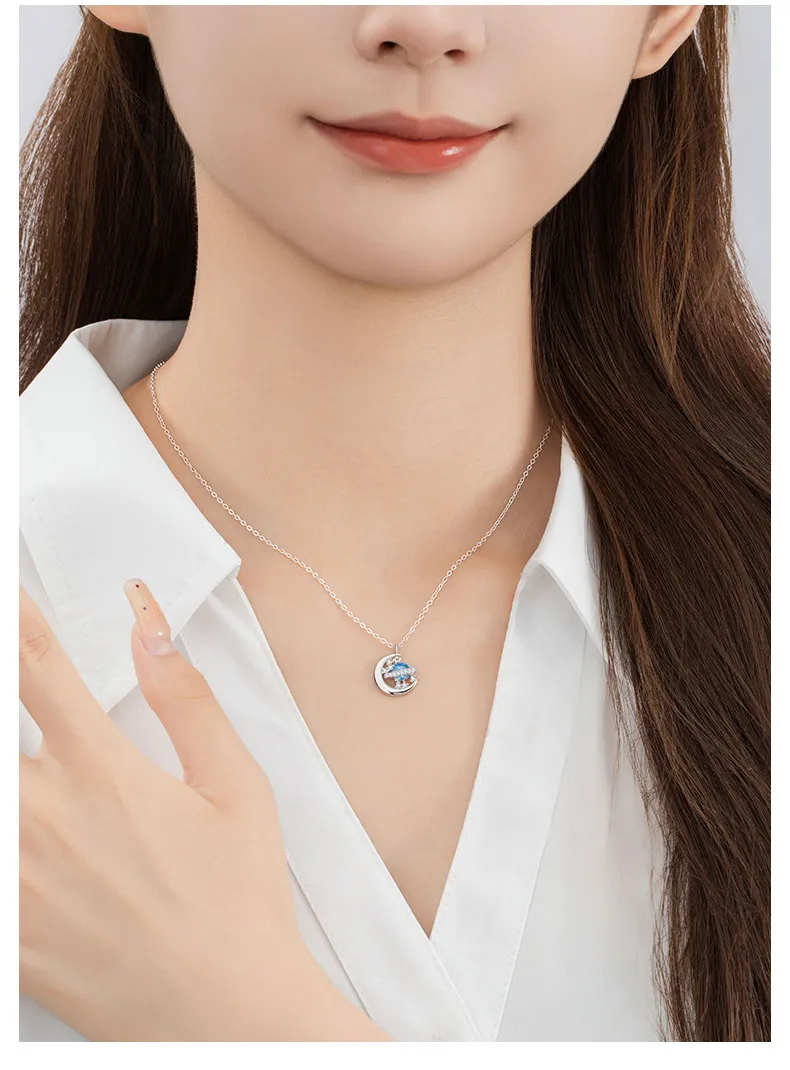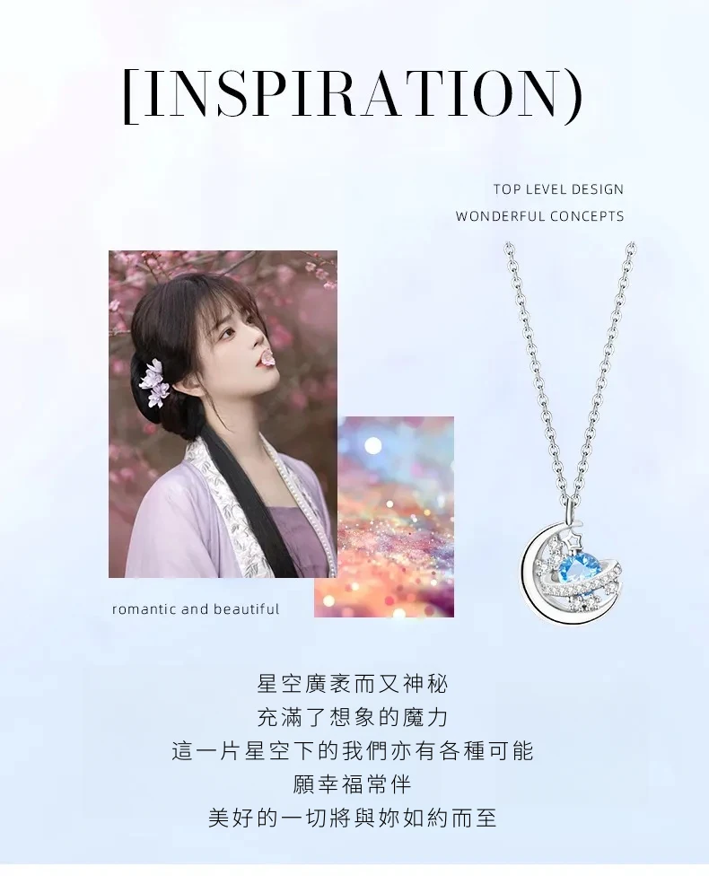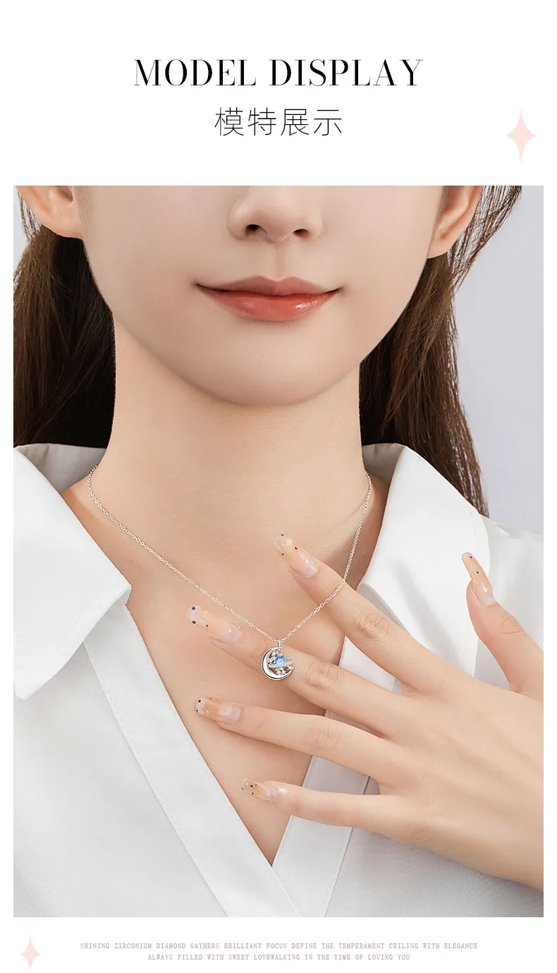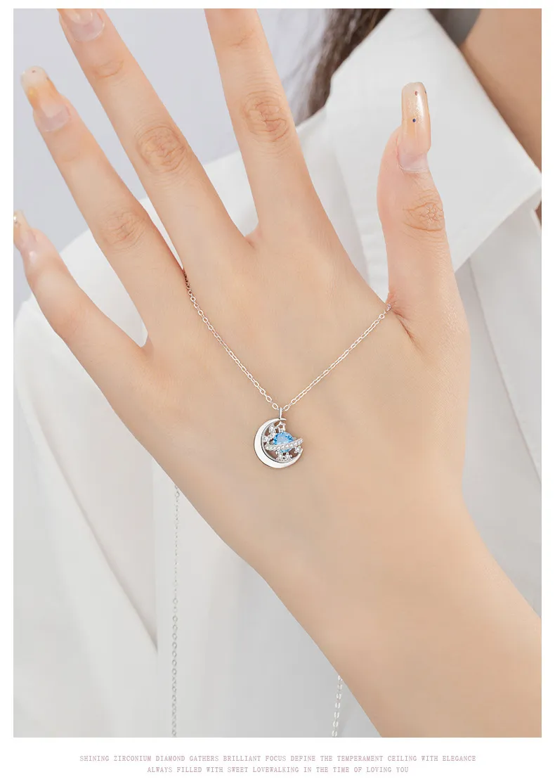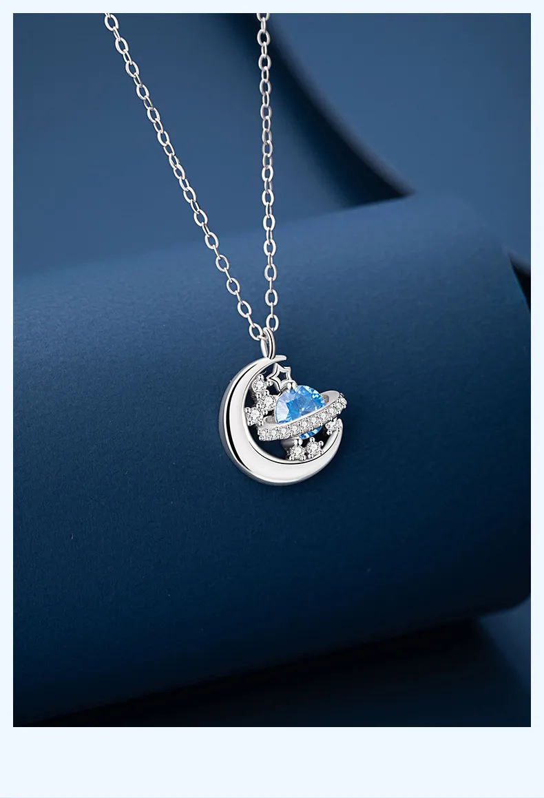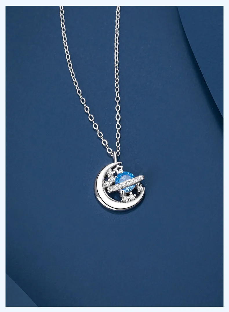 星光遊樂園 | 行星軌跡造型項鍊 | S925純銀鑲鑽 | 純淨海藍鋯鑽 | 鏡面拋光 | 夢幻浪漫送女生禮物星光遊樂園主題鎖骨鍊女生項鍊