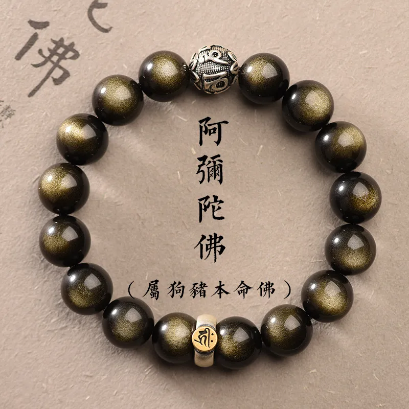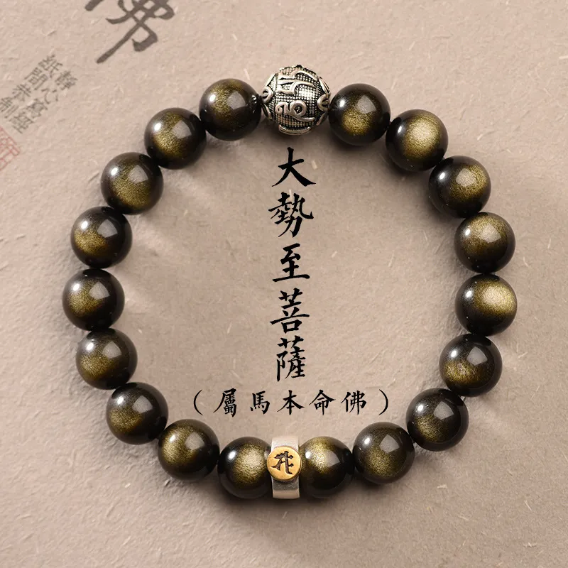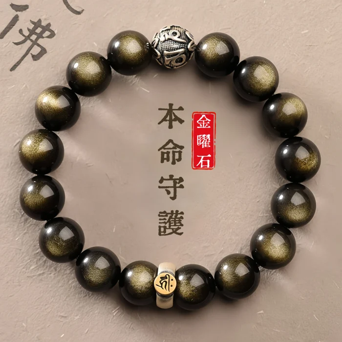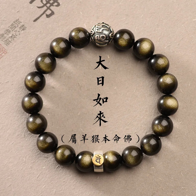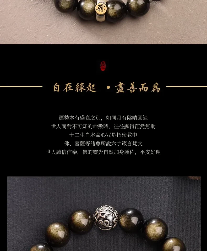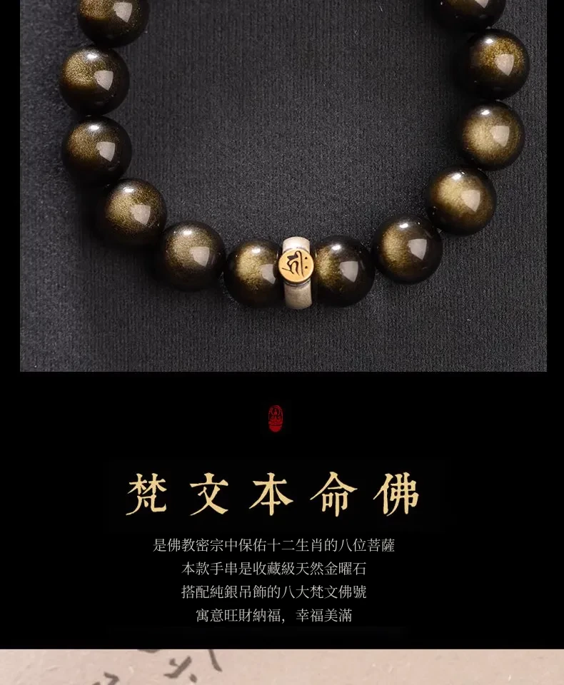 本命守護 | 梵文十二生肖本命佛手鍊 | 天然太陽金曜石 | 925純銀菩薩心咒吊飾 | 天然太陽金曜石本命佛生肖守護神手鍊
