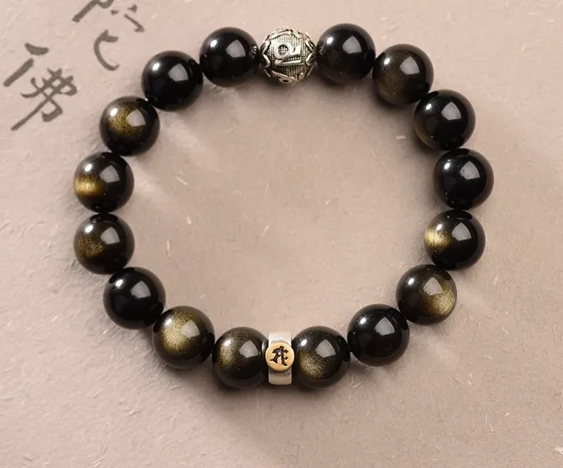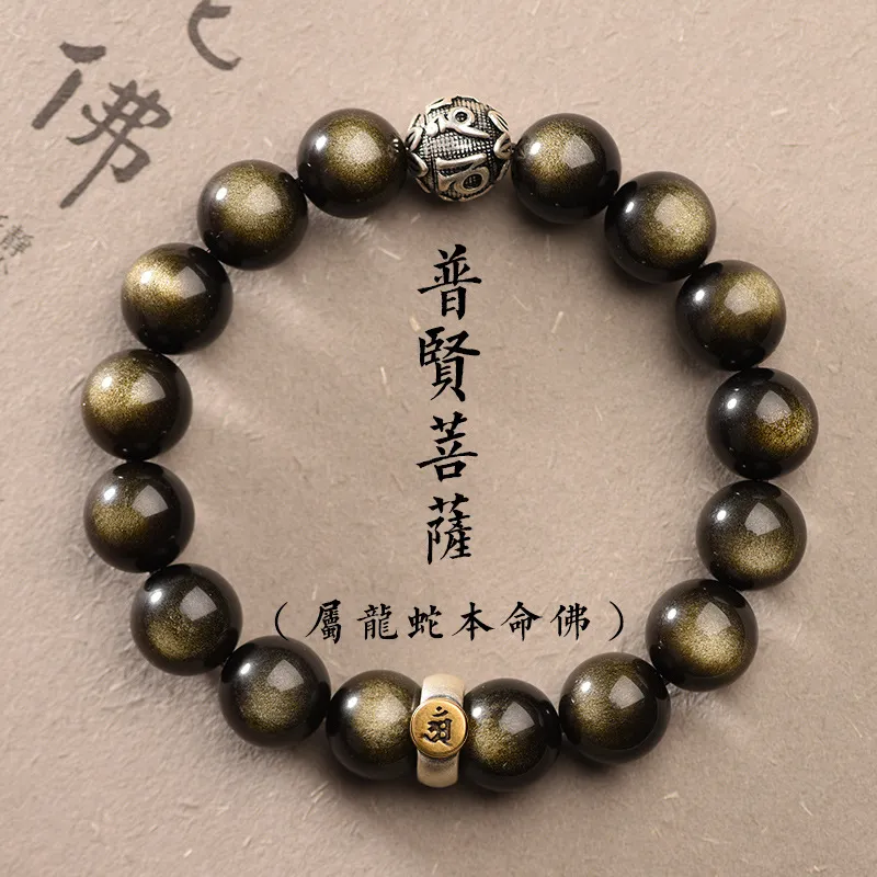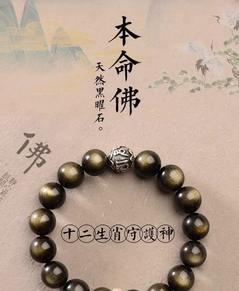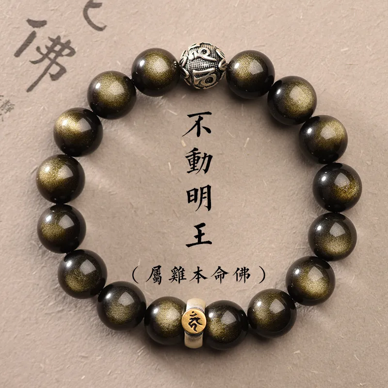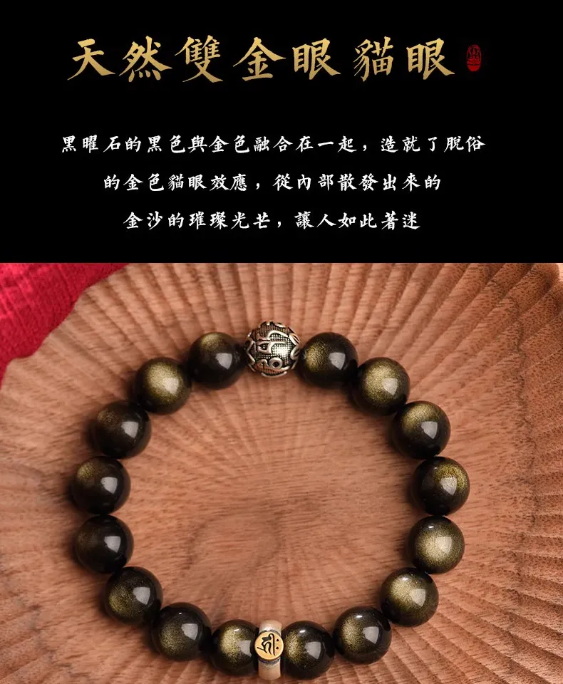 本命守護 | 梵文十二生肖本命佛手鍊 | 天然太陽金曜石 | 925純銀菩薩心咒吊飾 | 天然太陽金曜石本命佛生肖守護神手鍊