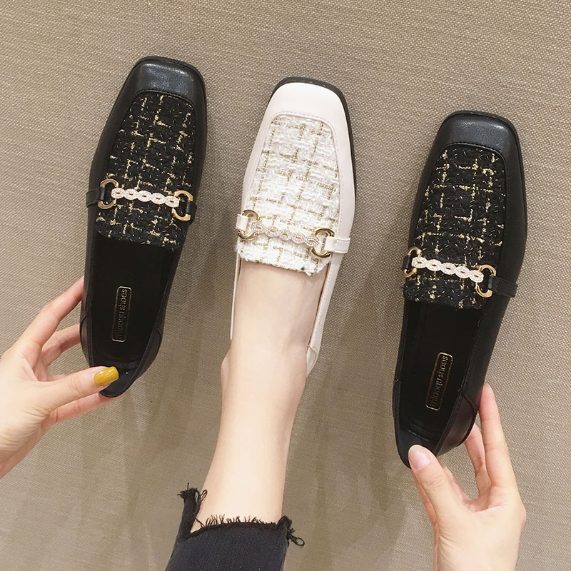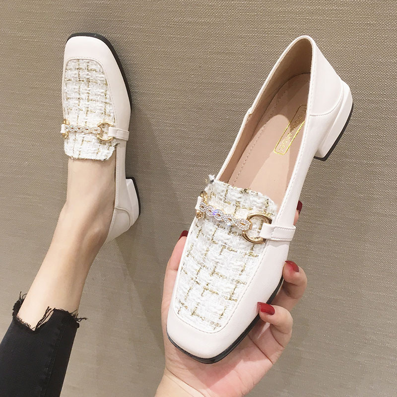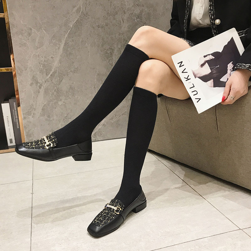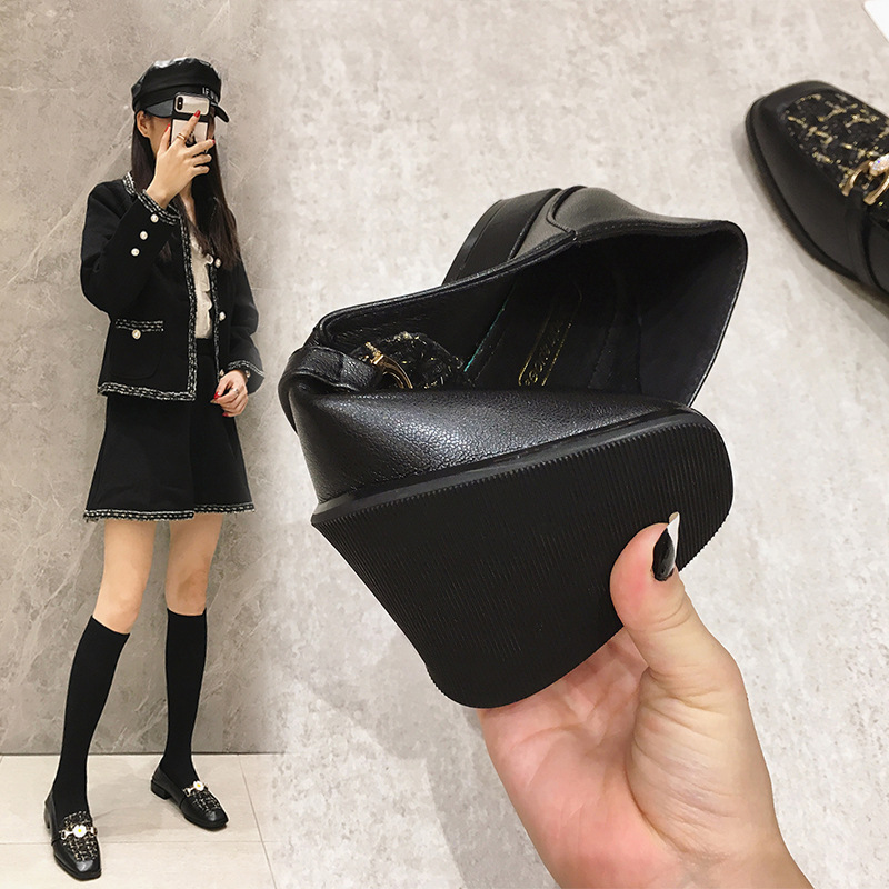 英倫風粗跟秋季新款中跟樂福鞋懶人鞋百搭軟皮女鞋小跟鞋樂福鞋