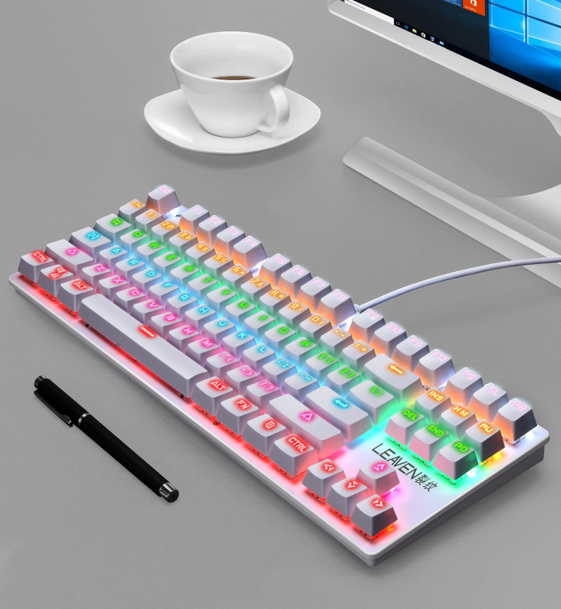 【機械鍵盤】【遊戲工作兼容青軸】【87鍵全鍵無衝】【彩虹背光】K550專業電競商務87鍵白色彩虹混光有線機械鍵盤