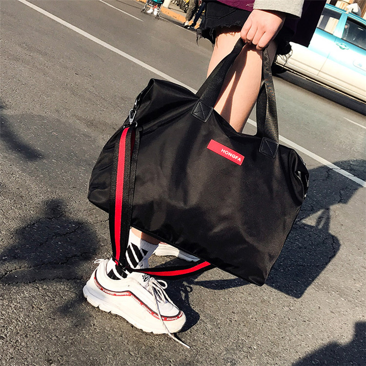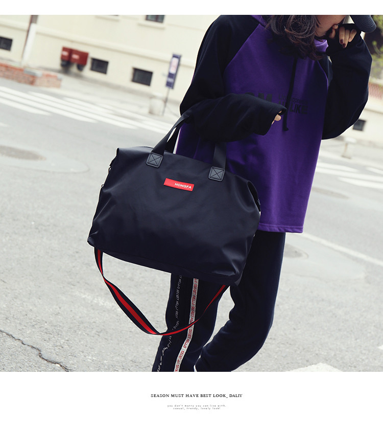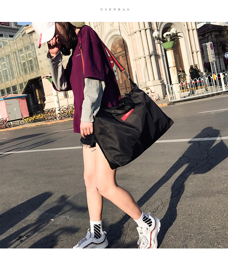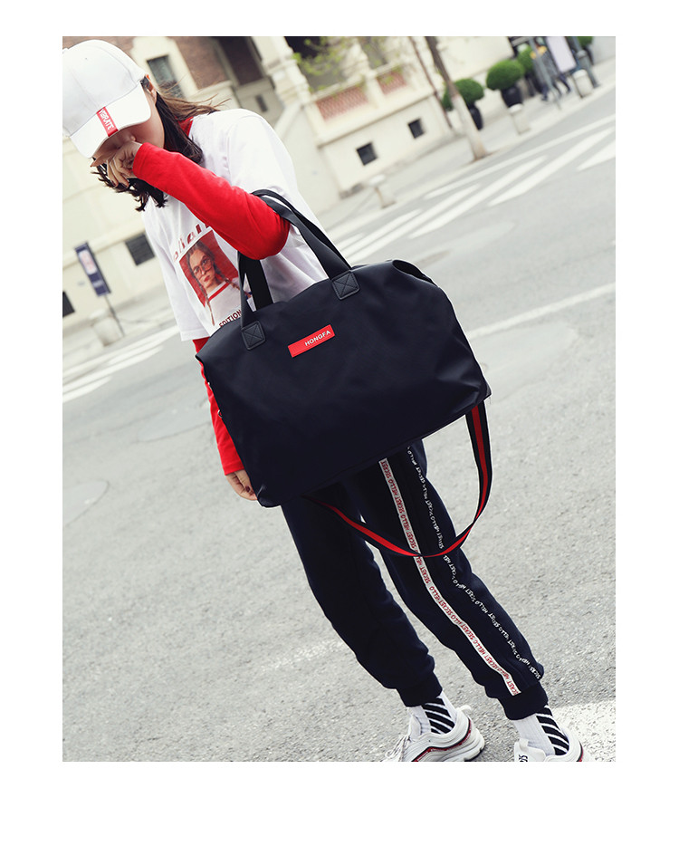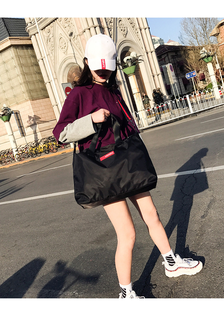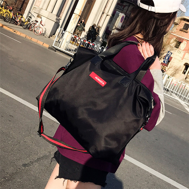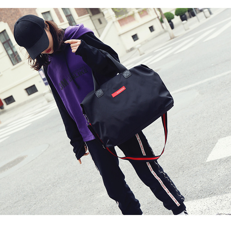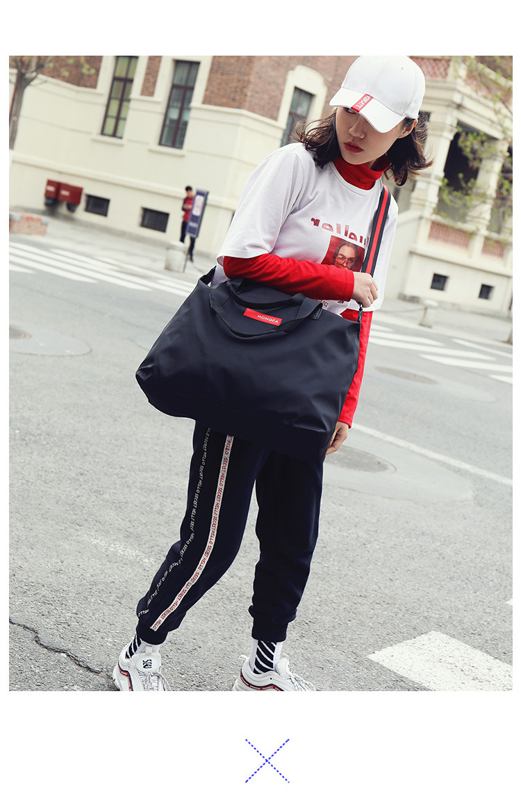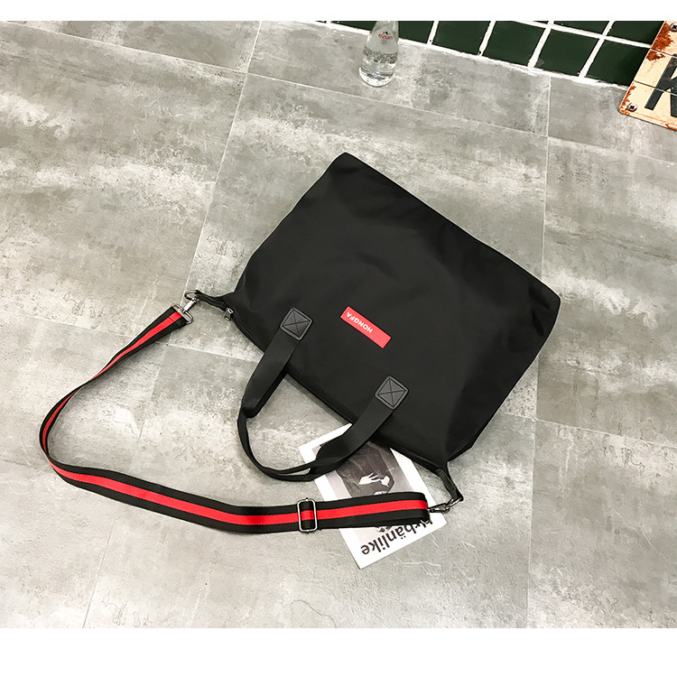【輕便防水通勤健身包】【條紋編織寬肩帶】日式簡約大容量輕便手提肩背防水旅行運動健身通勤包