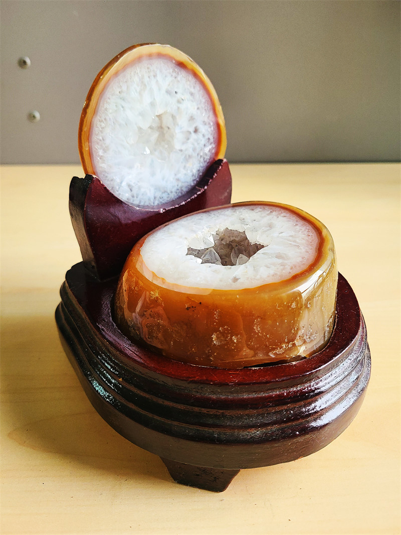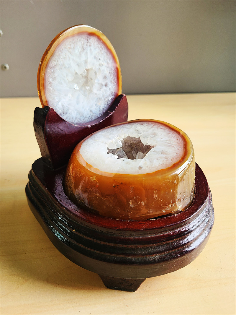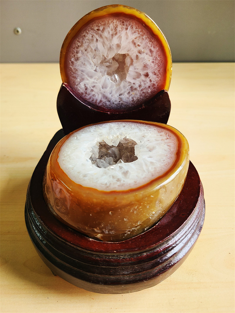 開運招財 | 極品大晶牙 | 鎮宅旺財 | 人間極品完美級 | 天然烏拉圭聚寶盆 | 口大洞深 | 細密閃耀晶砂 | 人間極品滿肉玉潤實木底座天然瑪瑙聚寶盆擺件