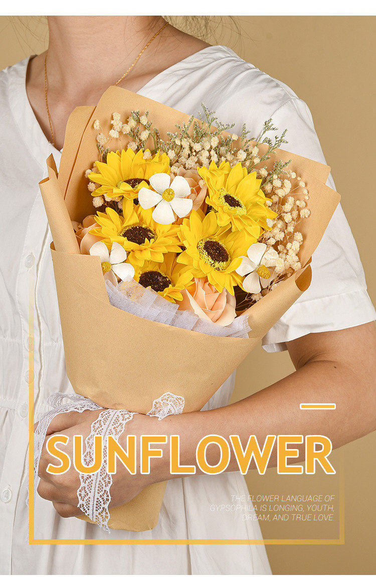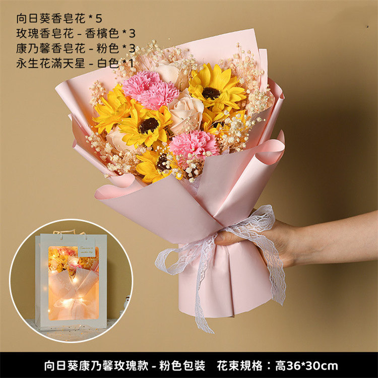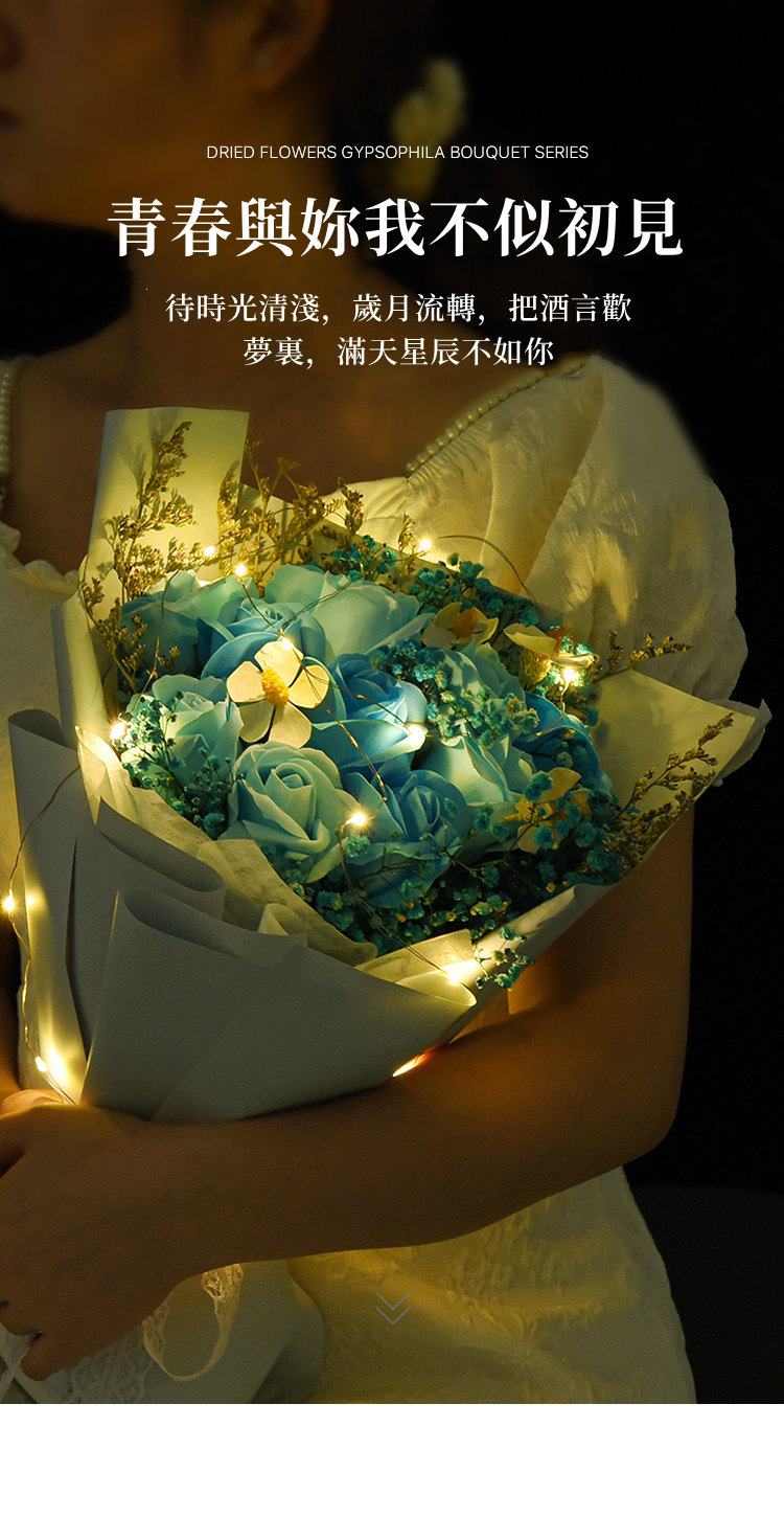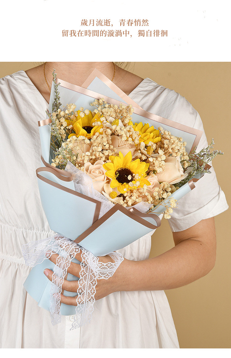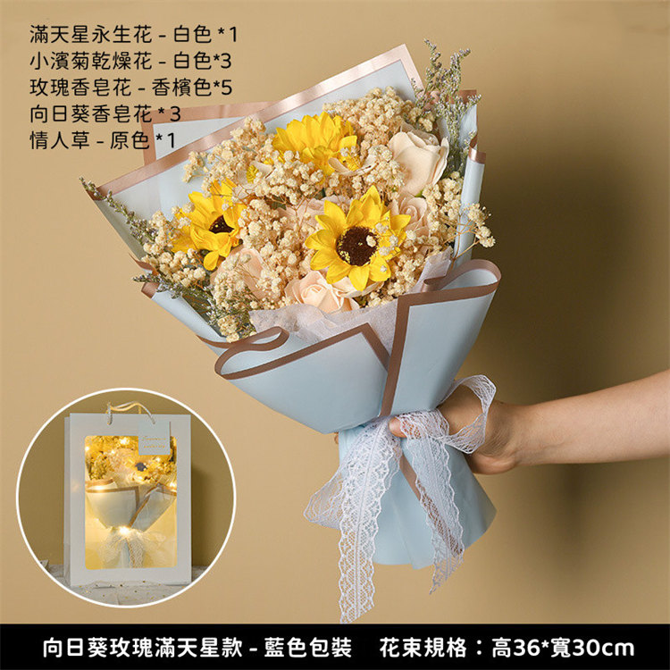 青春與妳我似初見 | 插畫級混搭花藝手捧花束 | 永生向日葵玫瑰滿天星小濱菊 | 配送LED燈串禮袋 | 走心浪漫禮物告白畢業花束永生乾燥花