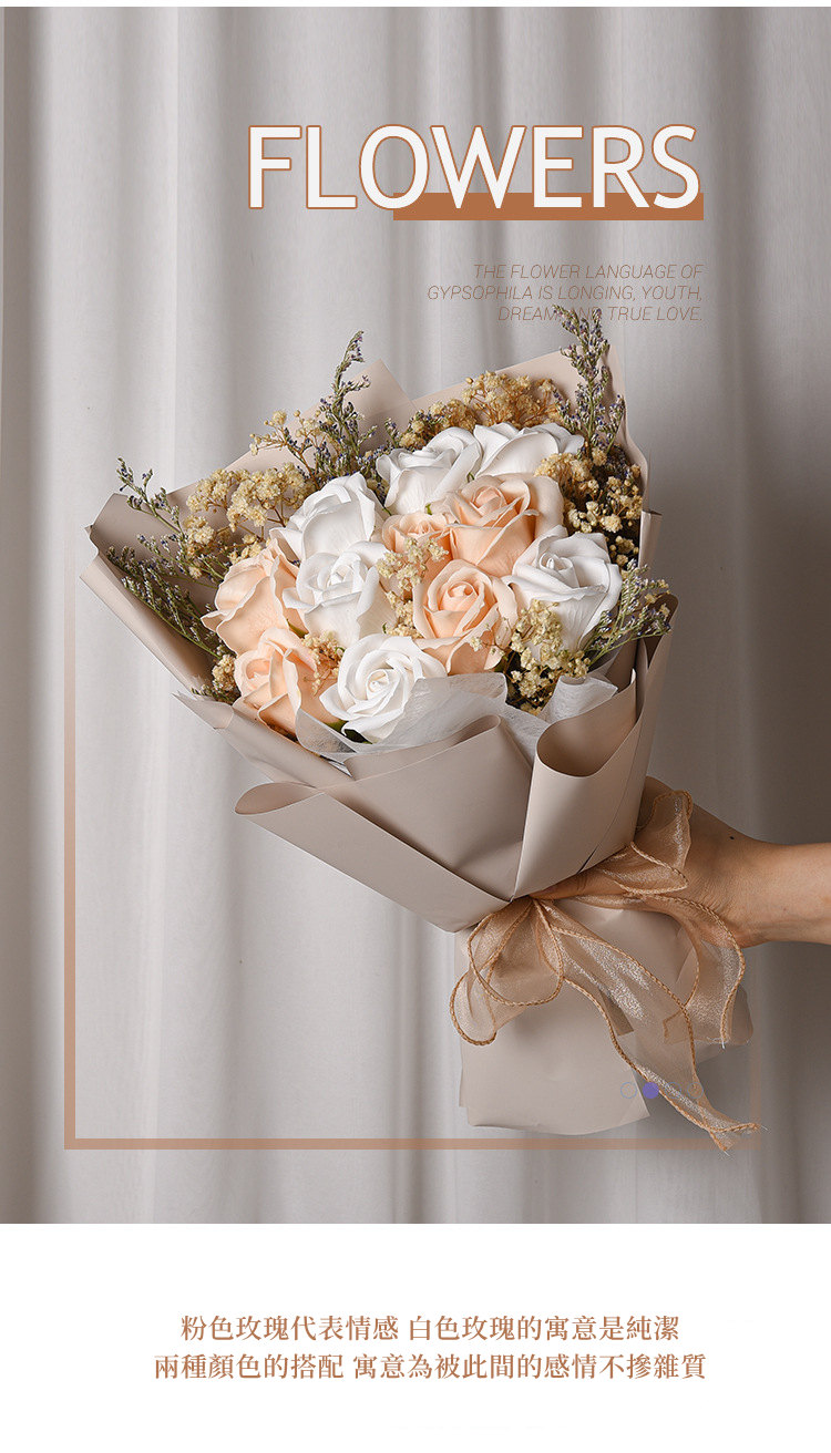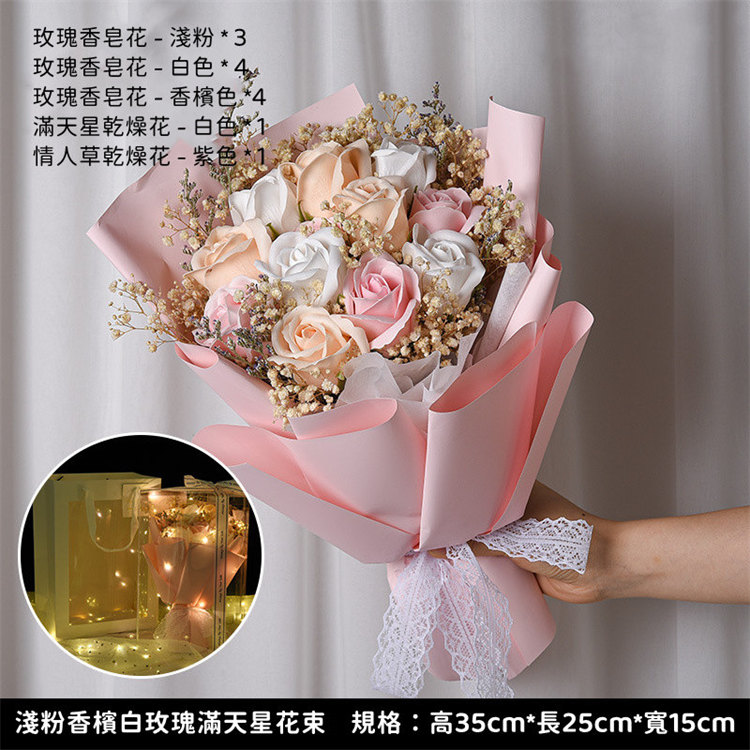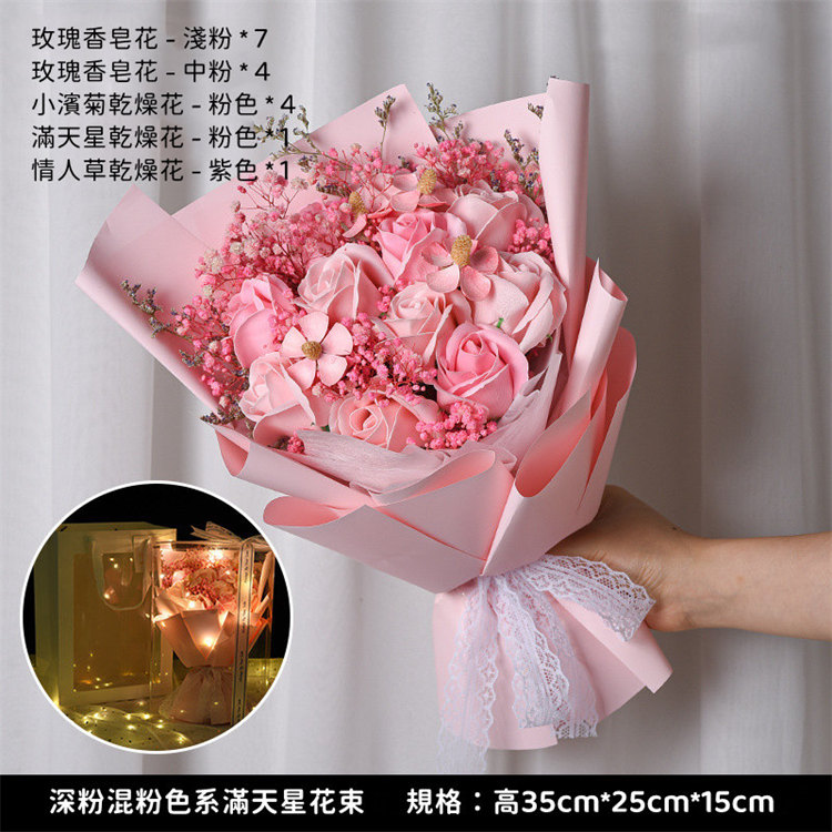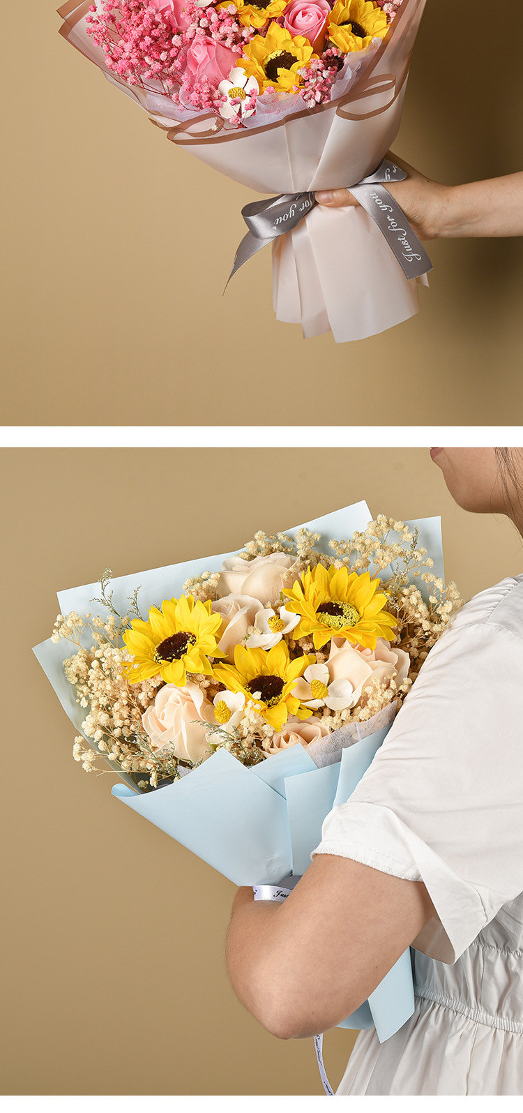 青春與妳我似初見 | 插畫級混搭花藝手捧花束 | 永生向日葵玫瑰滿天星小濱菊 | 配送LED燈串禮袋 | 走心浪漫禮物告白畢業花束永生乾燥花