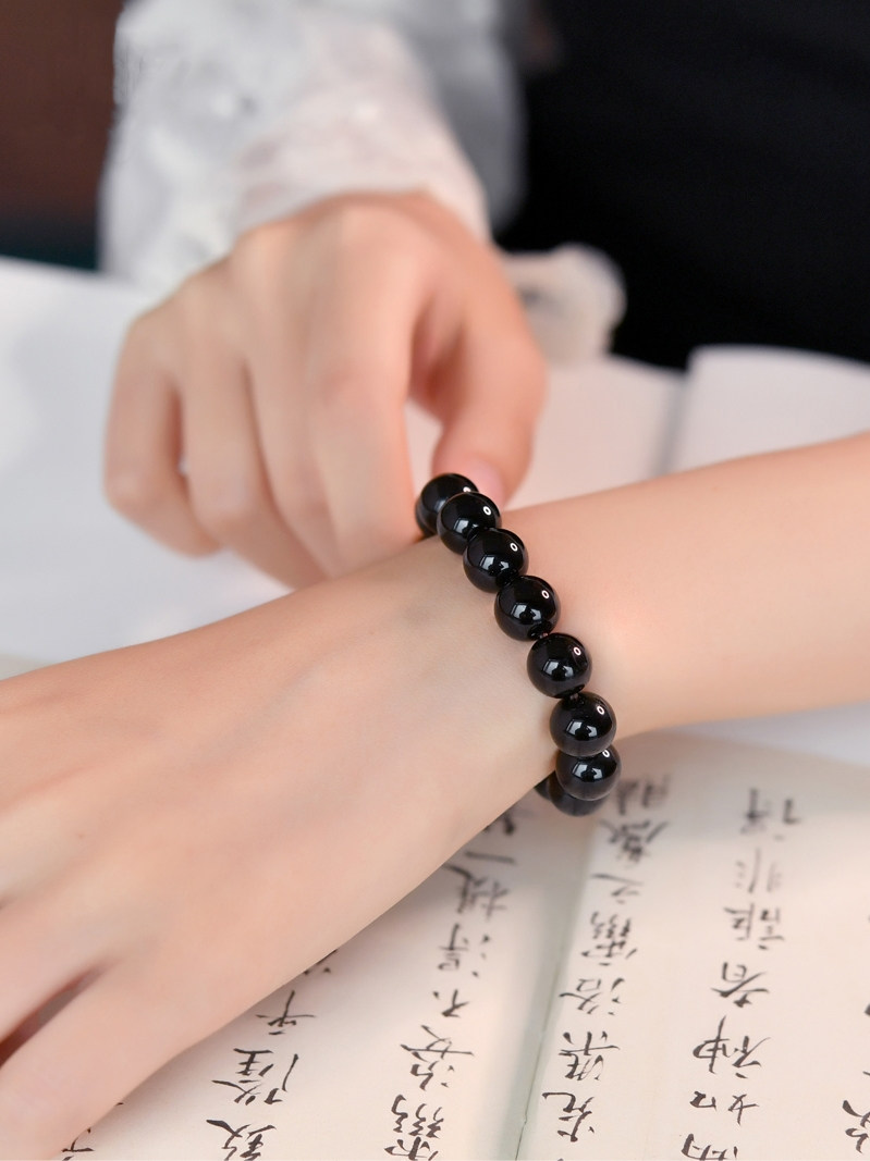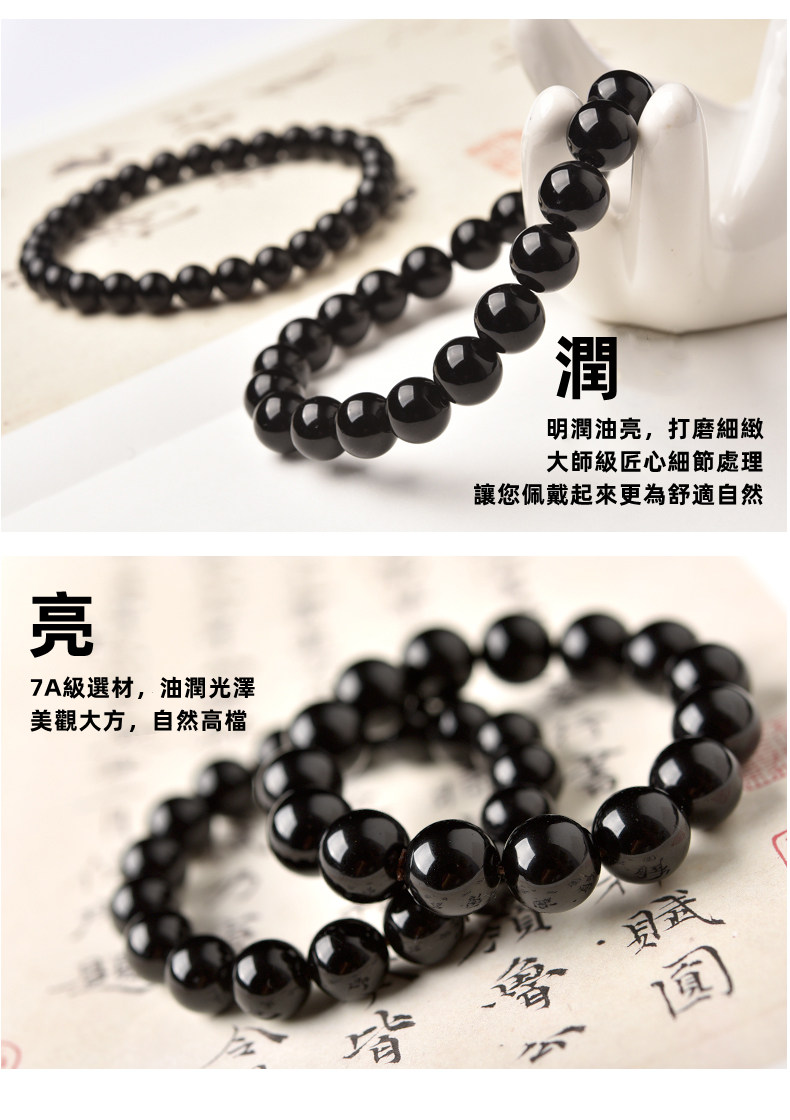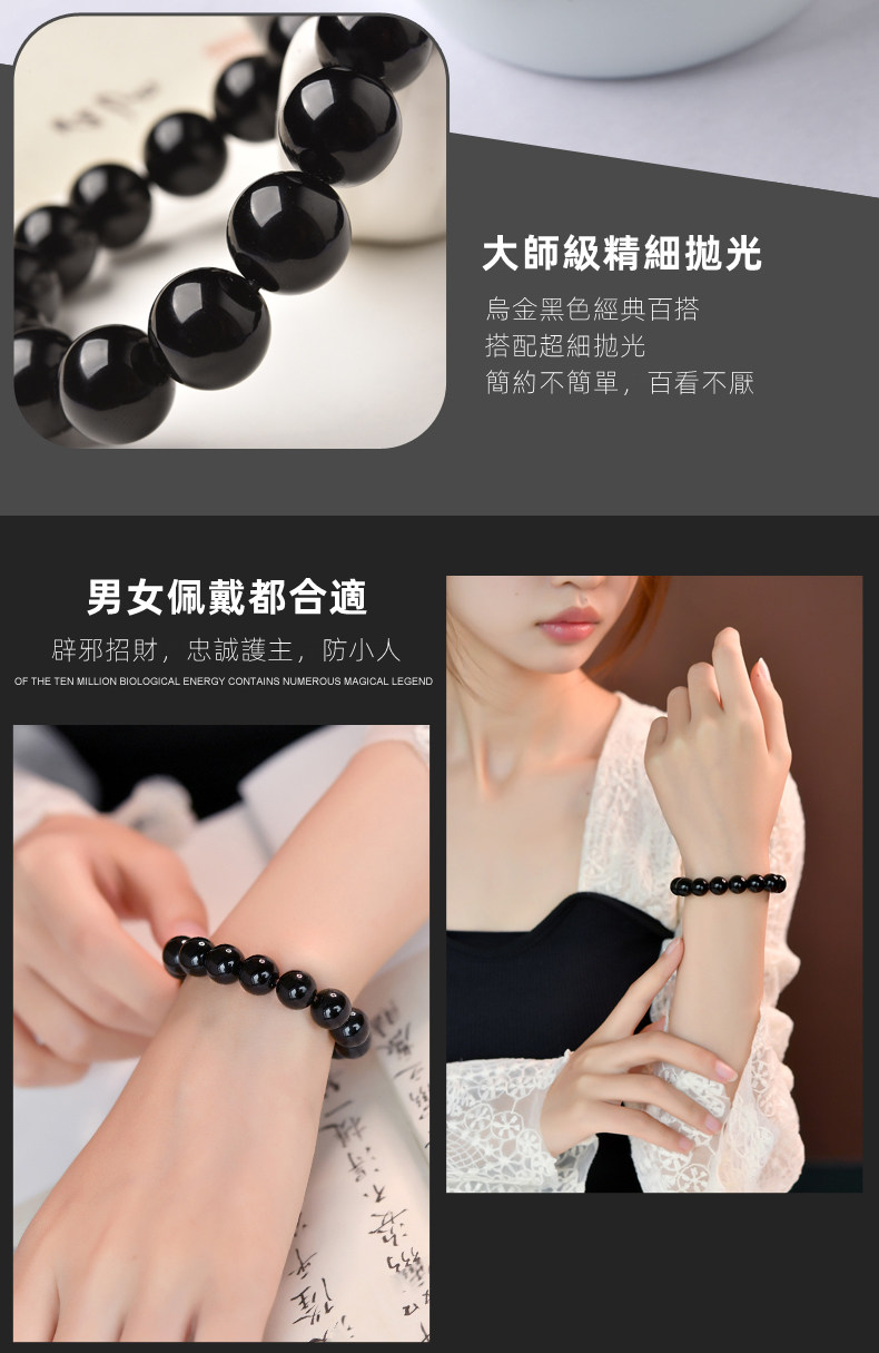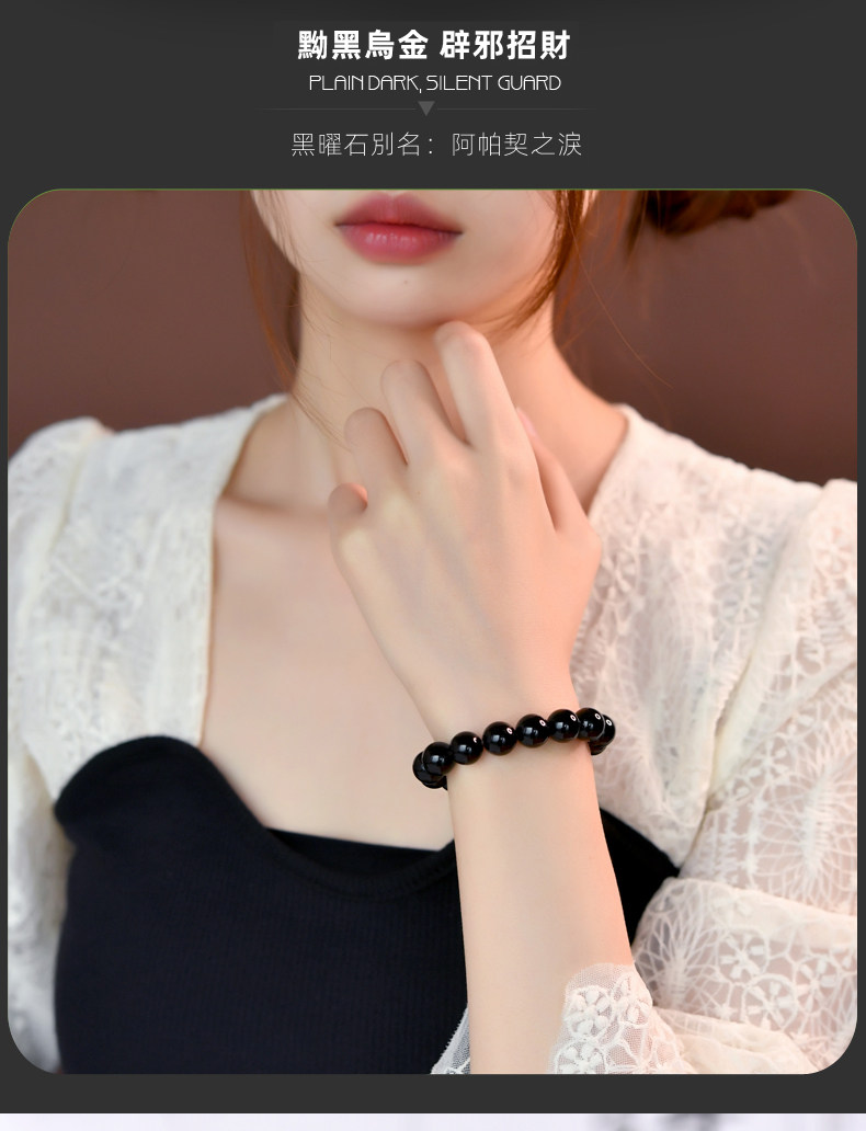 7A收藏級 | 天然烏金黑曜石 | 辟邪招財 | 防小人防噩夢 | 精細打磨拋光 | 男女中性款 | 天然黑曜石水晶手鍊佛珠手串