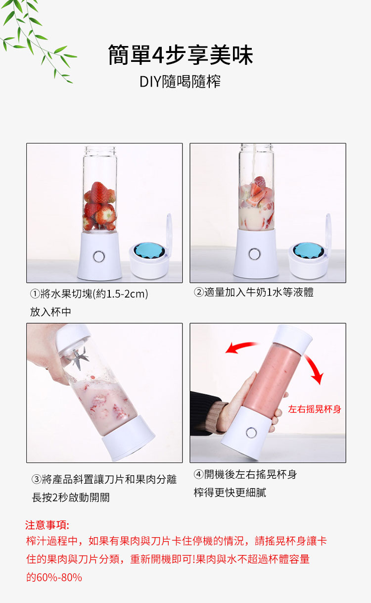 【日式隨行杯果汁機】【30秒精榨】【破壁口感】【304六葉刀片】【一鍵清洗】日式科技破壁口感30秒精榨無線隨行杯果汁機