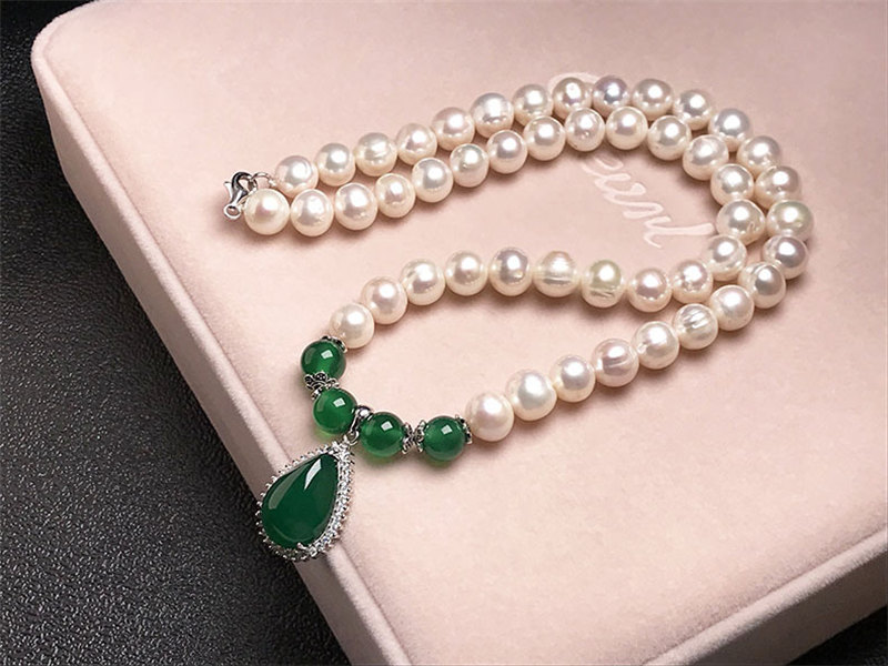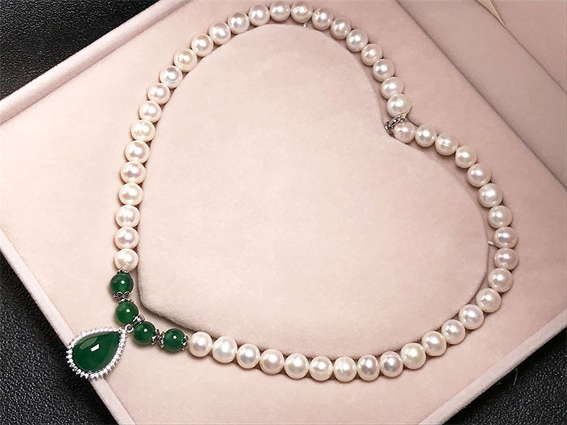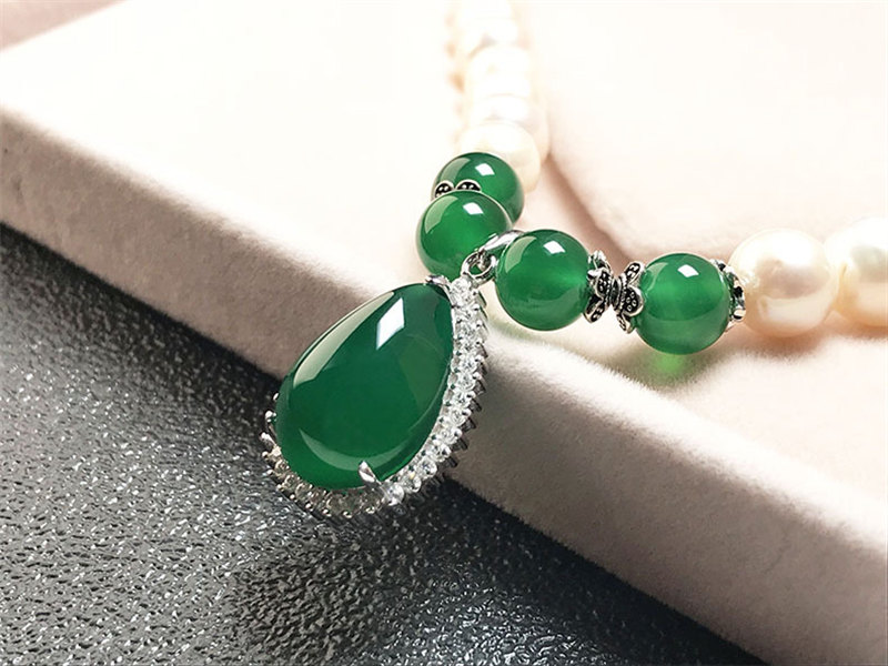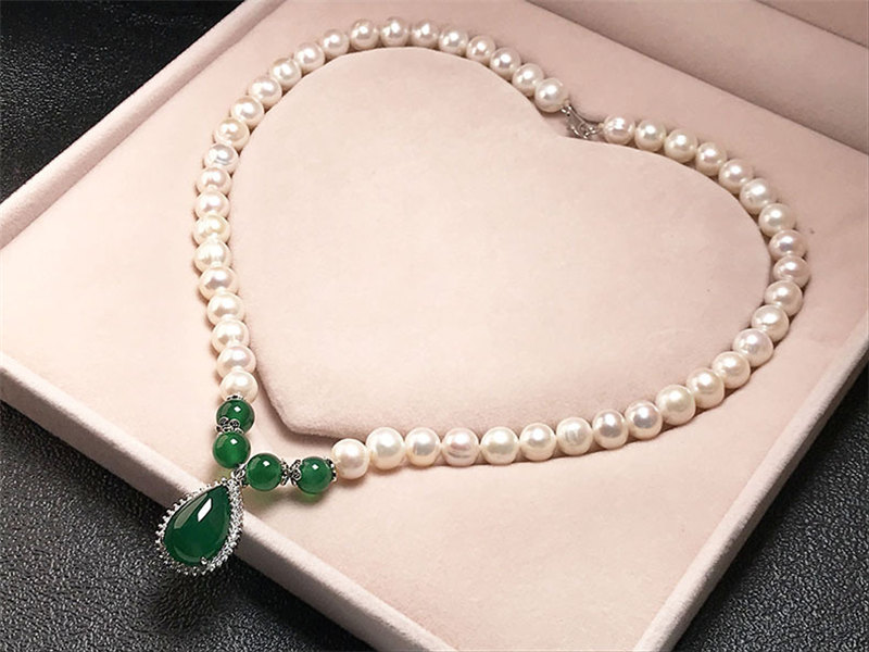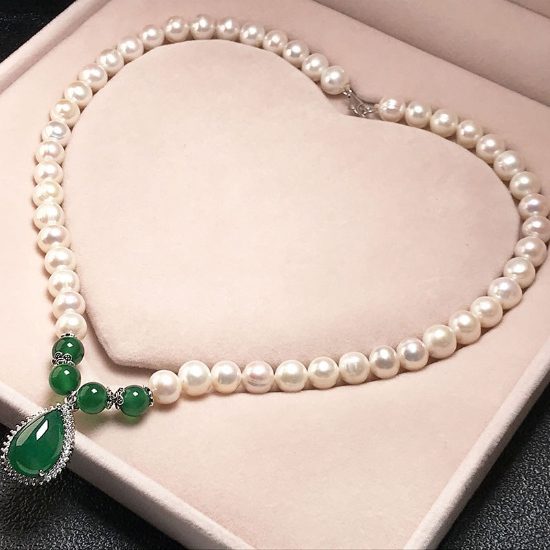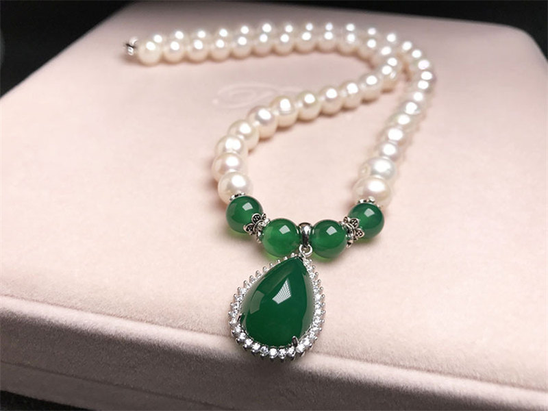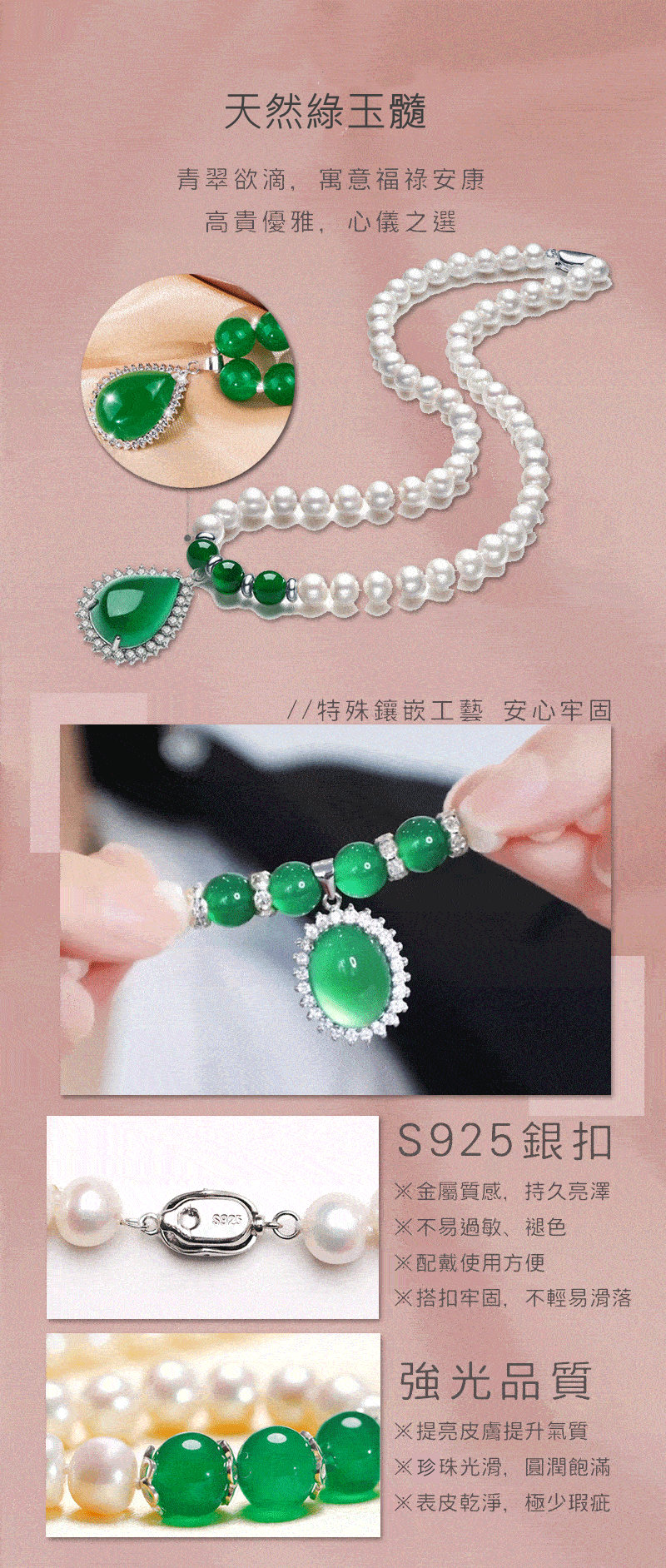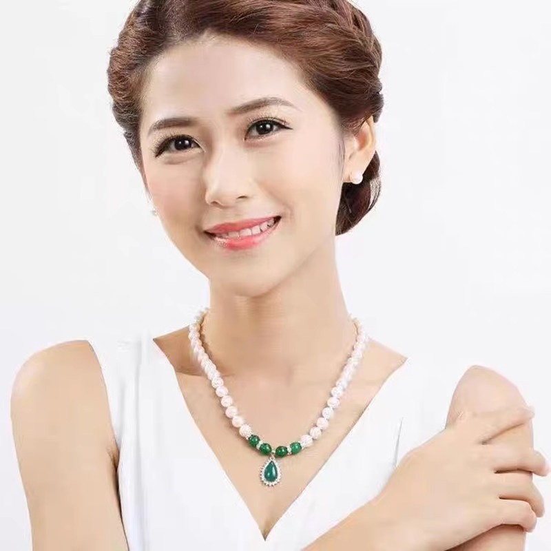 天然珍珠項鍊手鍊耳墜三件禮盒組 | 高檔近圓珍珠配綠玉髓 | 925純銀不傷膚 | 超合適母親節禮物送媽媽高檔珍珠首飾項鍊三件組禮盒