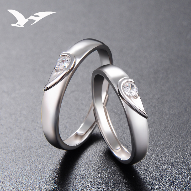 【心心相應】【S925純銀鑲鑽】設計師款組合愛心男女開口戒指情侶對戒