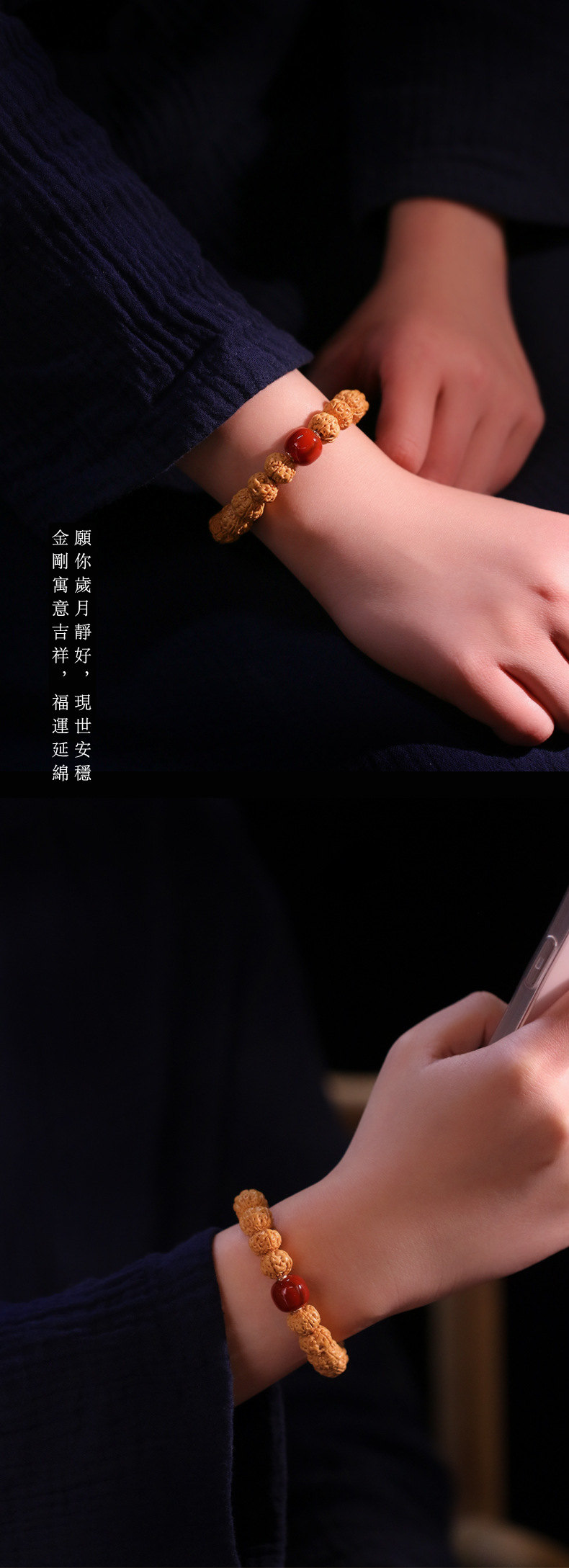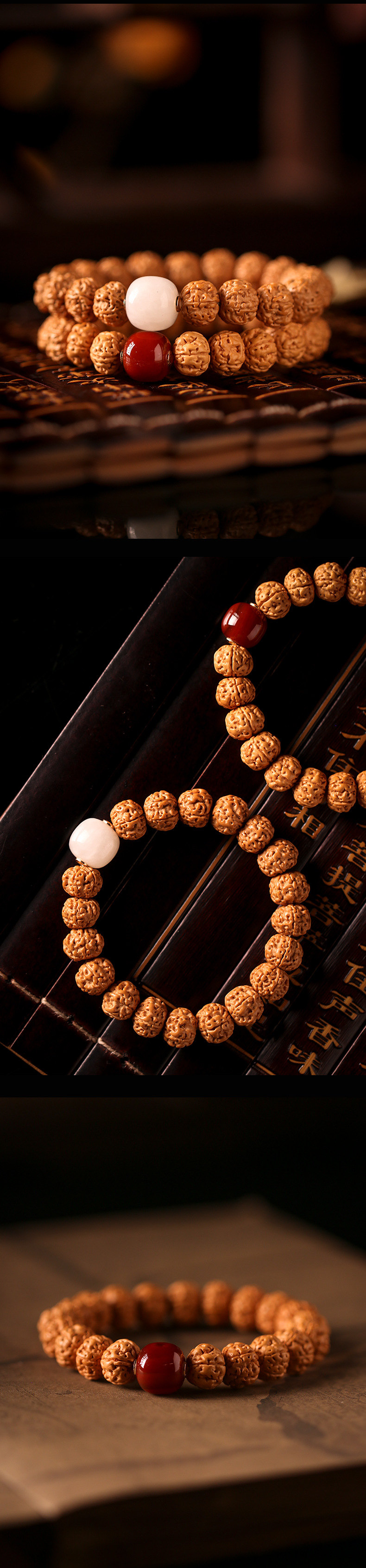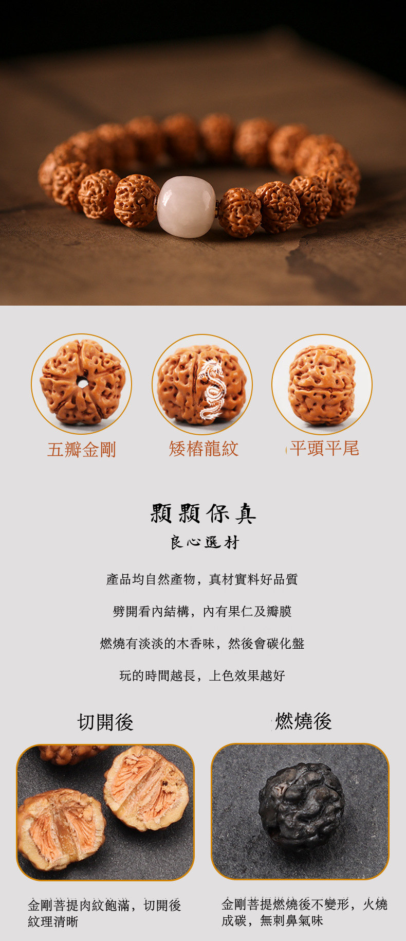 收藏級天然五瓣金剛菩提子佛珠手串 | 百年矮樁爆肉雙龍紋 | 護身加持福綿延運天然金剛菩提配天然紅瑪瑙男女佛珠手串