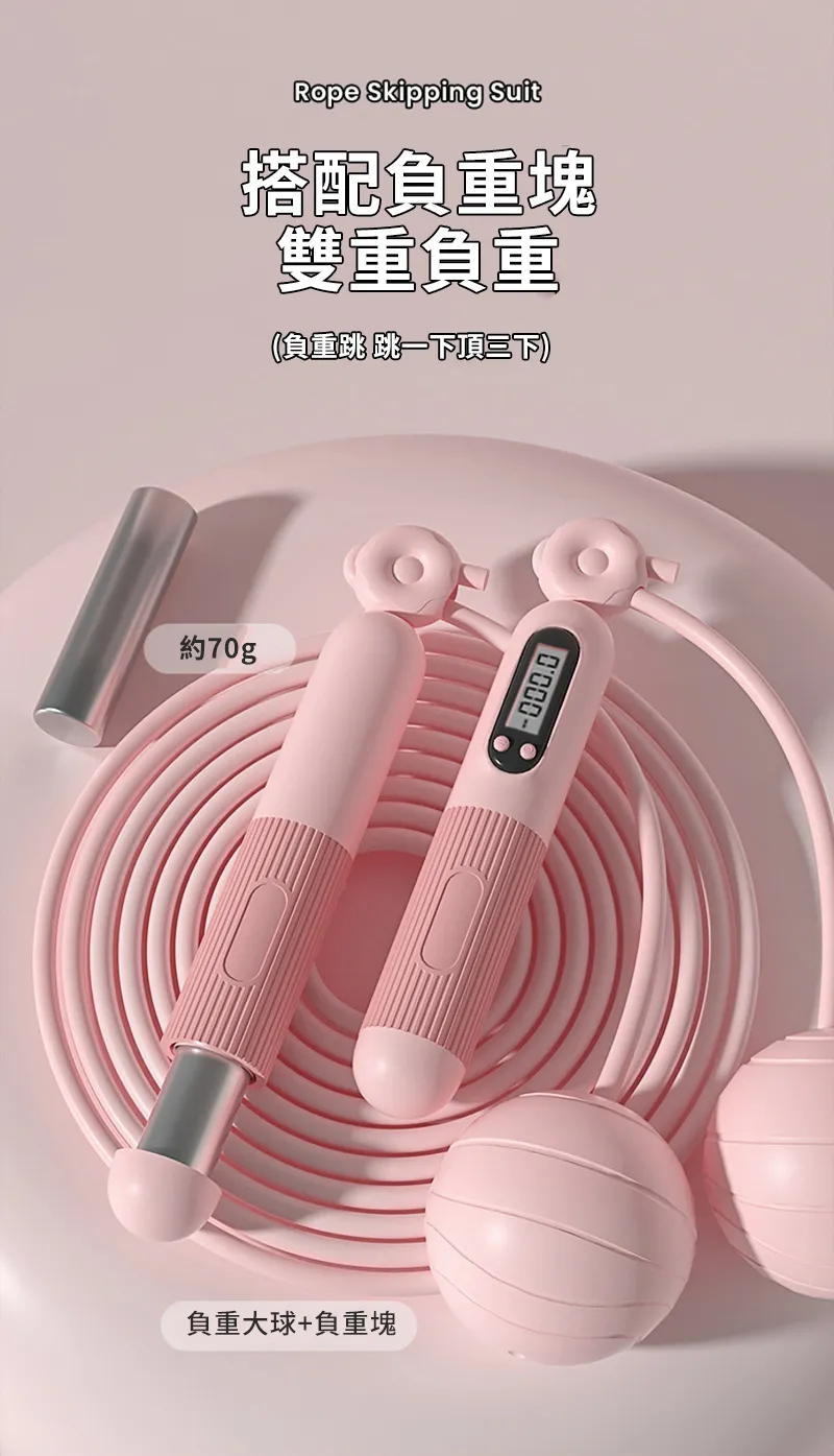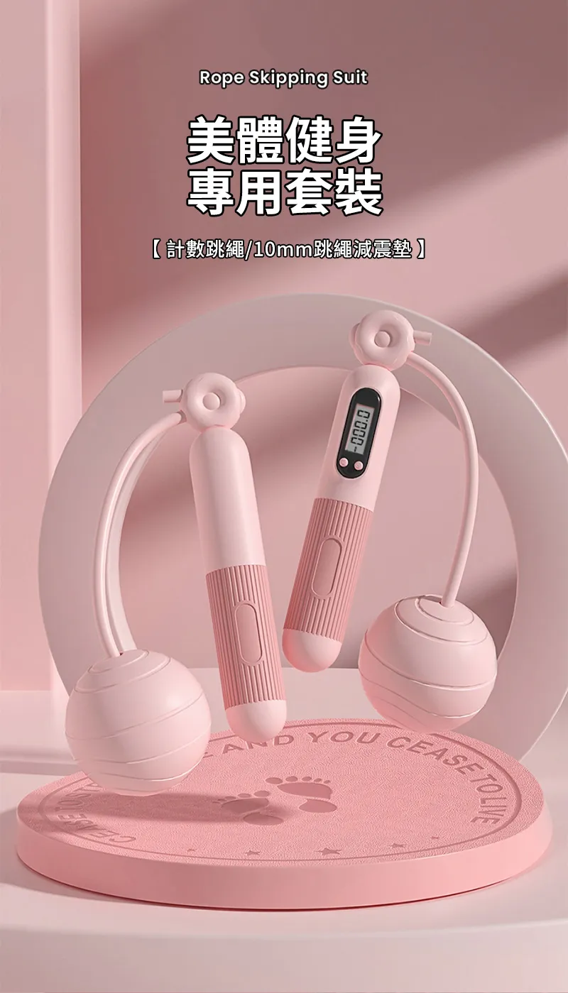 專業級跳繩+減震墊套組 | 精鋼軸承不卡頓 | 智慧運動數據記錄 | 無繩有繩雙模式 | 65MM重力大球 | 搭配負重塊 | 加厚減震隔音墊 | 跳繩美體套組