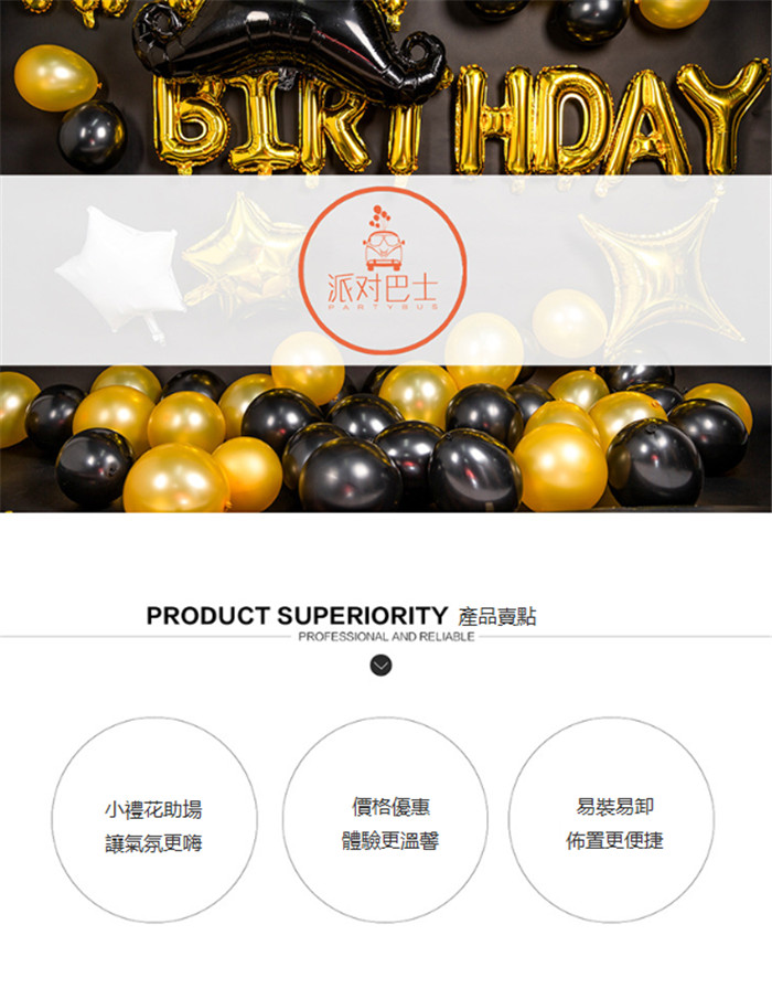 【生日聚會裝飾墻】【豪華浪漫套組】生日鋁膜乳膠氣球套裝聚會氣氛氣球裝扮套組