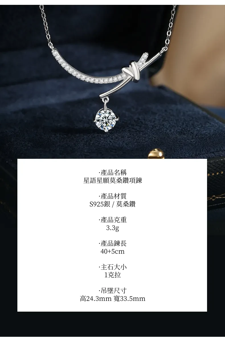 項鍊・星語心願 | 鑲嵌一克拉莫桑鑽 | 可過測鑽筆 | 附GRA認證證書 | 3EX級切工 | S925純銀 | 星語心願送女生禮物真莫桑鑽項鍊