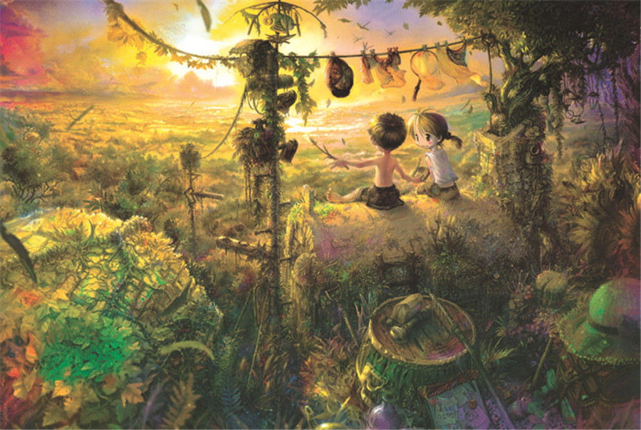【一起看日落】【高難度1000片】【環保木質】【可捲可提】插畫風格精品減壓1000片環保木質覆膜無毒無味大呎寸拼圖