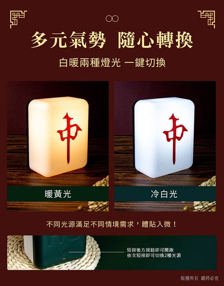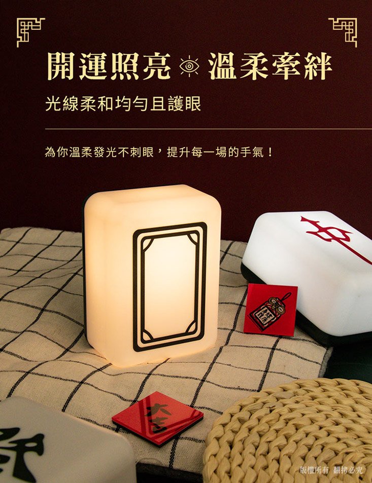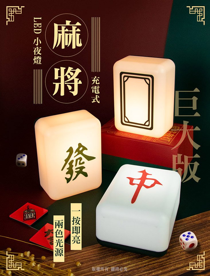 超逼真開運麻將小夜燈 | 冷暖雙色溫柔伴睡 | 自帶鋰電 | 超受歡迎柔和光感招財擺設交換禮物發財紅中白板造型麻將小夜燈
