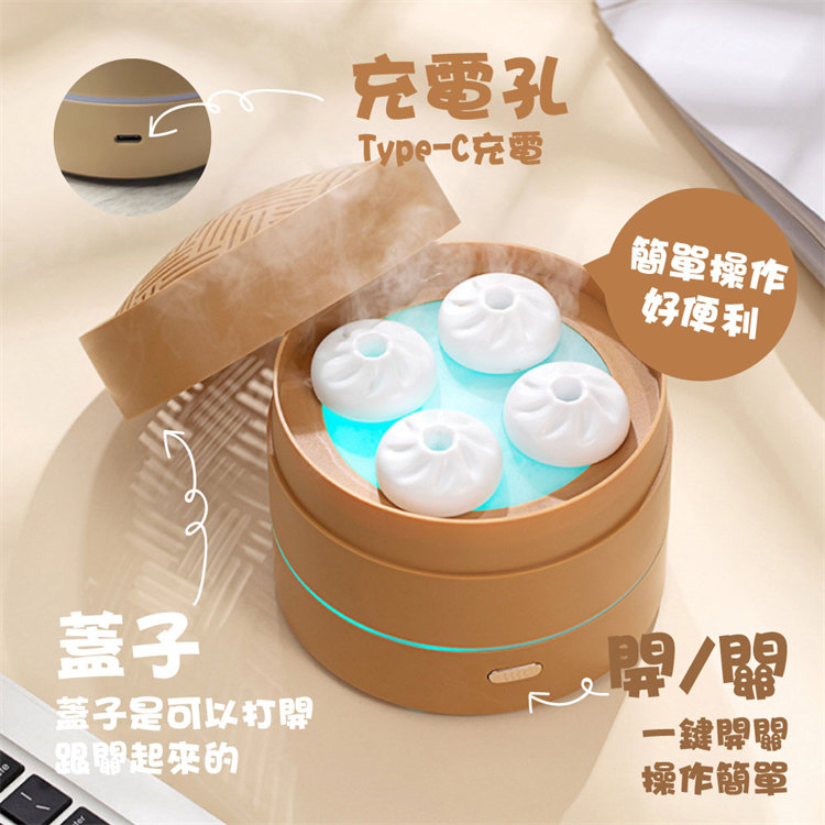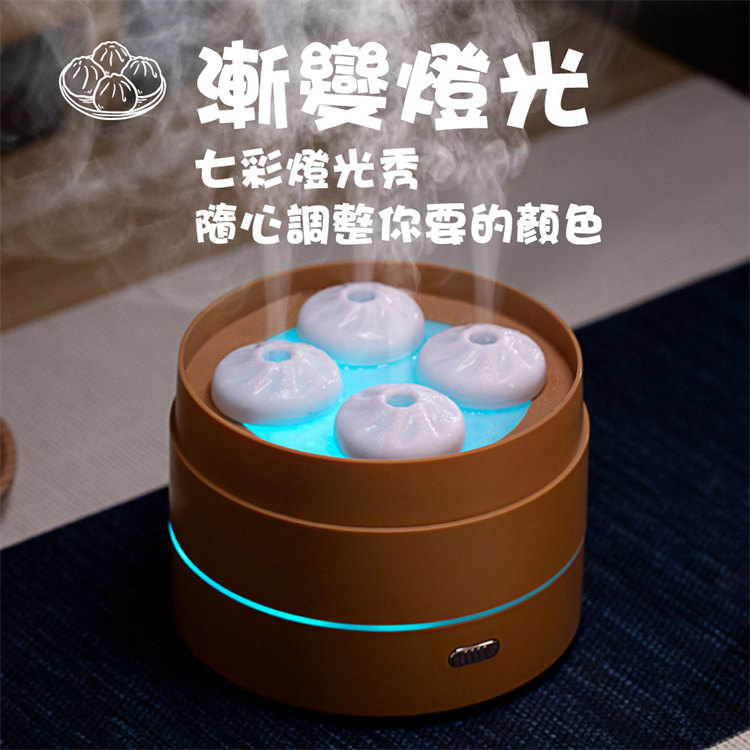 蒸蒸日上小籠包精油香薰機 | 漸變小夜燈 | 超音波奈米霧化噴霧 | 超超超萌可愛送女生禮物四噴嘴小籠包精油香氛噴霧機香精油燈加濕器水氧機
