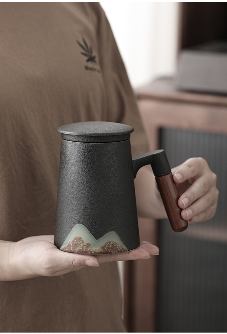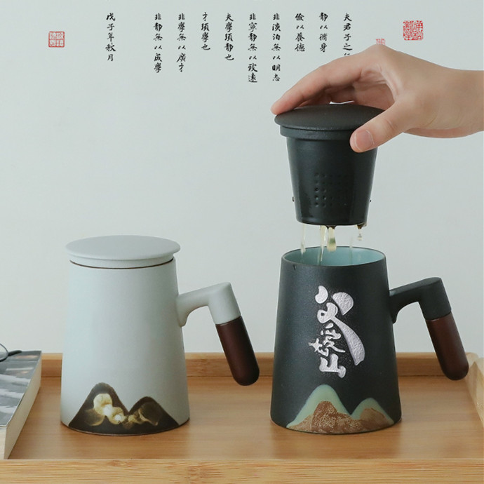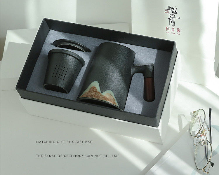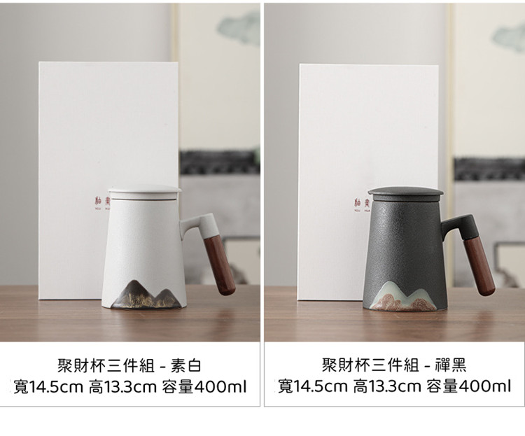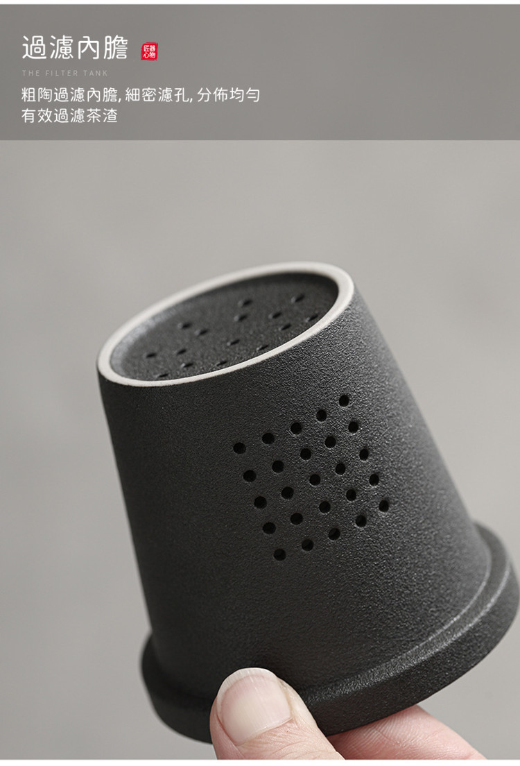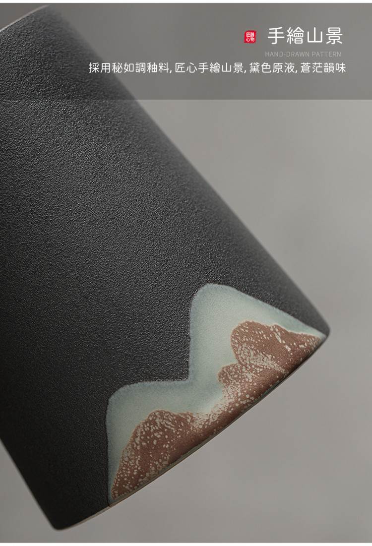 遠山聚財功夫泡茶杯組禮盒 | 茶杯過濾杯蓋三合一 | 日式高溫燒製粗陶 | 匠心手繪釉彩 | 高檔粗陶遠山意境聚財三合一功夫茶具組