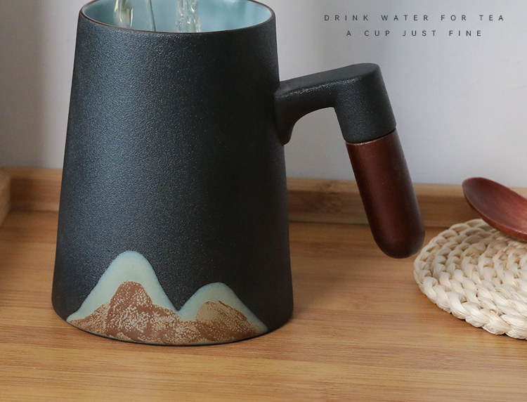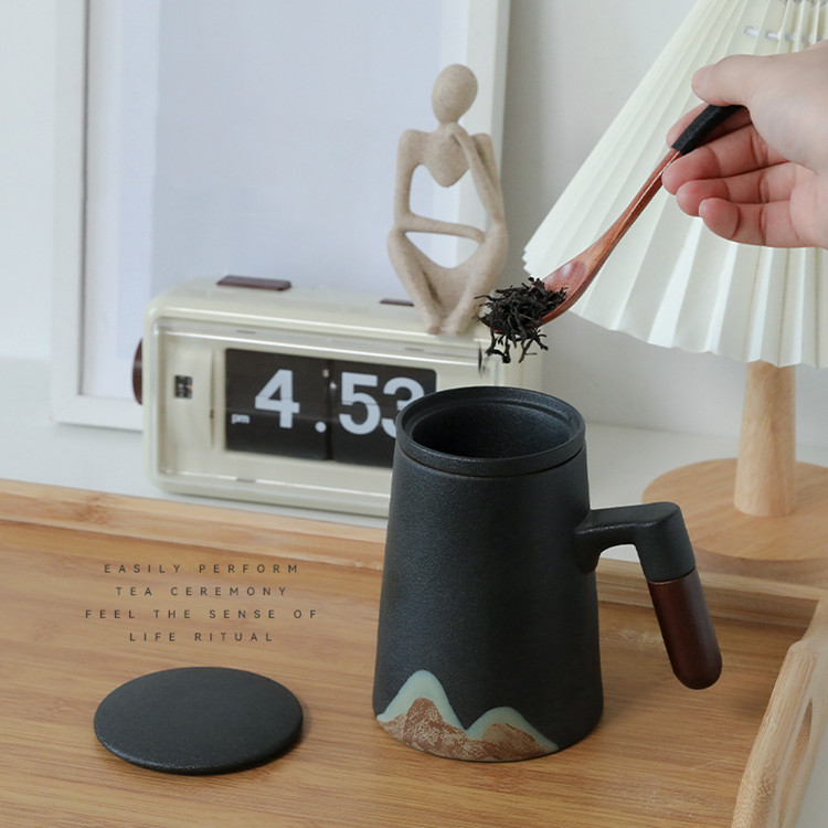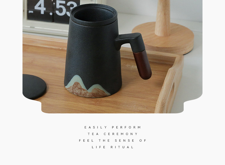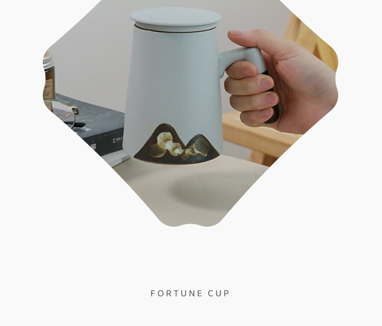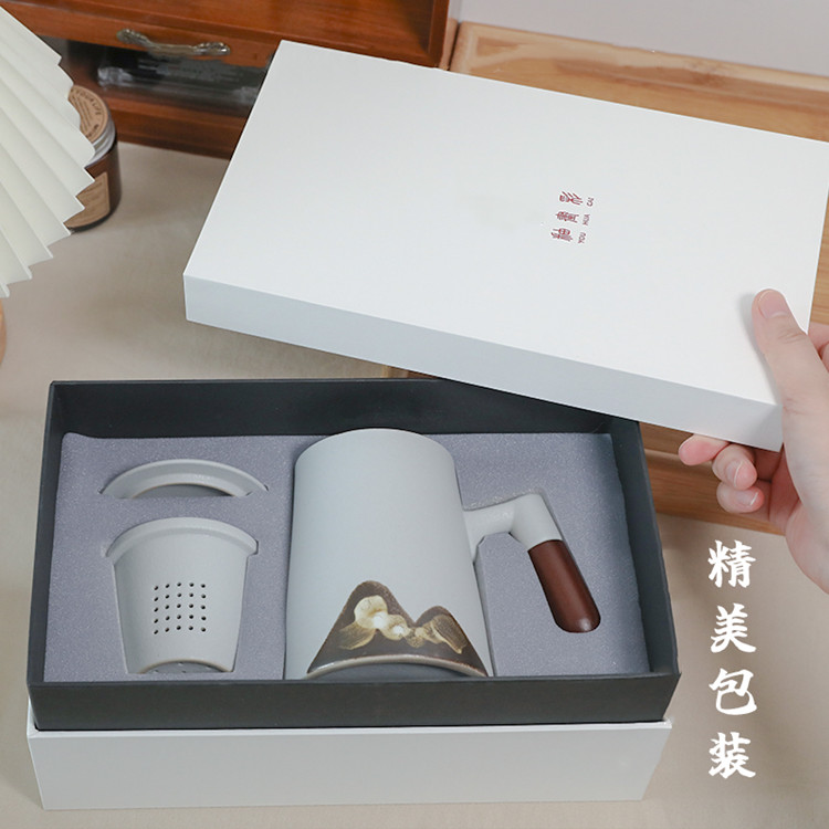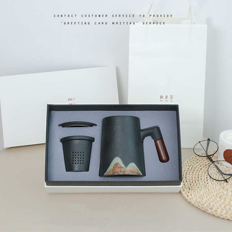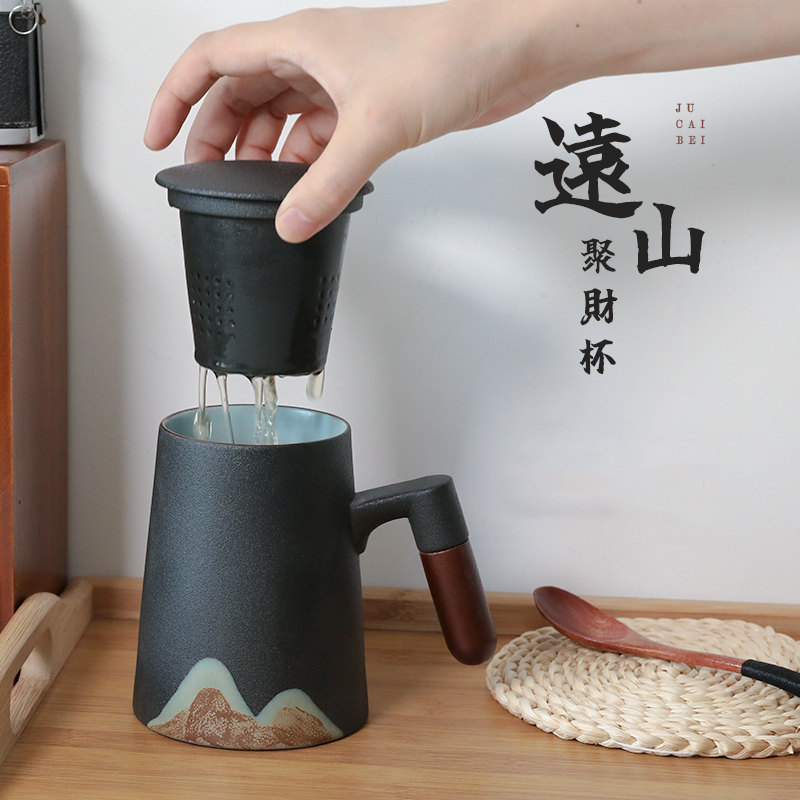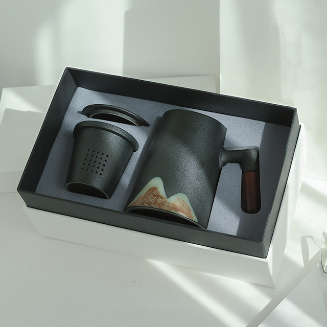 遠山聚財功夫泡茶杯組禮盒 | 茶杯過濾杯蓋三合一 | 日式高溫燒製粗陶 | 匠心手繪釉彩 | 高檔粗陶遠山意境聚財三合一功夫茶具組