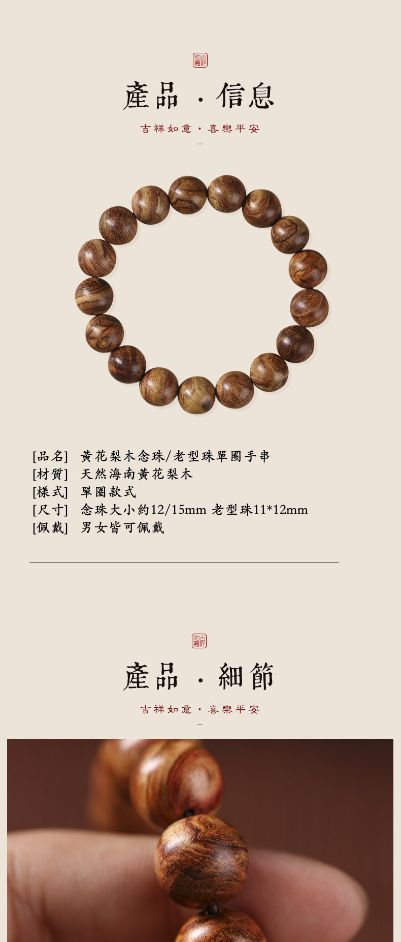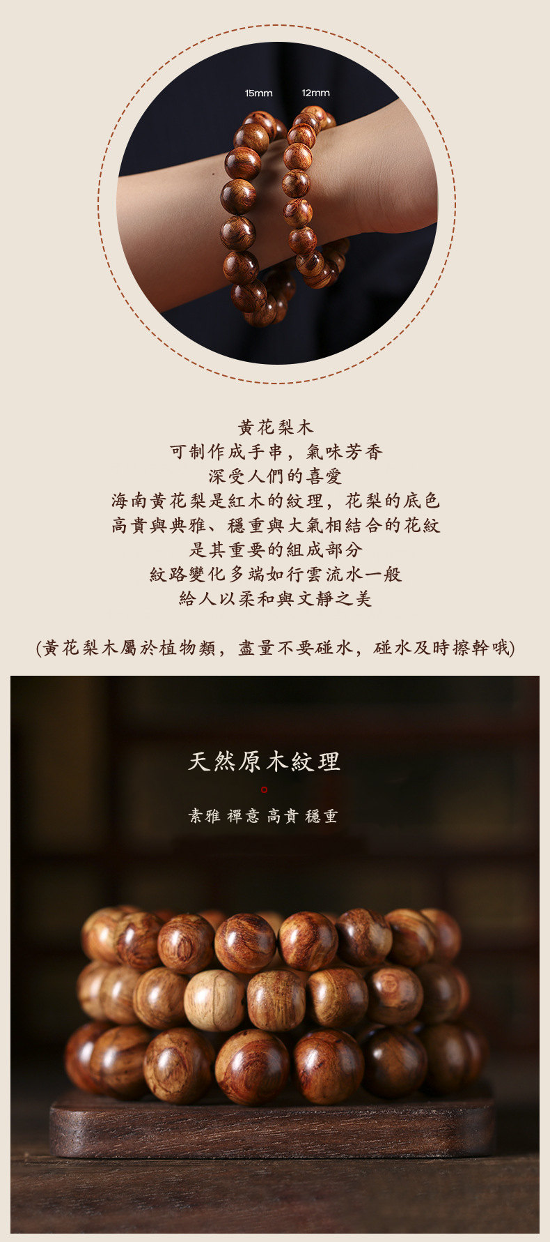 天然名貴黃花梨佛珠手串 | 清逸高雅平安喜樂 | 高油高密天然收藏級海南黃花梨男女15mm珠徑佛珠手串