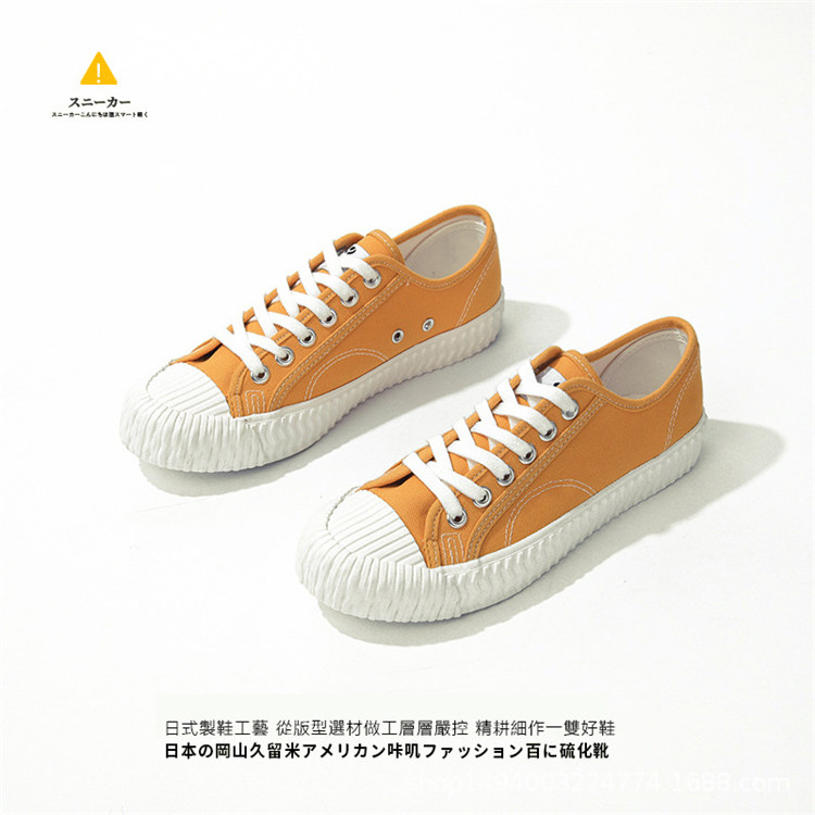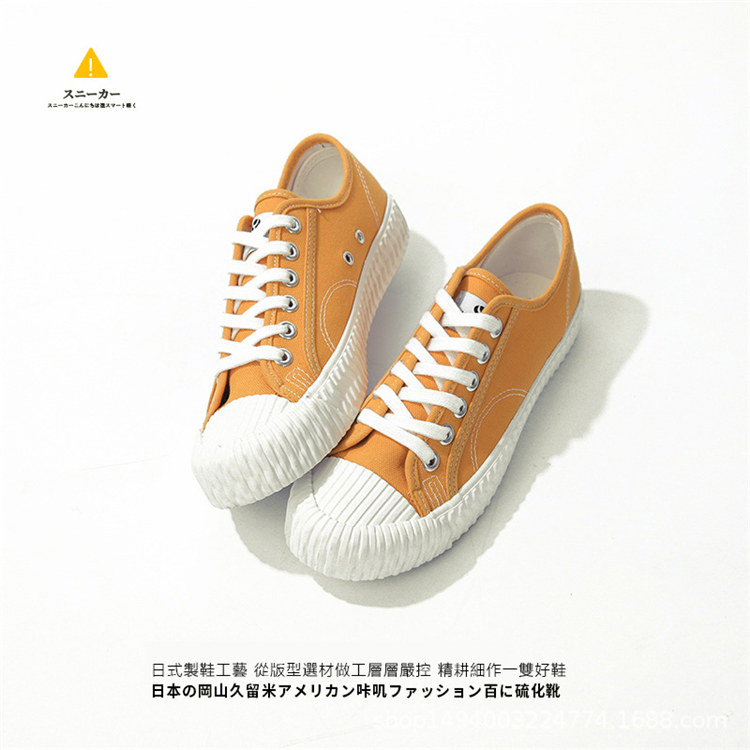 【日式岡山素色餅乾鞋】【可搭配情侶款】氣質百搭素色復古硫化情侶帆布鞋餅乾鞋