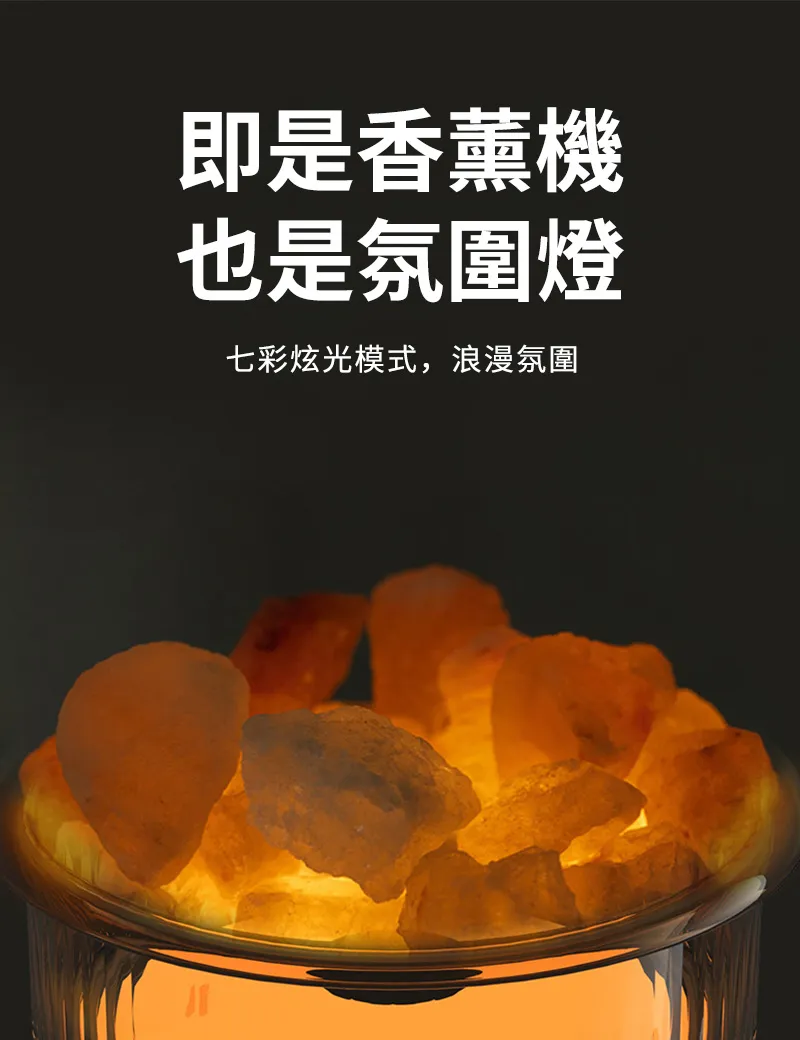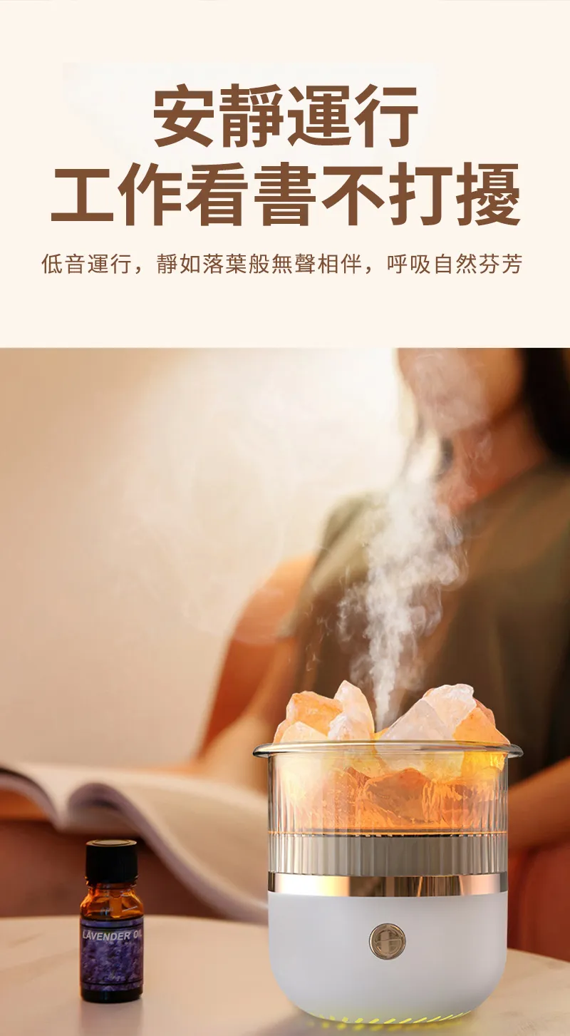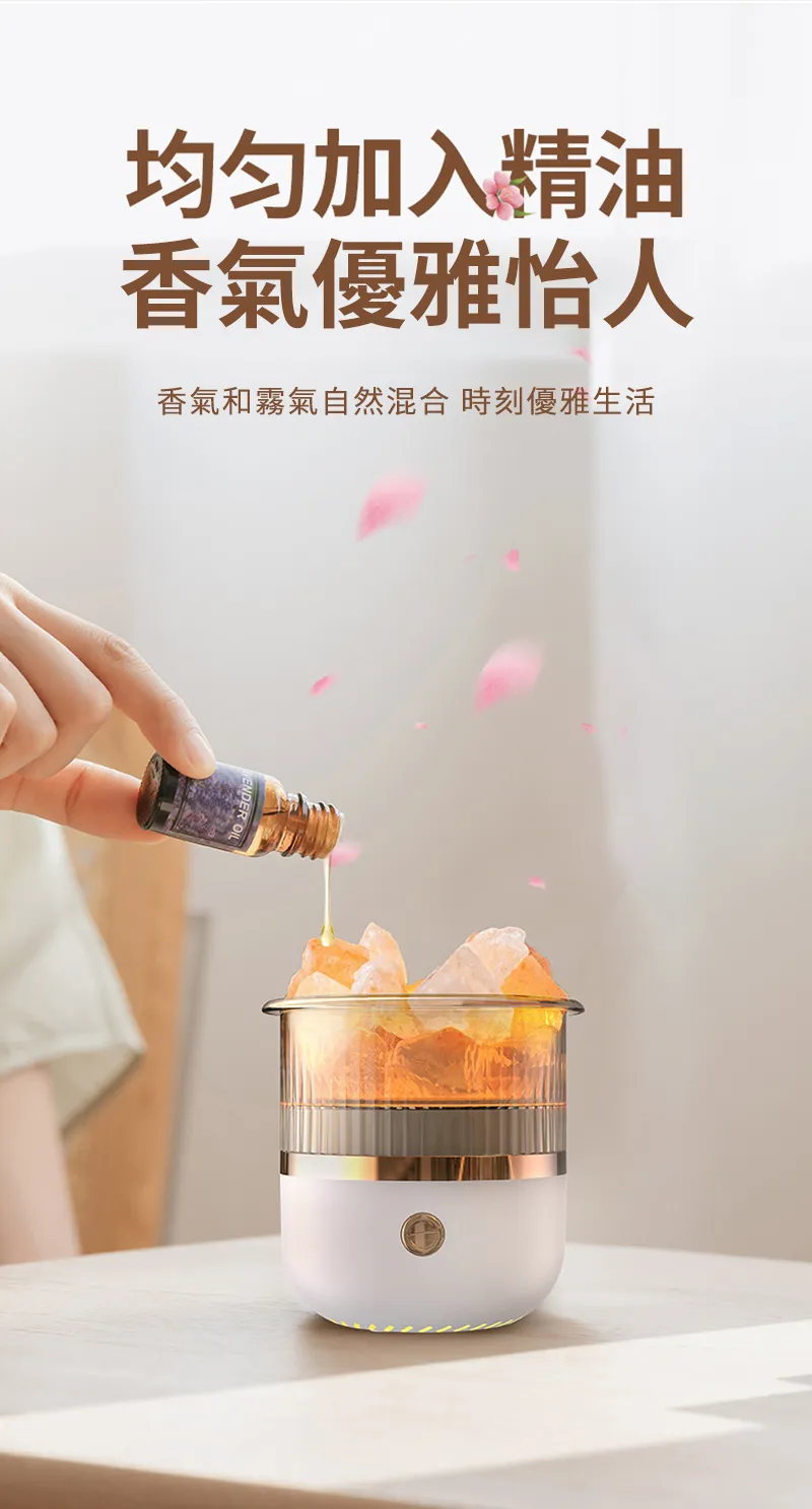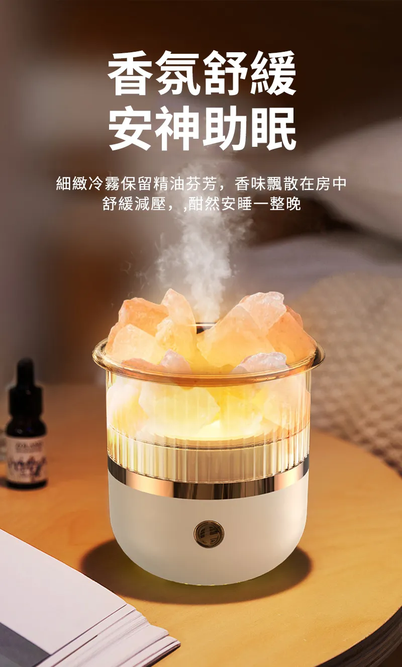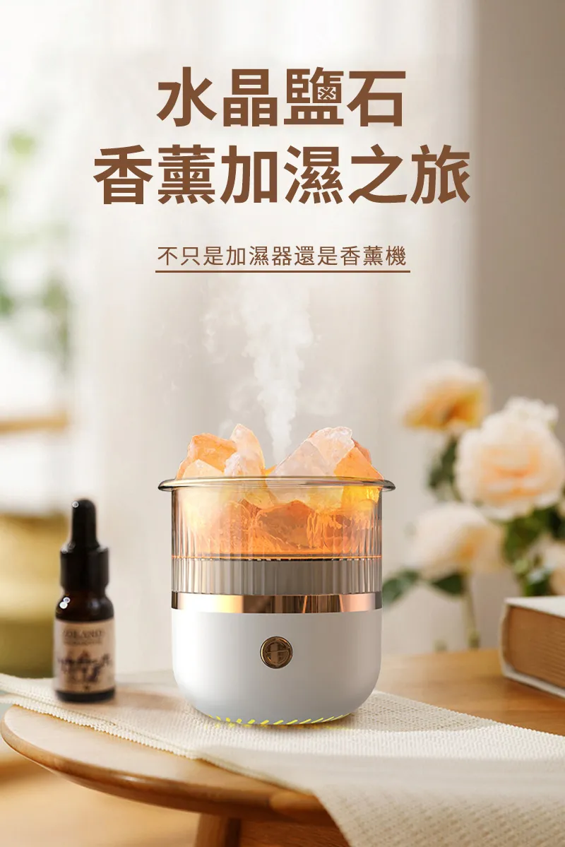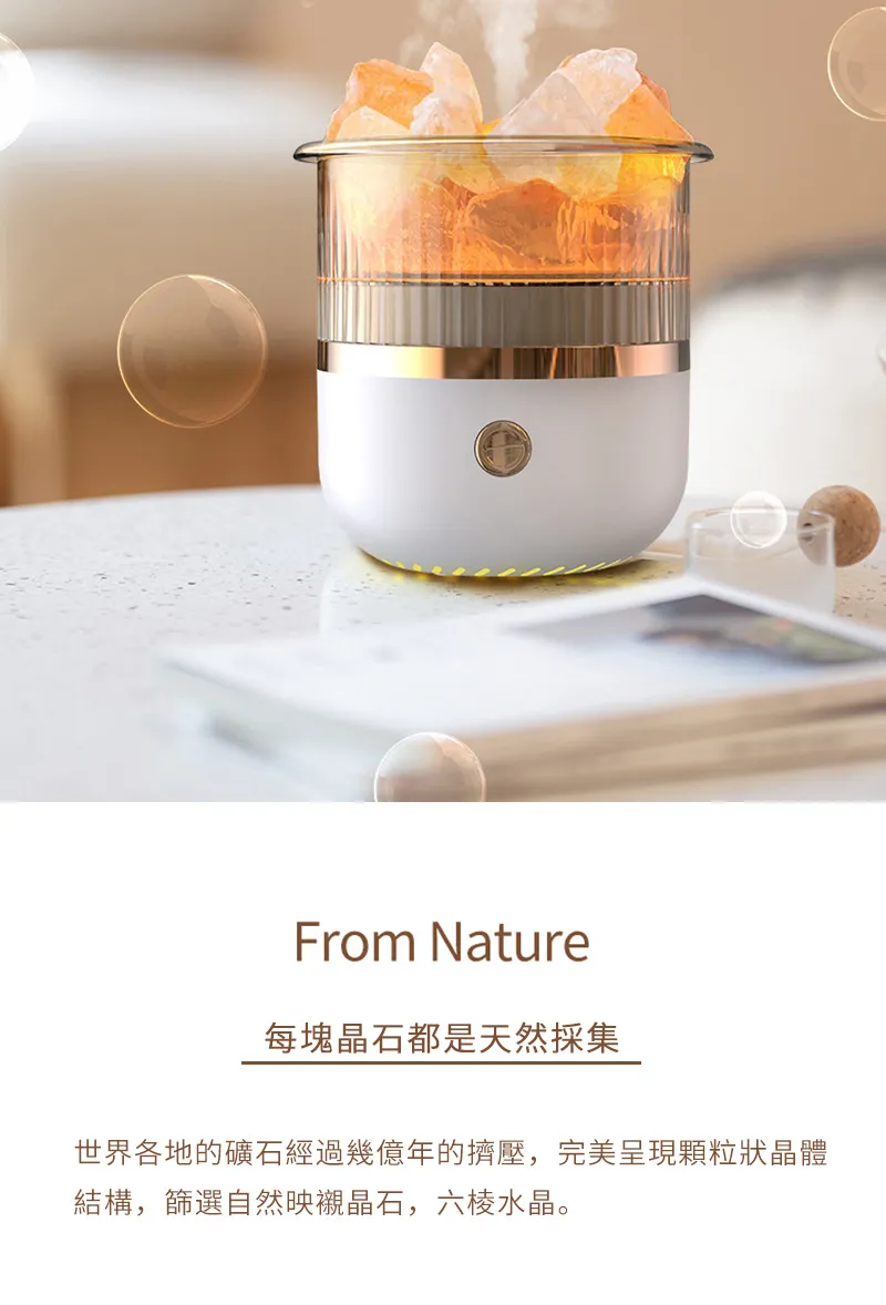 水晶鹽石香氛精油加濕水氧機 | 天然原礦水晶鹽石 | 智慧感應無水斷電 | 幻彩夢幻氣氛夜燈 | 靜音低躁不打擾 | 美型居家辦公室加濕器香氛水氧機