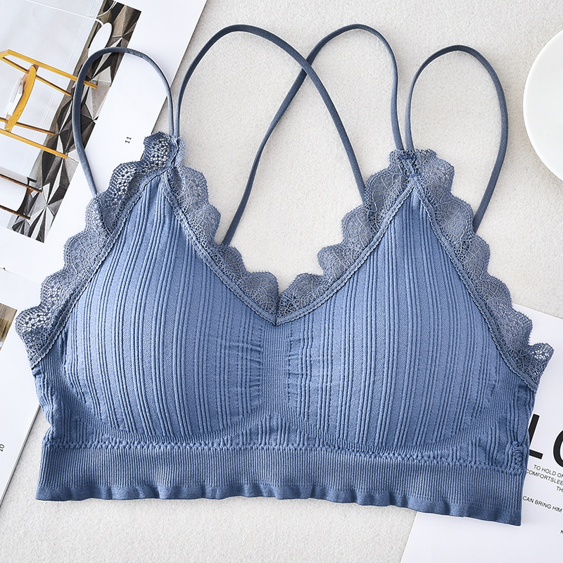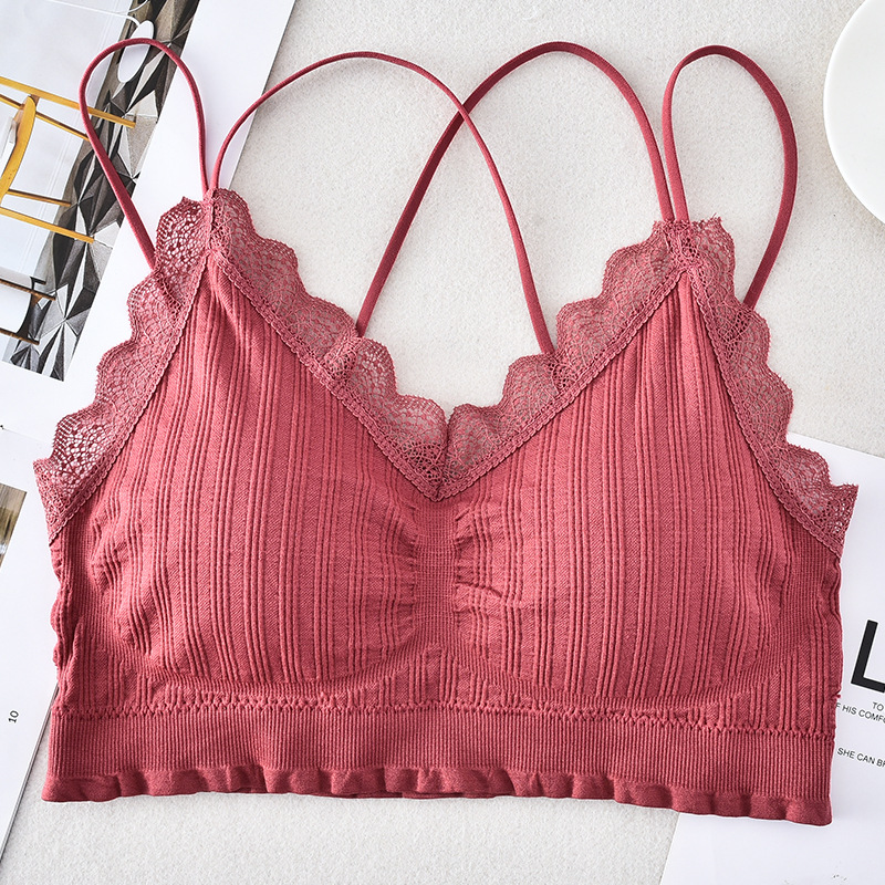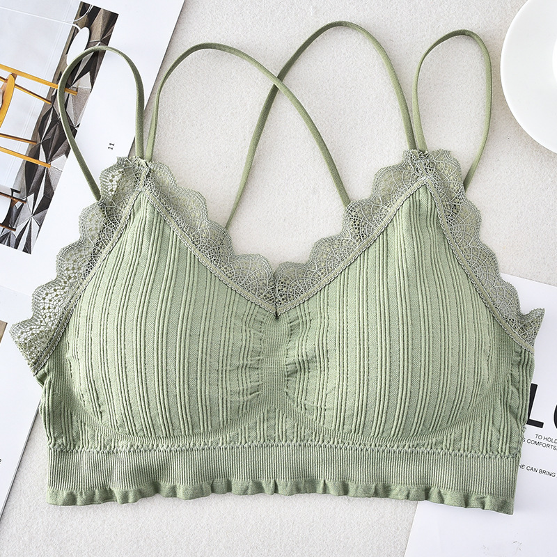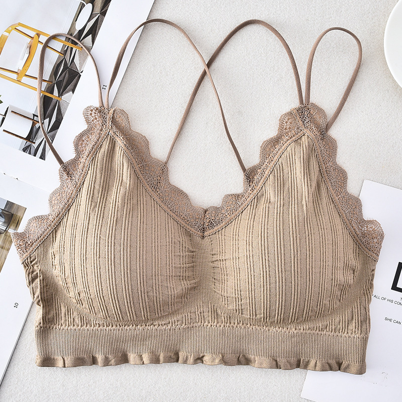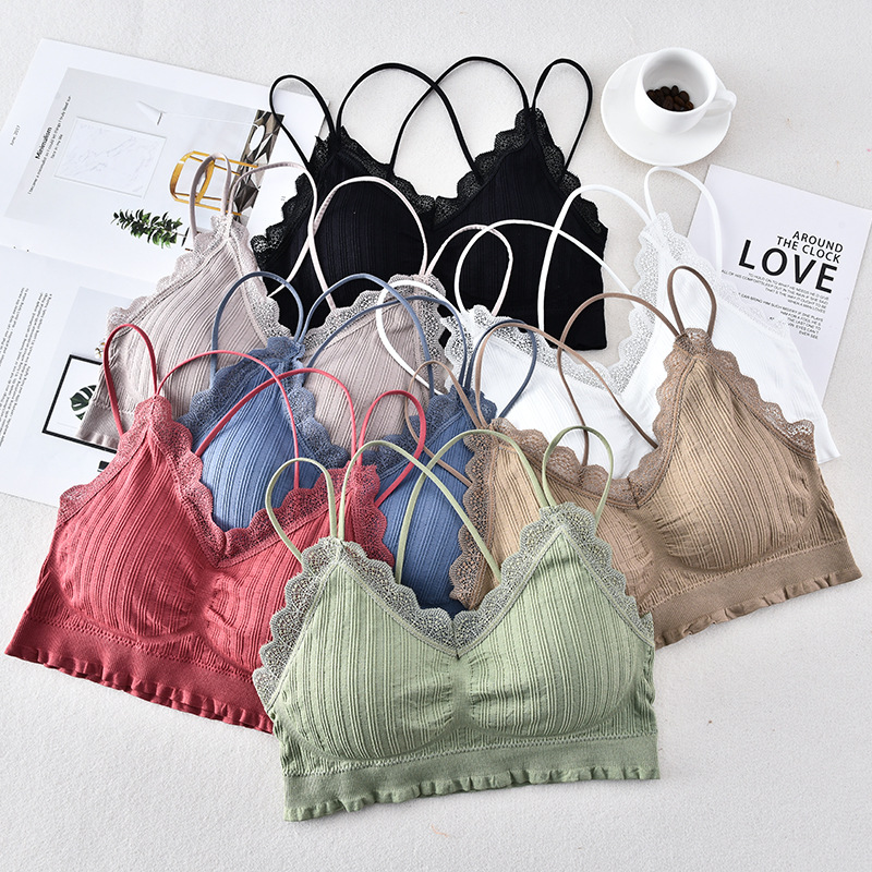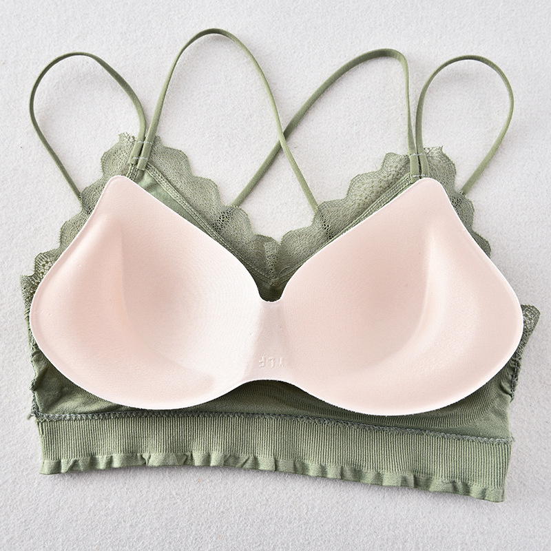 【蕾絲美背厚杯吊帶抹胸】【可拆卸胸墊】仙女蕾絲性感美背可拆卸胸墊無鋼圈背心式吊帶抹胸內衣