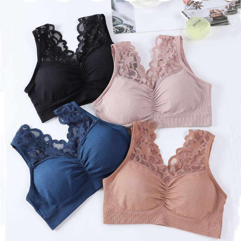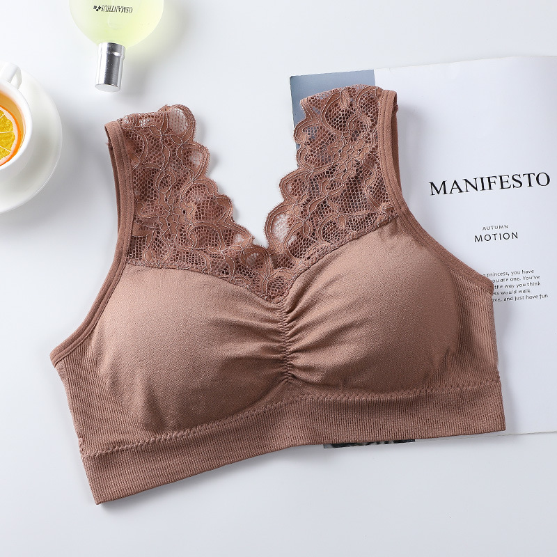 【網紅無縫背心式內衣】【蕾絲美背】蕾絲寬肩帶美背帶胸墊無痕無鋼圈背心式內衣
