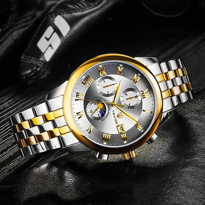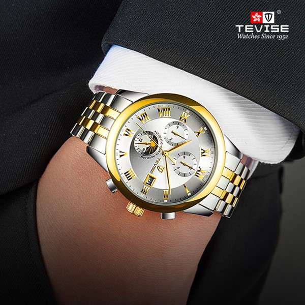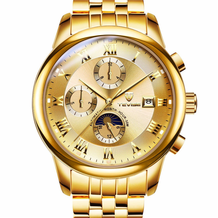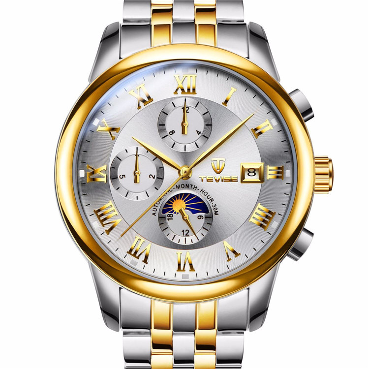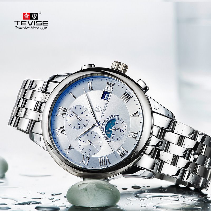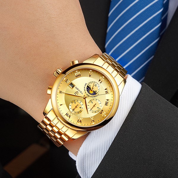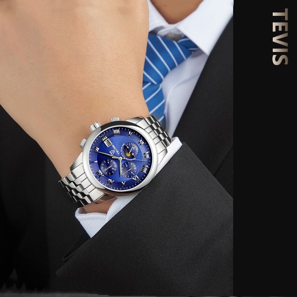 【騎士精神】【萬元級全自動機械錶】【星辰月相】【三眼計時】【日曆】【防水】黑騎士全功能瑞士工藝月相三眼精鋼全自動上鍊機械錶