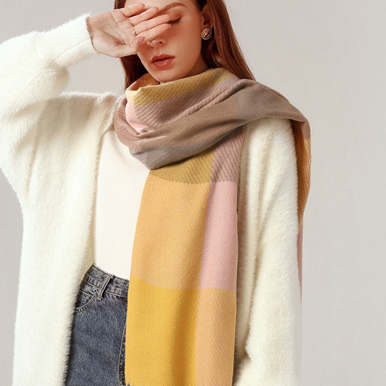 經典不敗英倫方格 | 科技蓄熱軟黃金復合面料 | 軟糯親膚 | 英倫經典中方格羊絨天絲長絨棉復合手感不掉毛蓄熱保暖男女披肩圍脖圍巾