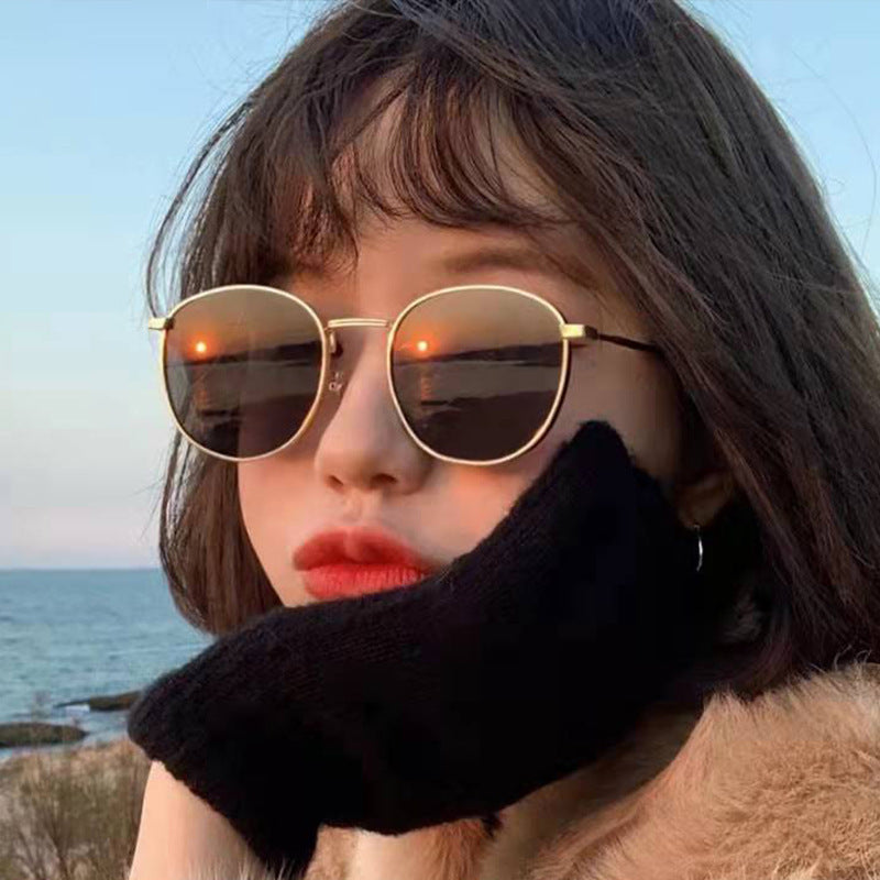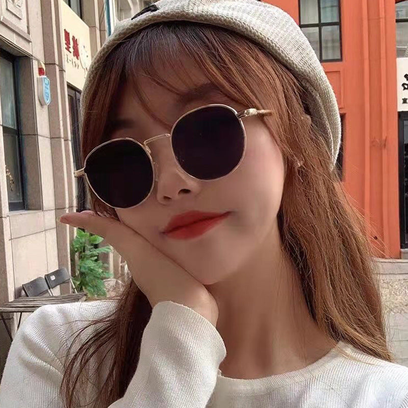UV400正韓網紅同款金屬圓框複古墨鏡百搭街拍女太陽眼鏡