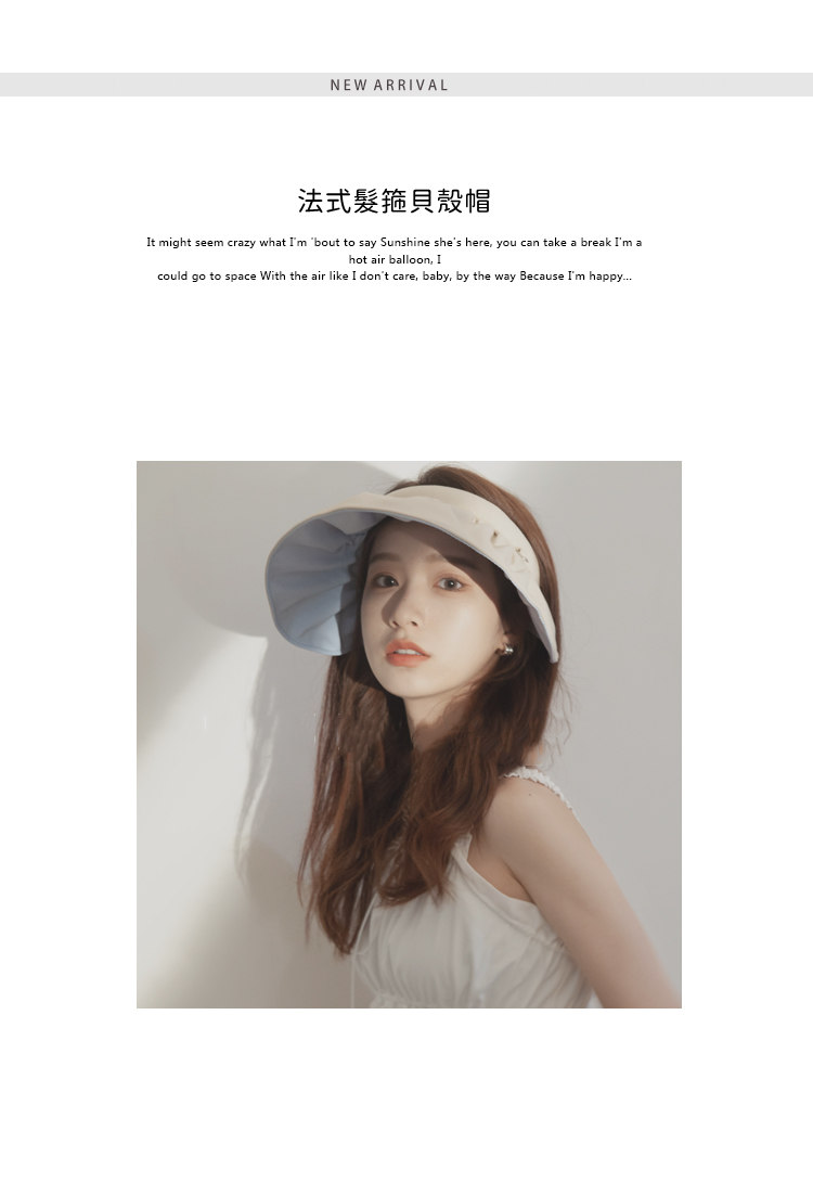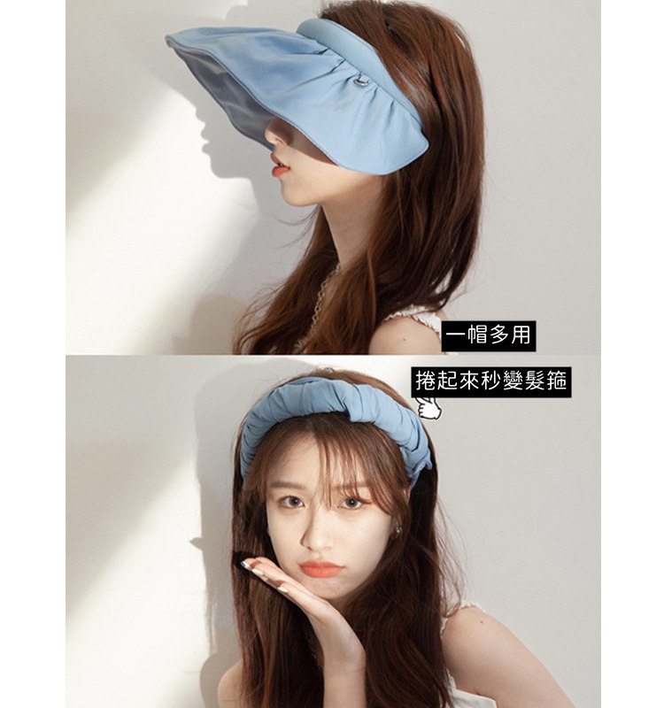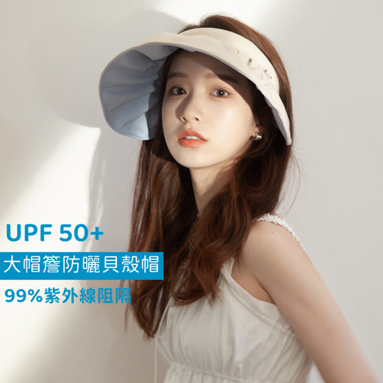 UPF 50+超強防曬 | 99%紫外線阻隔 | 捲起秒變髮箍 | 法式時尚百搭超實用空頂大帽簷超強防曬清爽女夏季遮陽帽貝殼帽