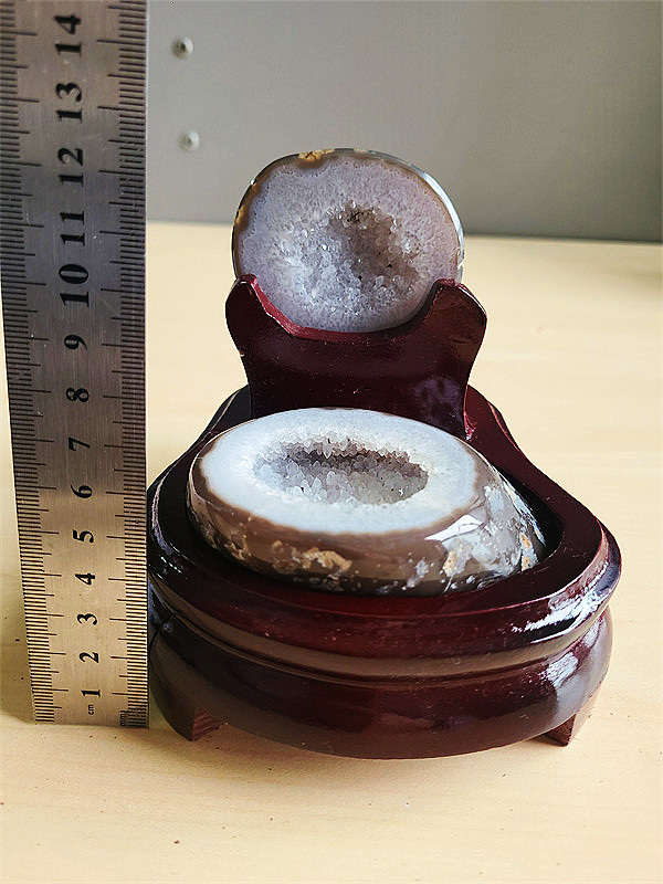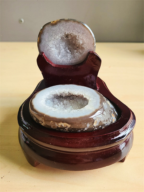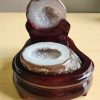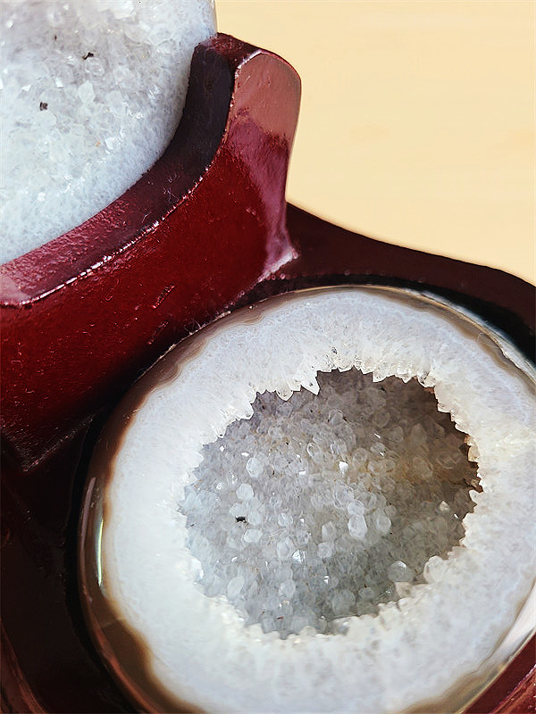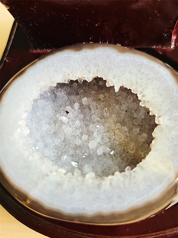 極品晶牙口大洞深 | 鎮宅旺財 | 人間極品完美級 | 天然烏拉圭聚寶盆 | 口大洞深 | 細密閃耀晶砂 | 人間極品滿肉玉潤實木底座天然瑪瑙聚寶盆擺件