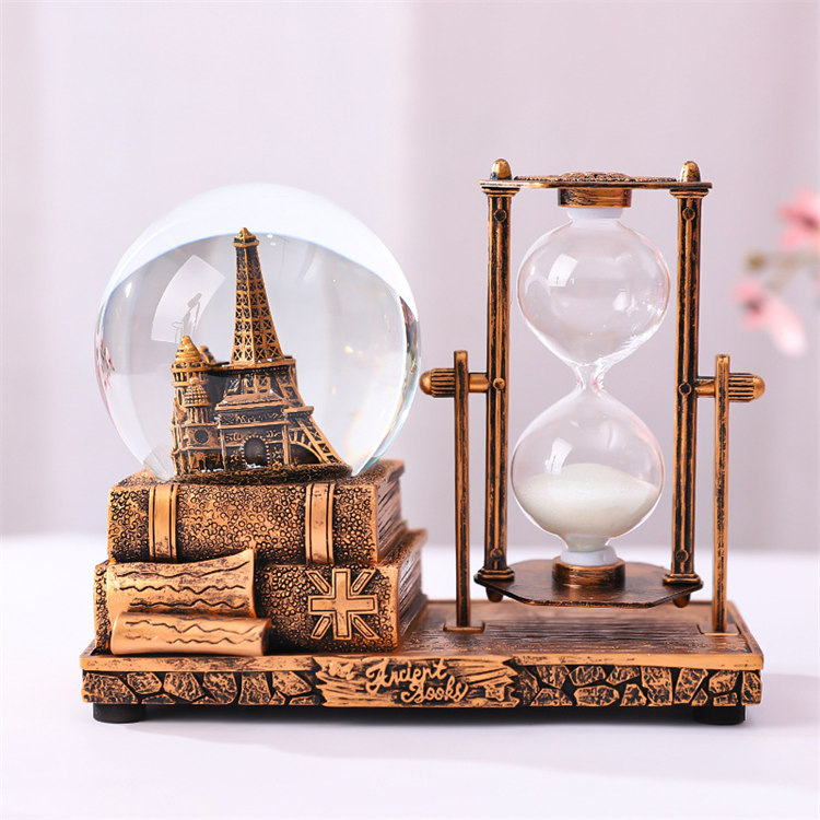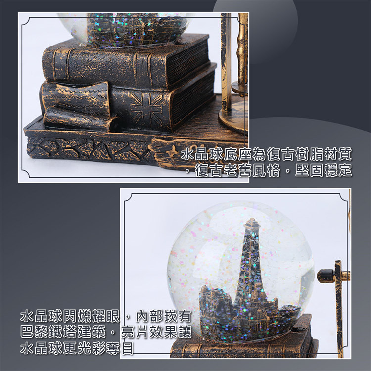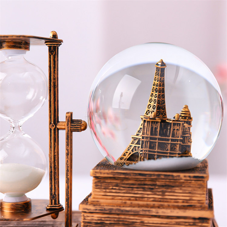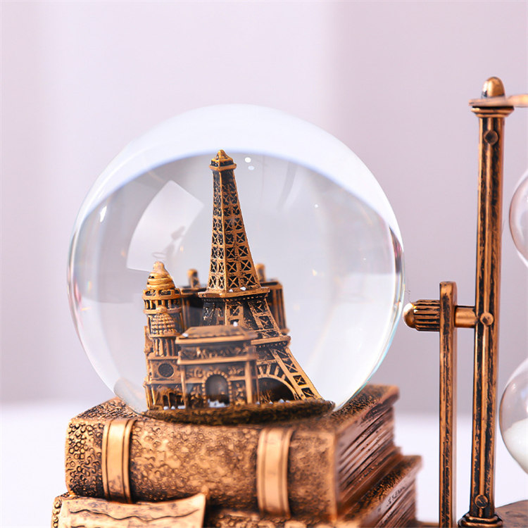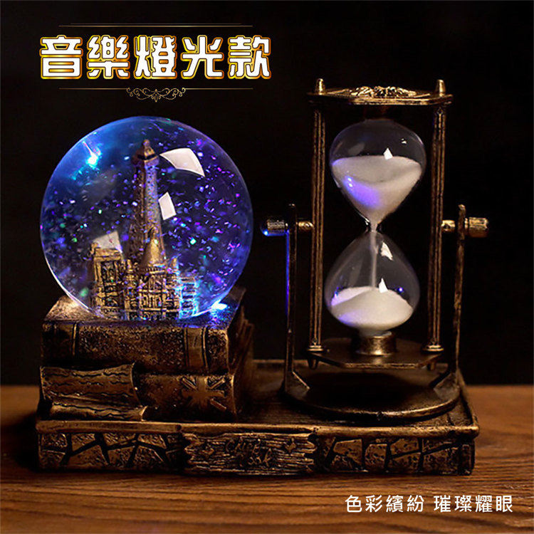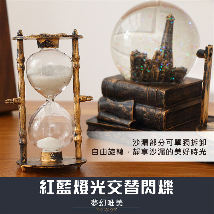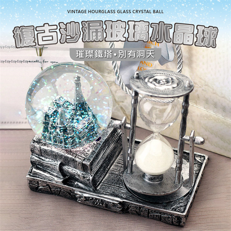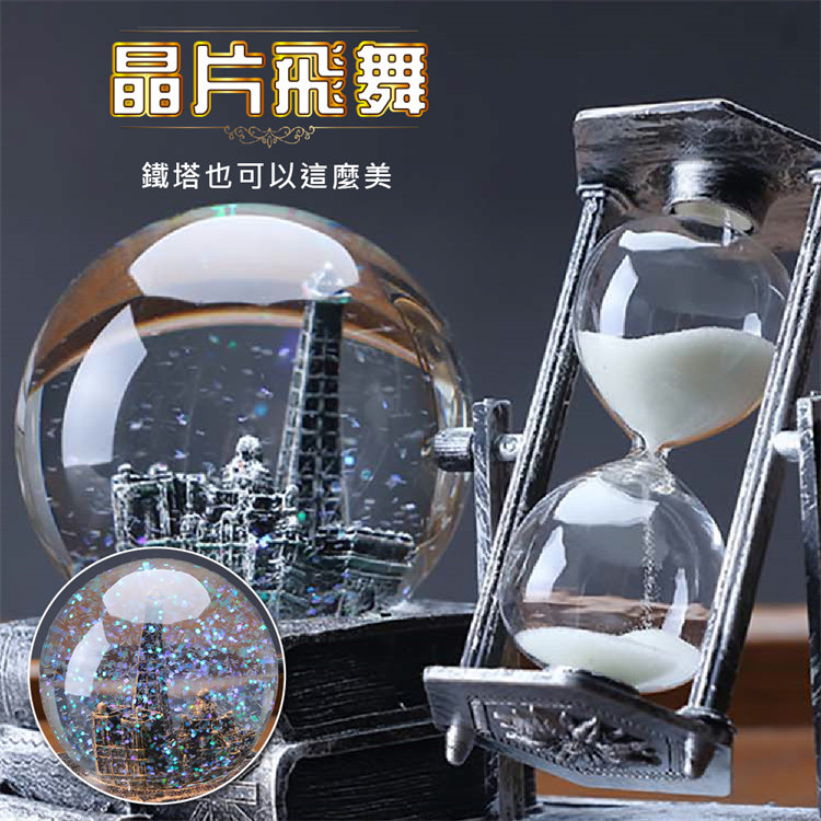 中世紀魔幻鐵塔音樂水晶球沙漏 | 雪花飛舞夢幻燈光音樂 | 環保樹脂精細微雕 | 超精緻送男生女生畢業禮物水晶球音樂盒交換禮物桌面擺設