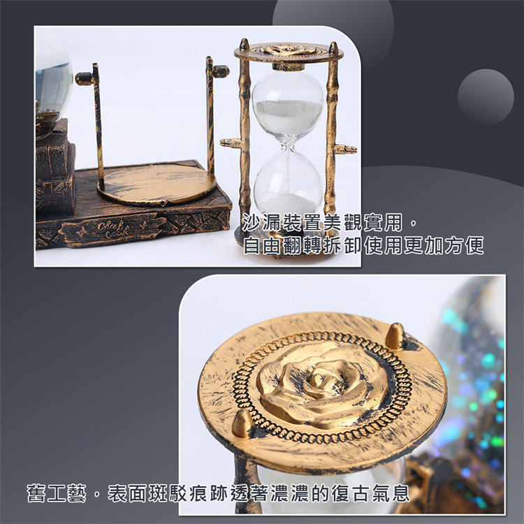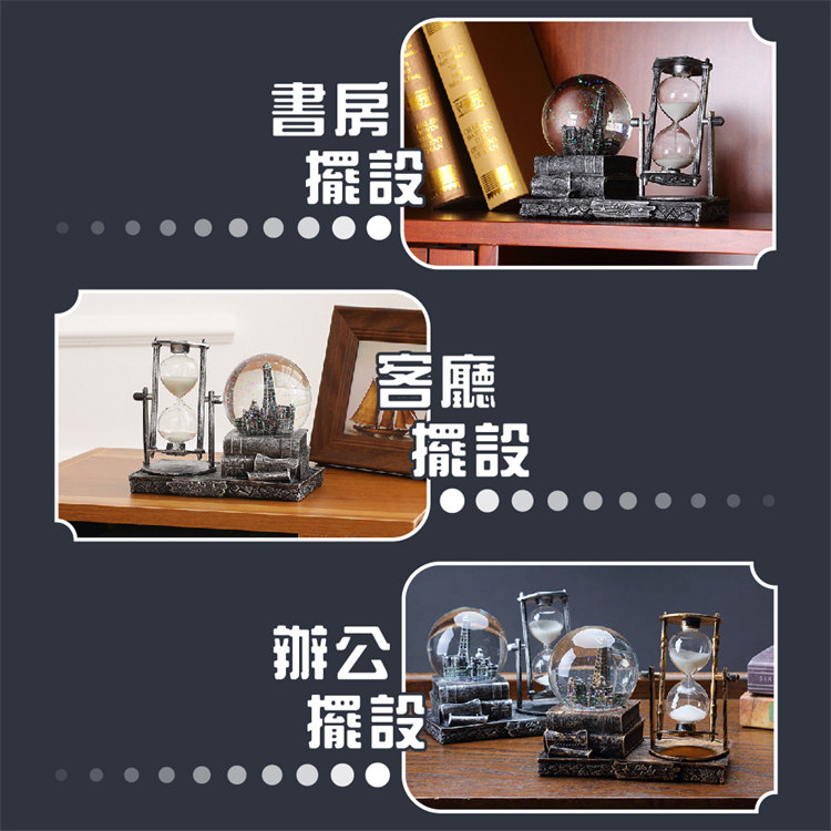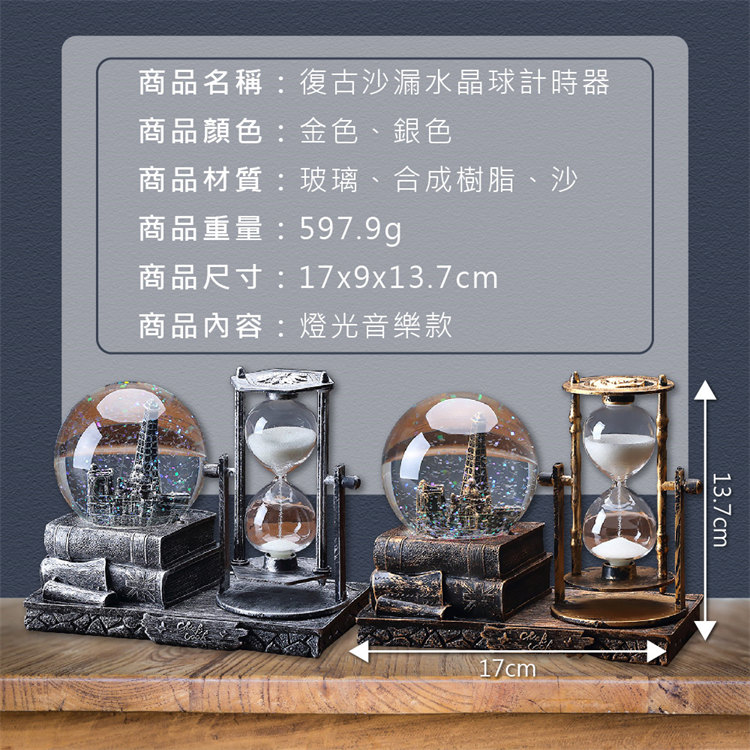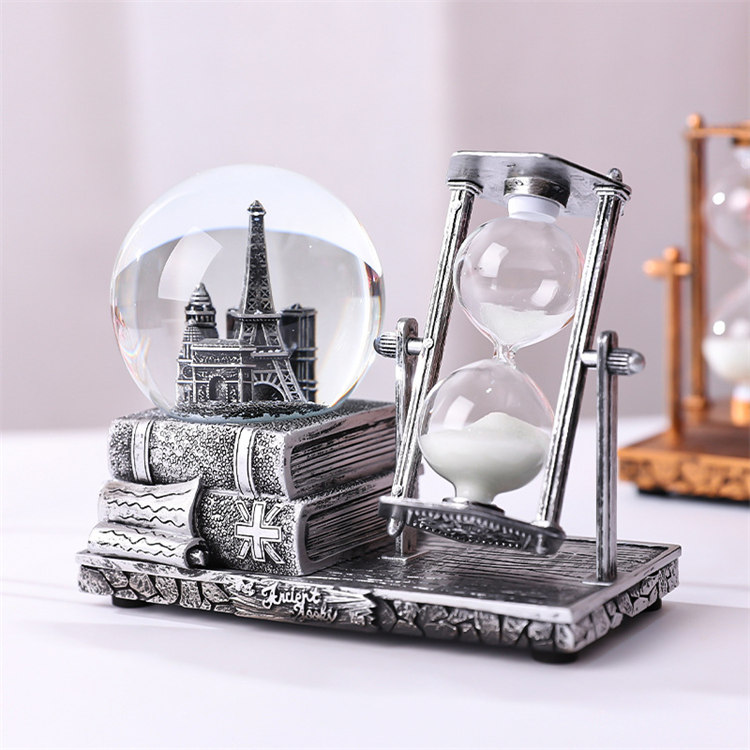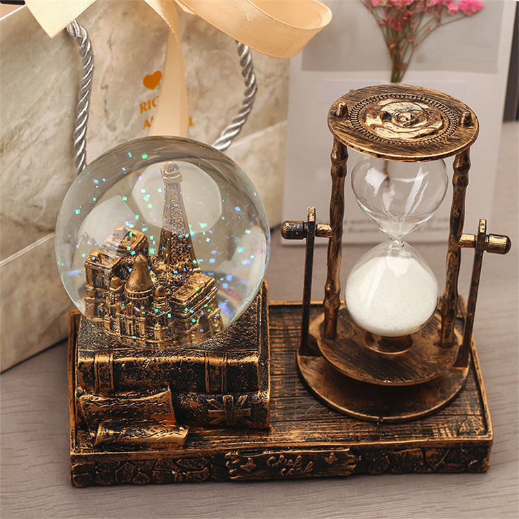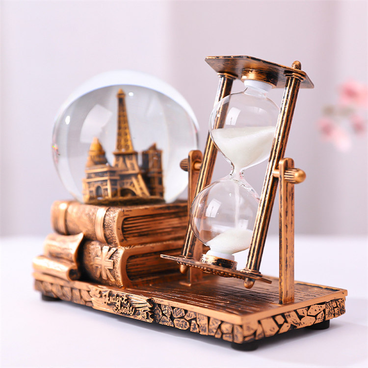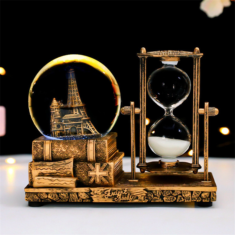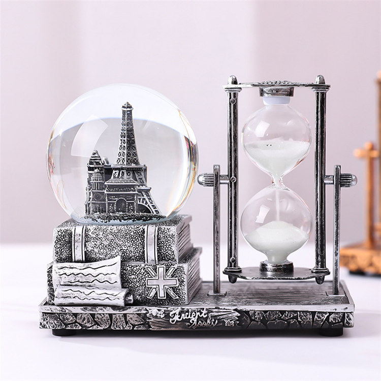 中世紀魔幻鐵塔音樂水晶球沙漏 | 雪花飛舞夢幻燈光音樂 | 環保樹脂精細微雕 | 超精緻送男生女生畢業禮物水晶球音樂盒交換禮物桌面擺設