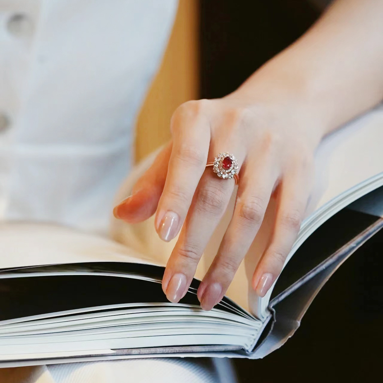 小衆精工珍寶18K包金锆石複古宮廷大氣紅寶石戒指影樓道具手飾品
