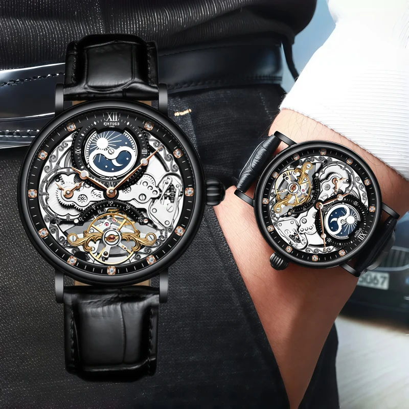 男錶・機械・穹宇星軌 | 全自動陀飛輪機械機芯 | 極致鏤空錶盤 | 小牛皮錶帶 | 藍寶石錶鏡 | 高清夜光 | 30米防水 | KINYUED全自動機械錶