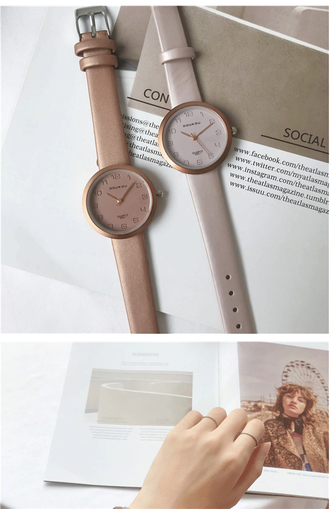【法式氣質小圓盤】DouKou設計師款法式皮帶數字三針小圓盤女錶