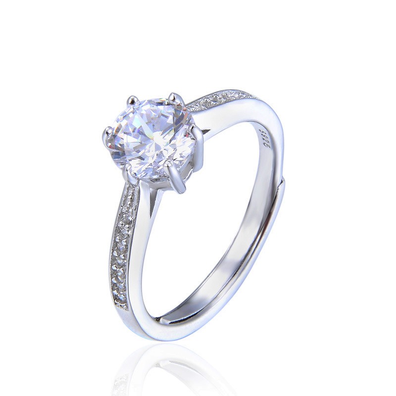 八心八箭六爪鑲經典款 國際標準s925純銀+一克拉AAA級鋯石+一圈碎鋯鉆 真鑽切割技術57個獨立切面 卓越折射與通透度 貼心開口設計可隨意調節戒圍