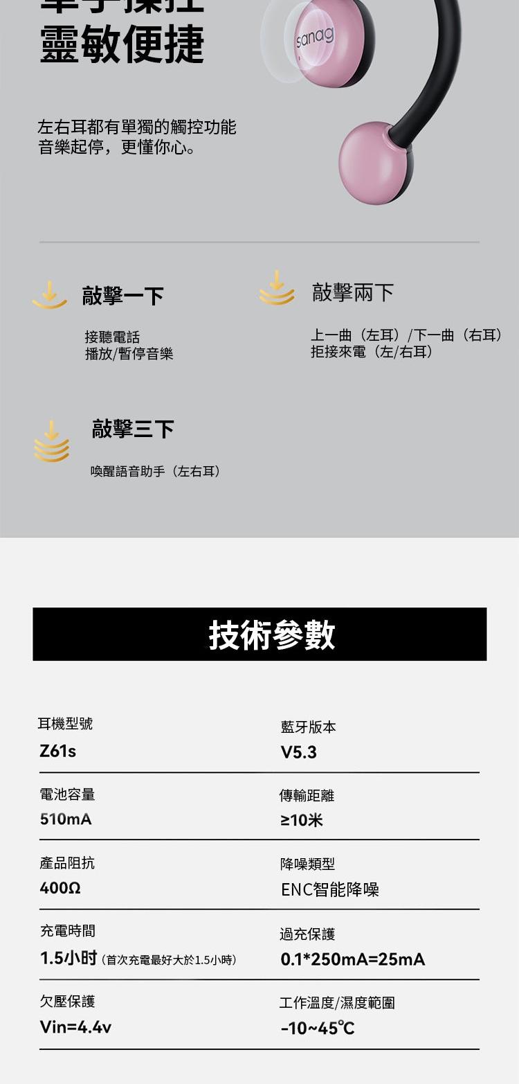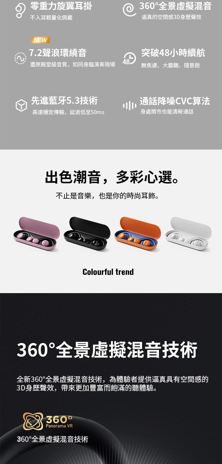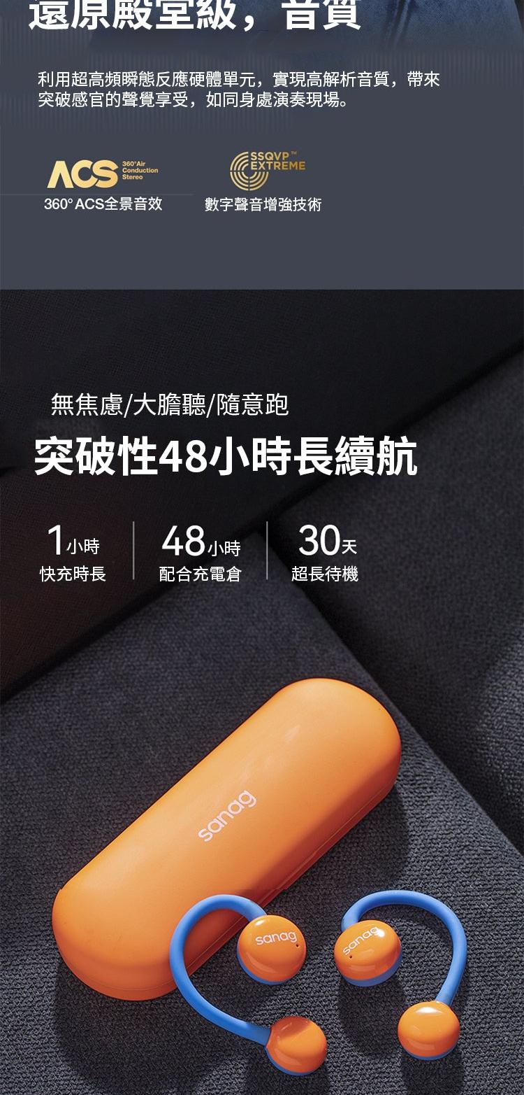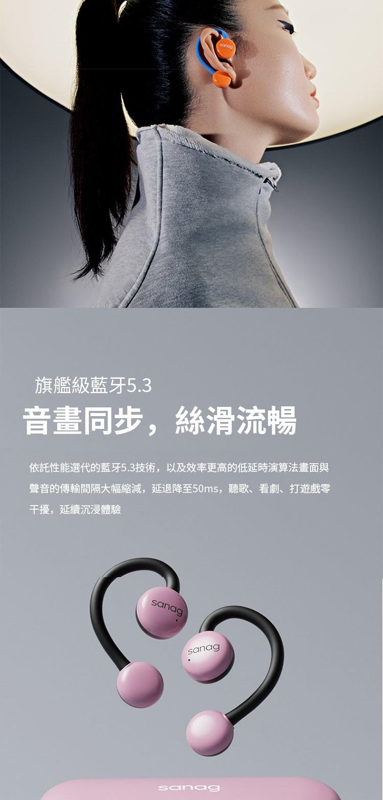 殿堂級高解析音質 | 沉浸式聲學結構 | 超高頻瞬態反應硬解單元 | 360°全景虛擬混音 | 零重力懸浮感 | SANAG現場級不入耳真無線藍牙耳機