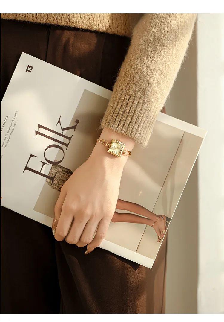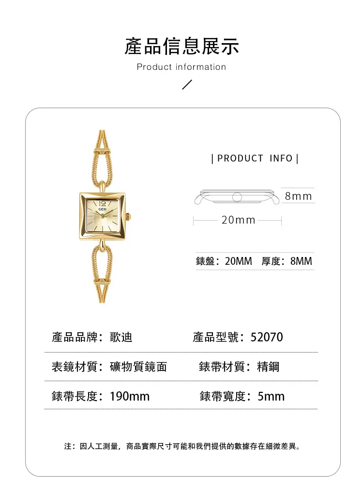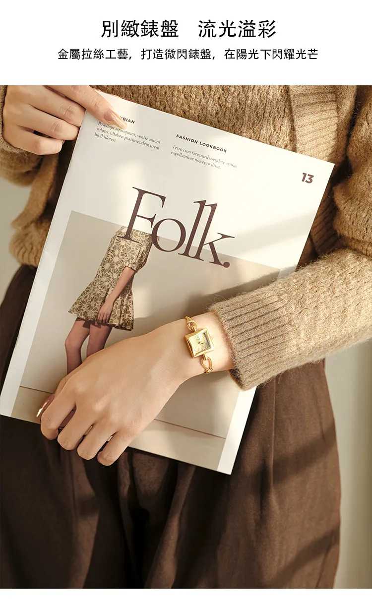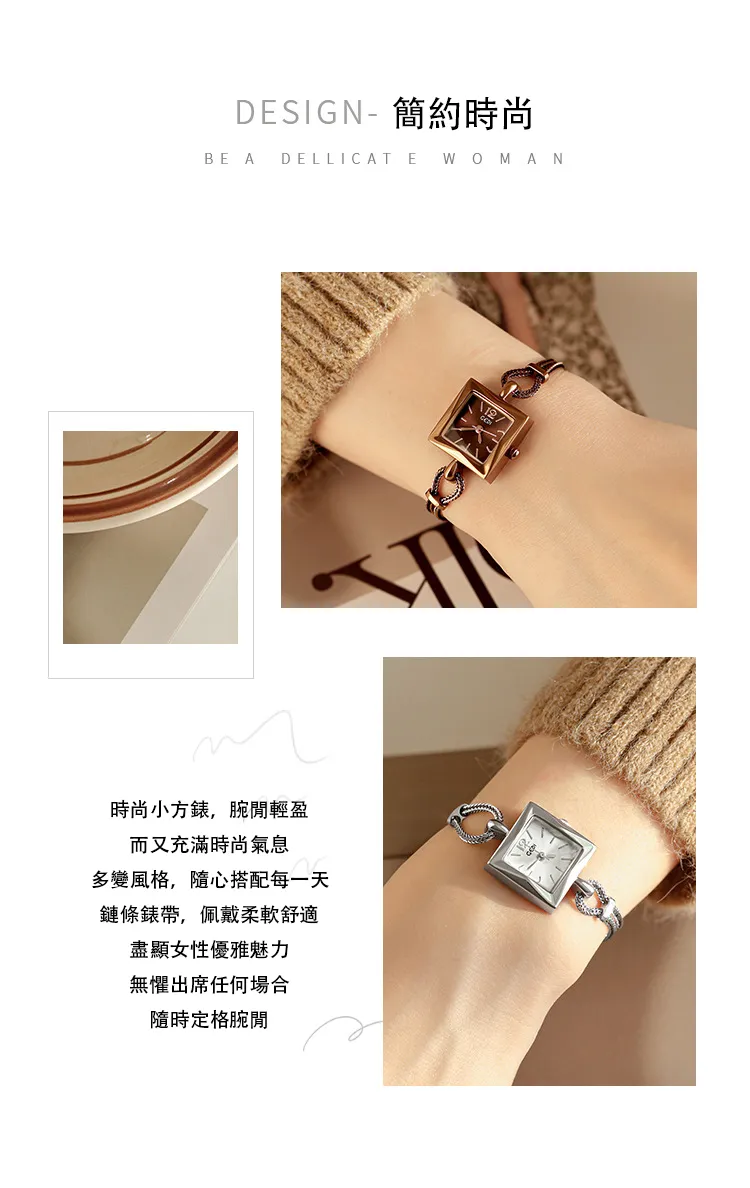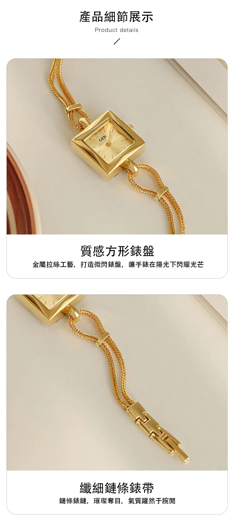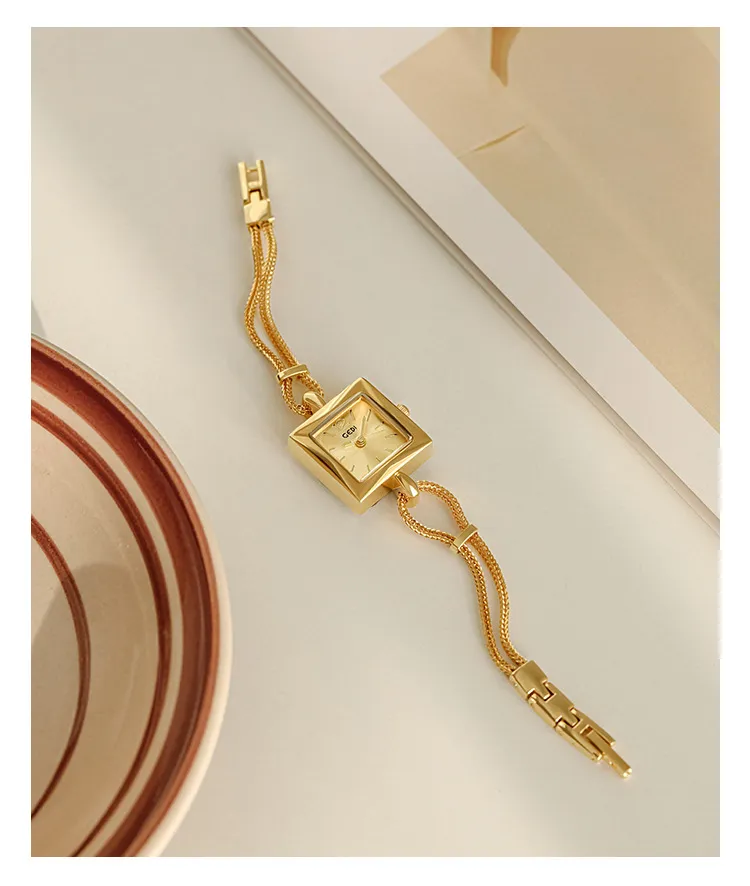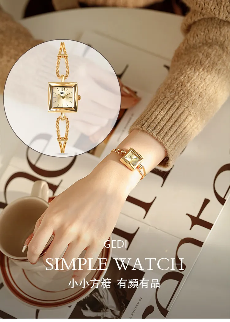 女錶・維納斯晨露 | 個性方糖小金錶 | 優雅手鍊錶帶 | 極簡刻度錶盤 | 30米防水 | GEDI知性優雅方糖女士手錶