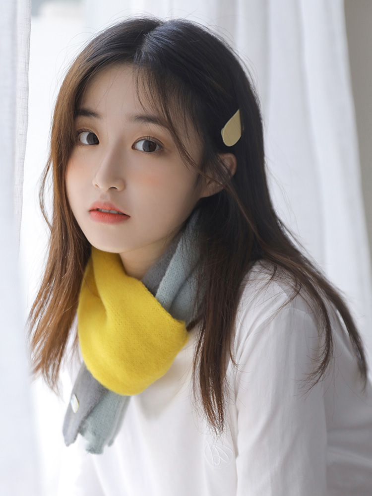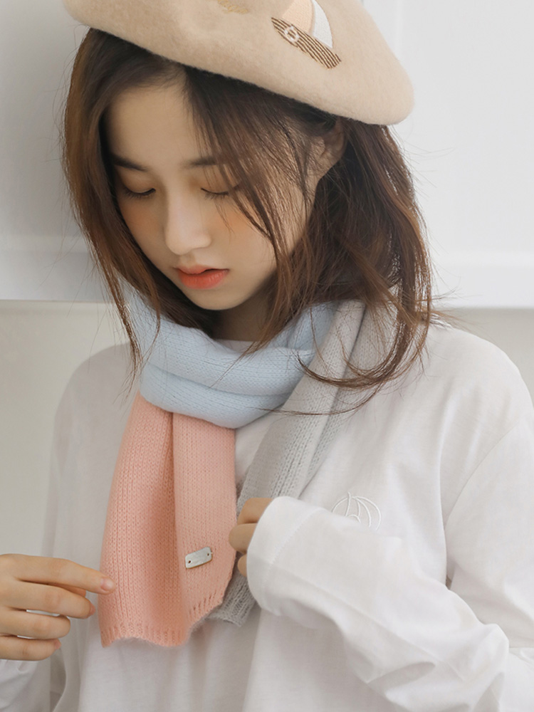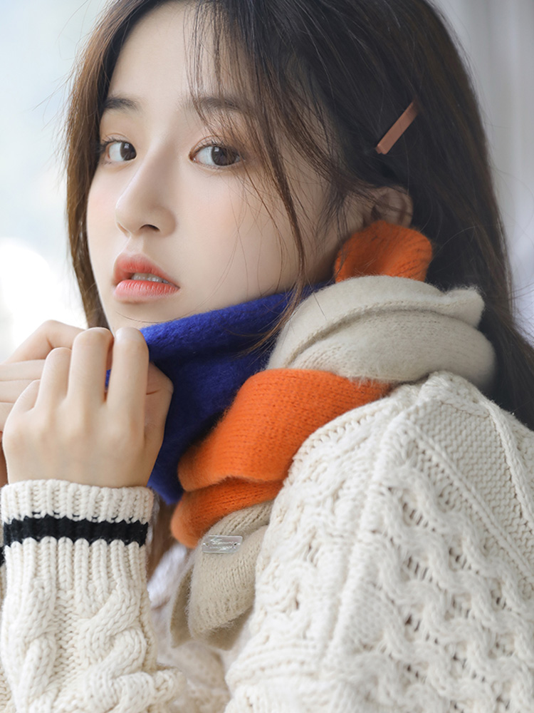【韓系拼色小圍巾】【手工毛線針織】小圍巾女秋冬季護頸韓版可愛少女保暖針織百搭拼色裝飾短圍脖圍巾