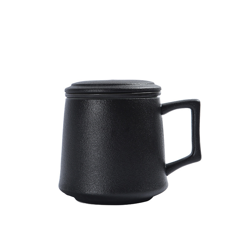【純色粗陶】【帶內膽過濾】日式純色手作粗陶大容量帶內膽過濾帶蓋馬克杯泡茶杯