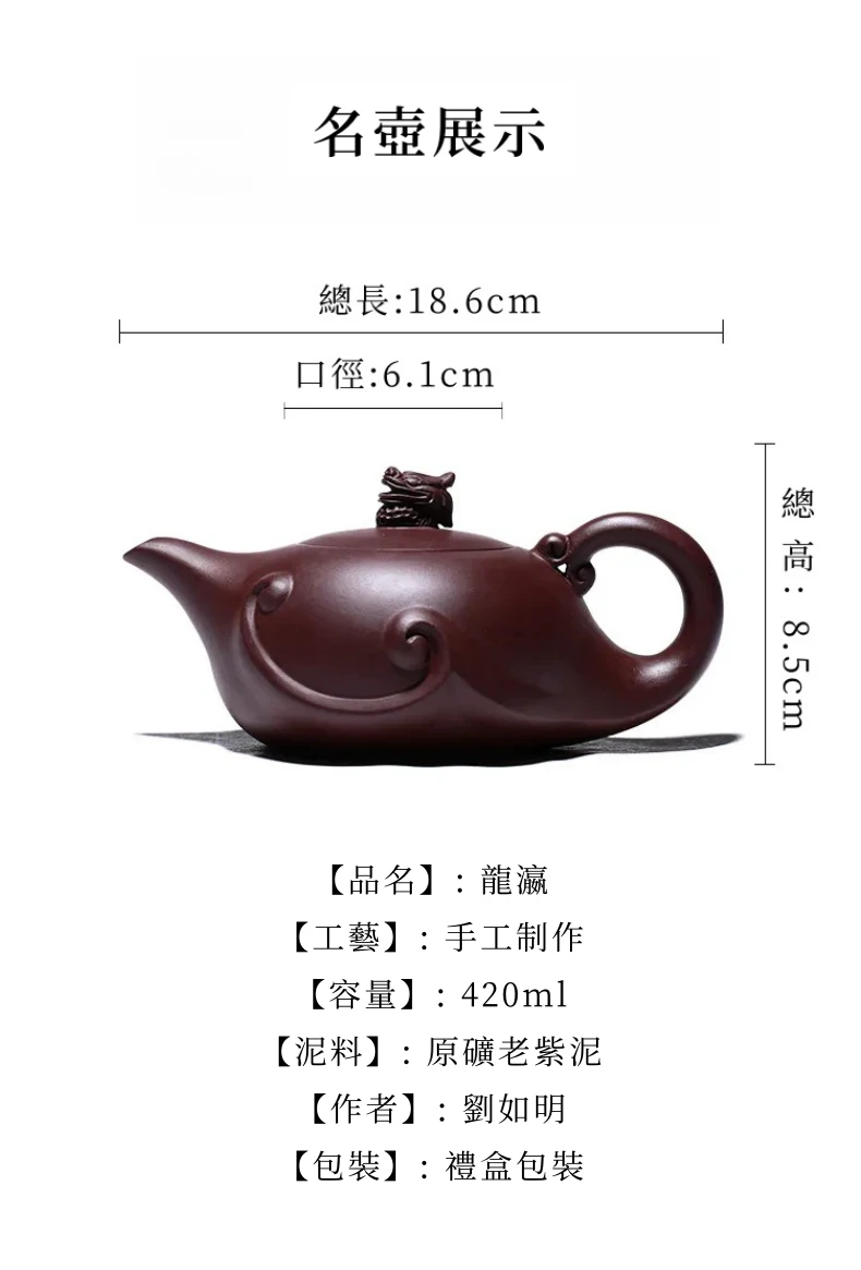 名壺龍瀛 | 劉如明製 | 原礦陳腐老紫泥料 | 龍頭壺鈕 | 印鑒俱全 | 遼闊深遠 | 大肚氣韻 | 宜興名家手製原礦紫砂茶壺手工紫砂壺