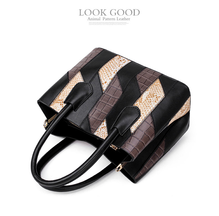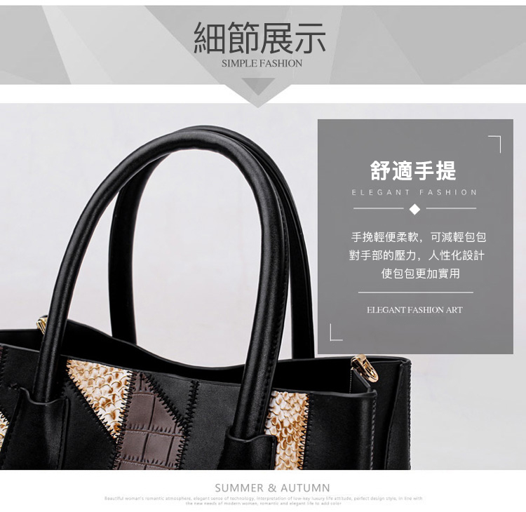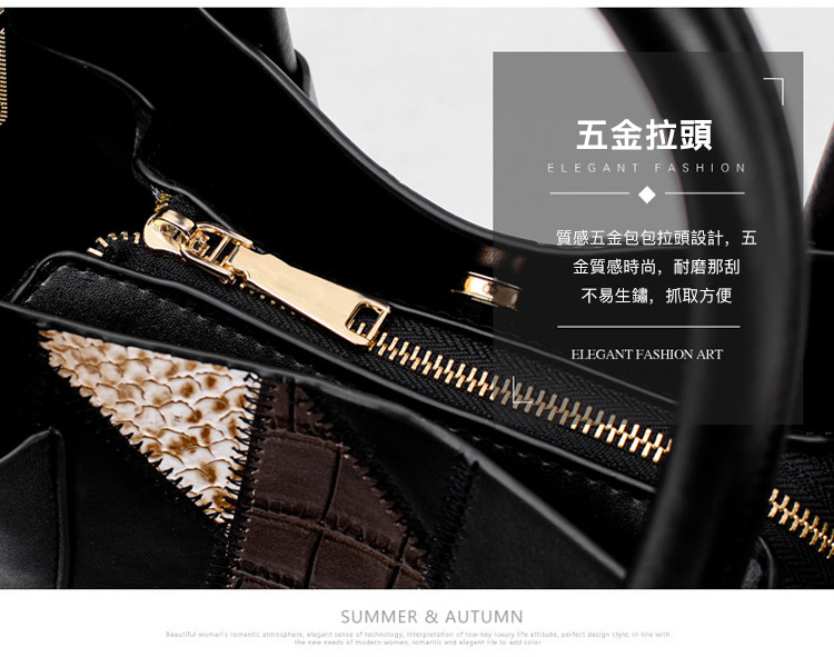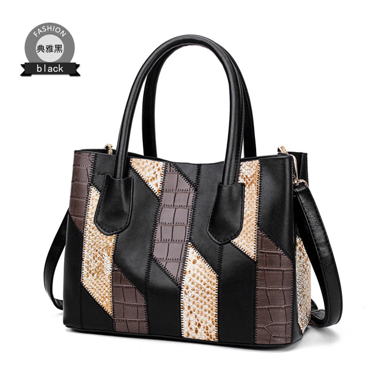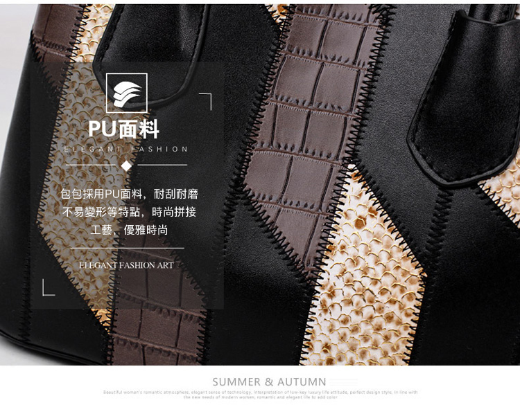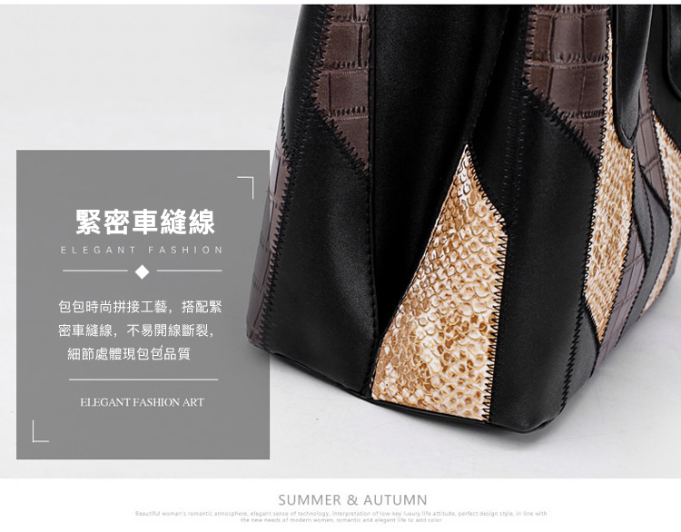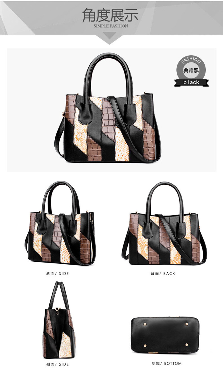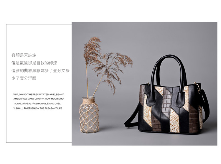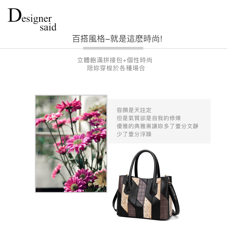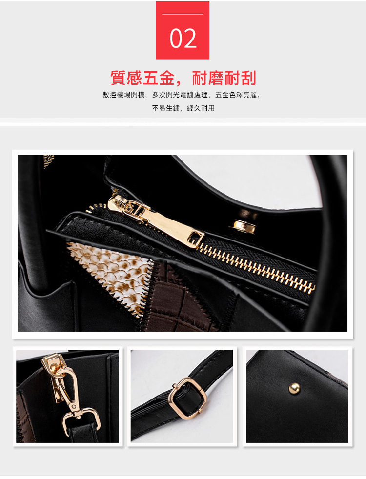 • 拼色鱷魚紋理側背/斜背包 - 黑色