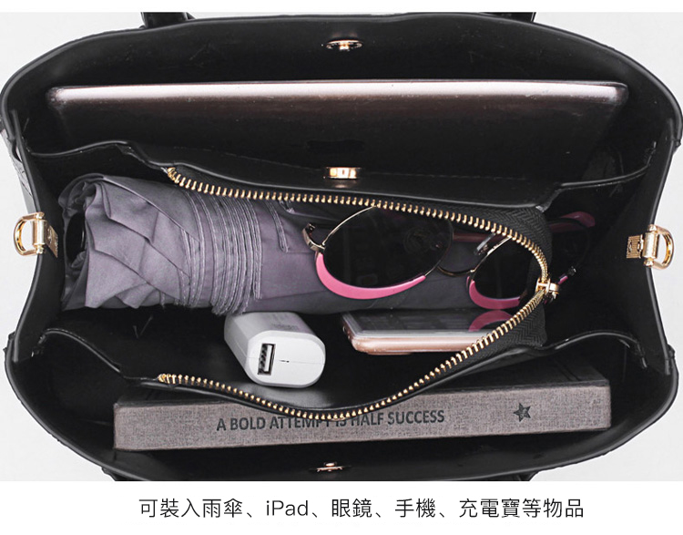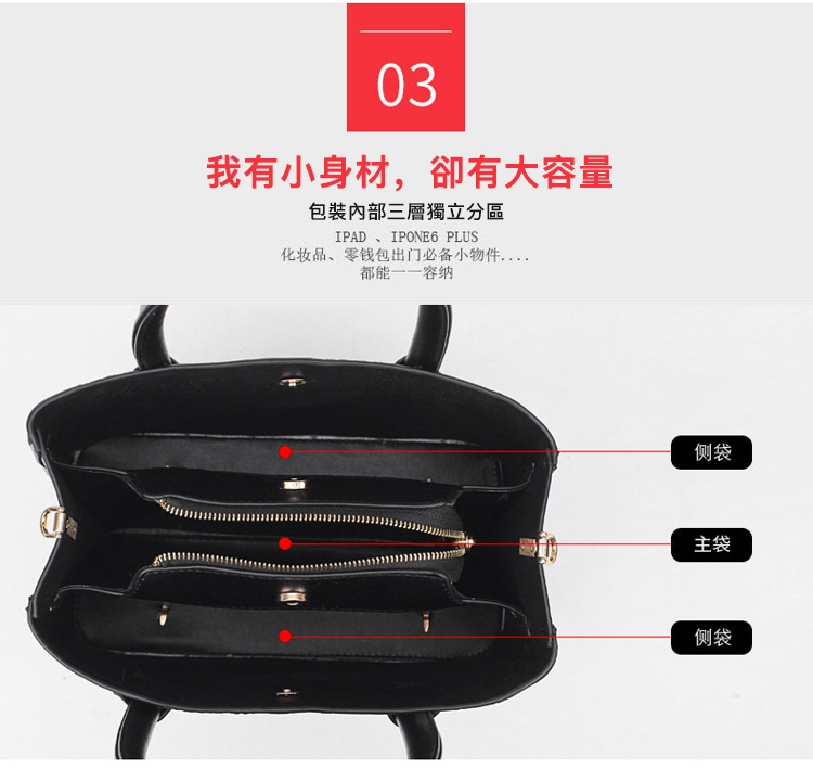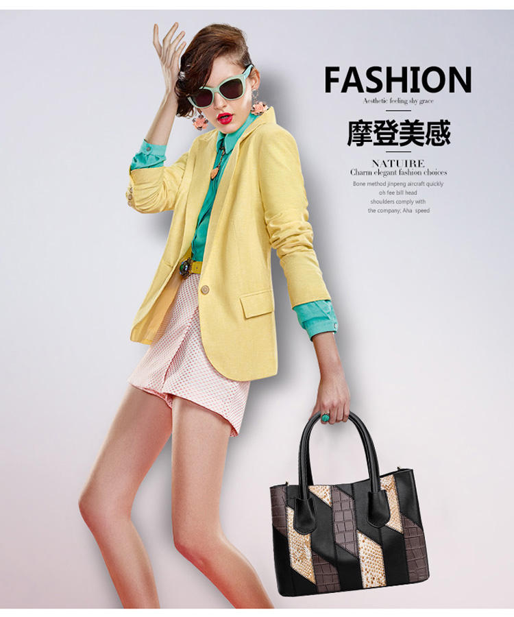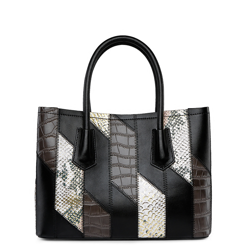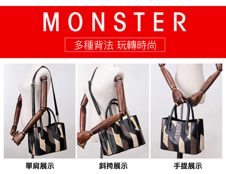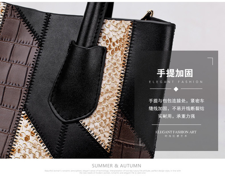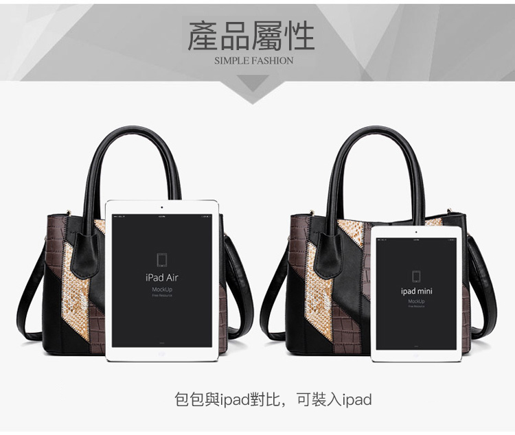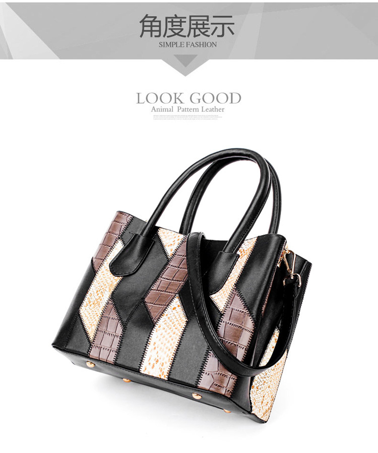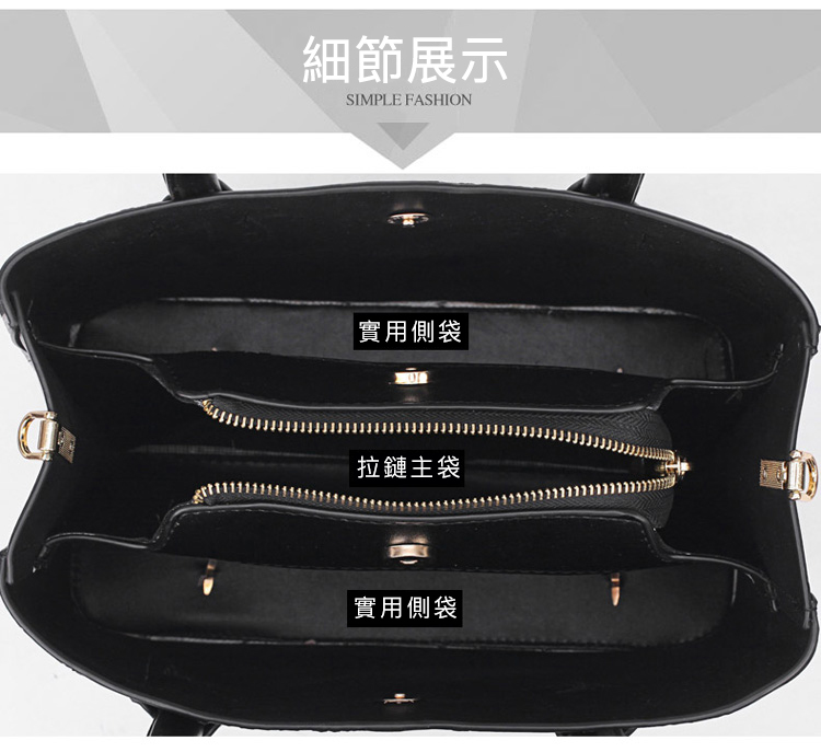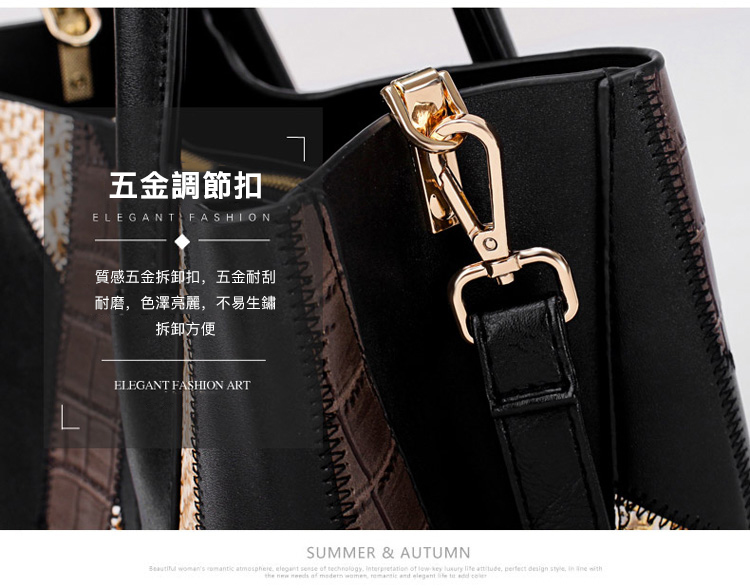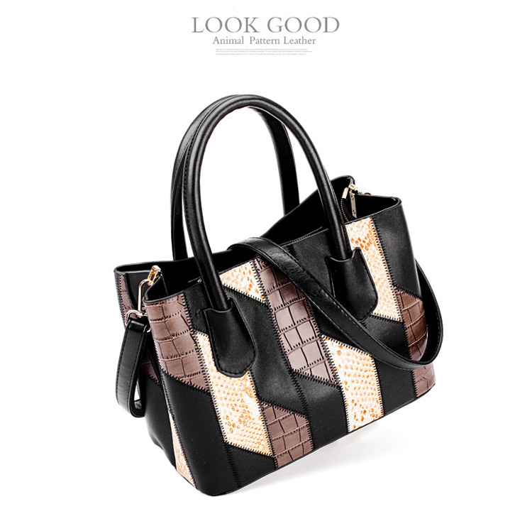 • 拼色鱷魚紋理側背/斜背包 - 黑色